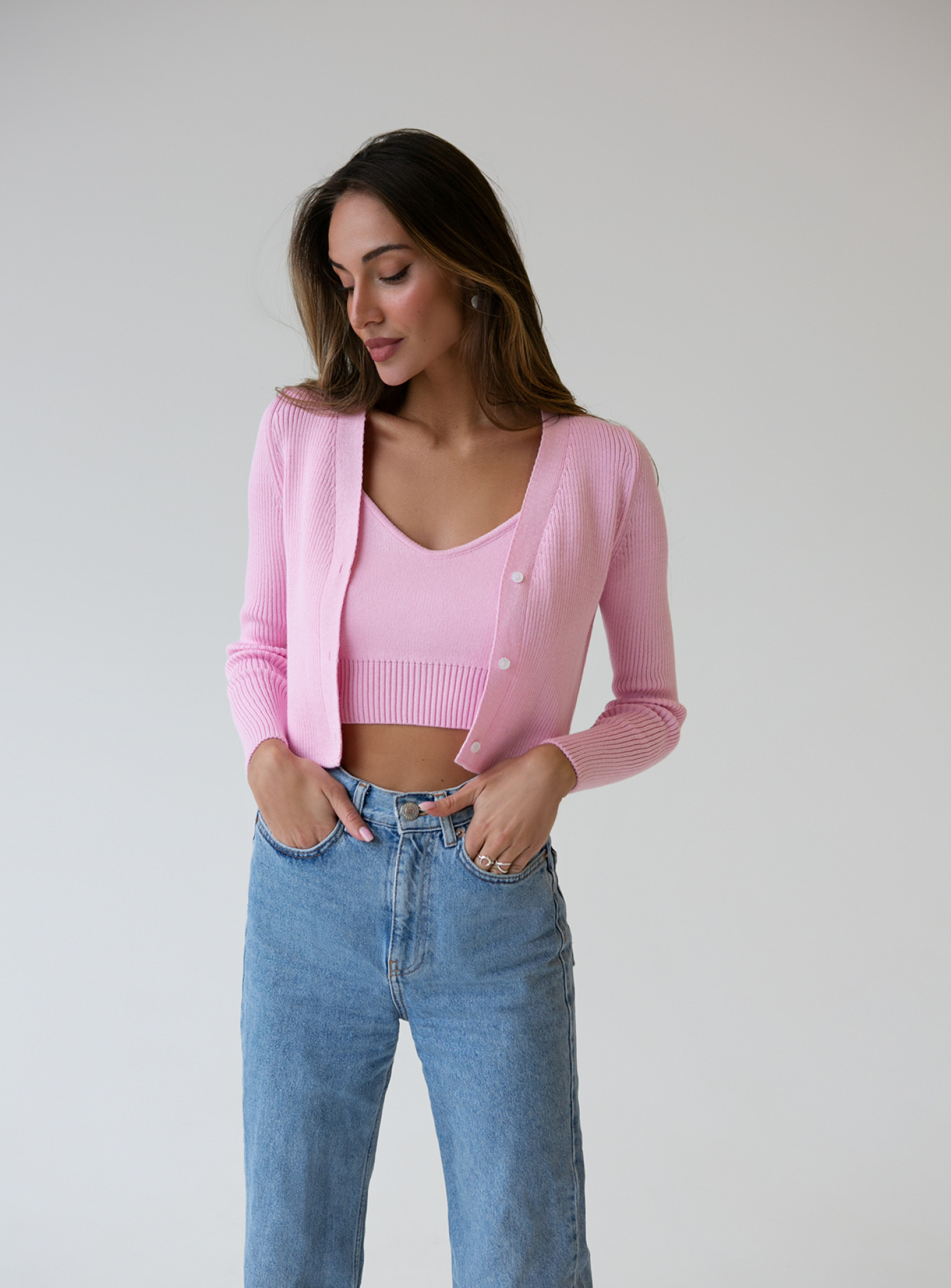 A neat, elegant cardigan in soft cotton. A perfect addition to our tops and skirts. And in bright trendy shades, it is stylishly combined with jeans.