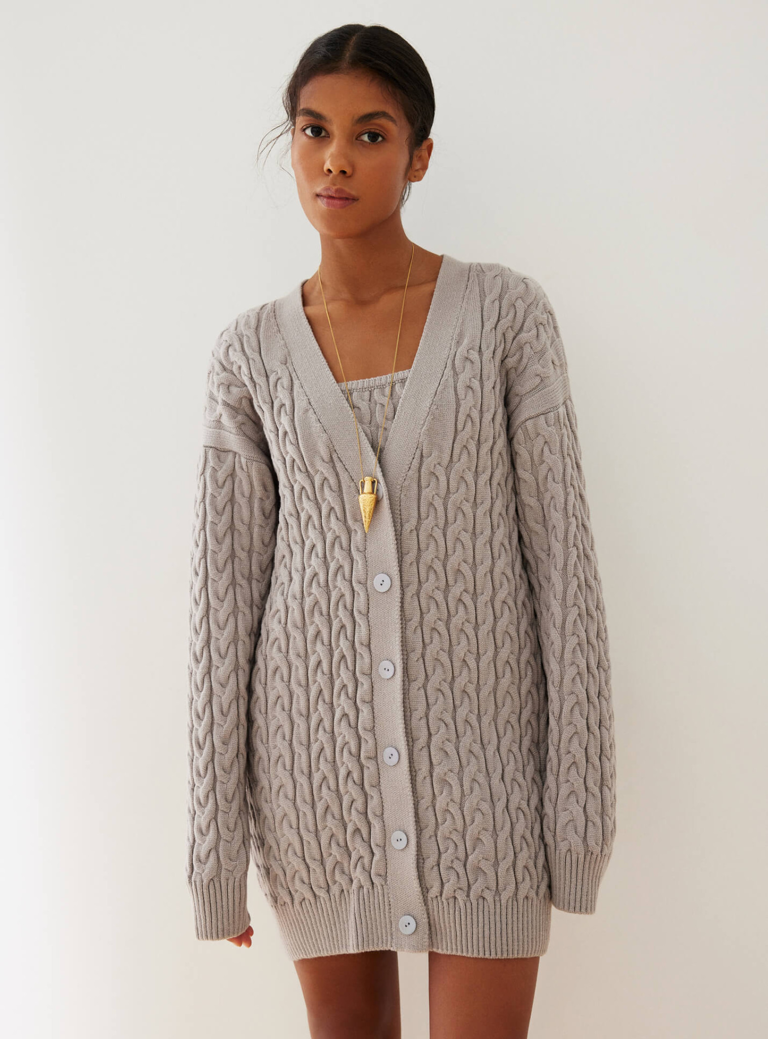 • Long cardigan with braid pattern Folen