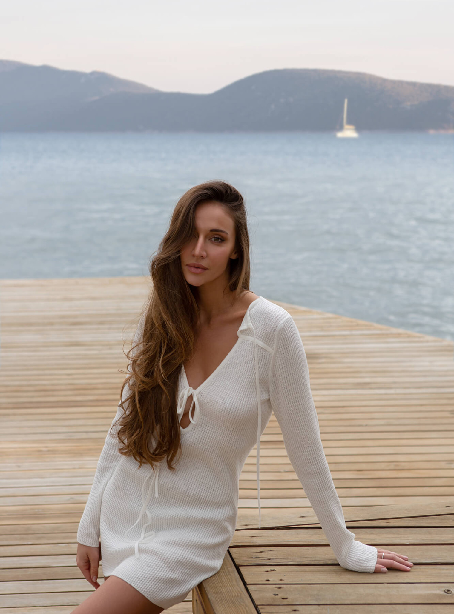 An incredible mini-length dress is the perfect look for your special events and casual gatherings. The accent neckline is decorated with ties, which can be worn in different ways, creating a more restrained or relaxed look. Made of delicate cotton, which adds tenderness and lightness to the image.
