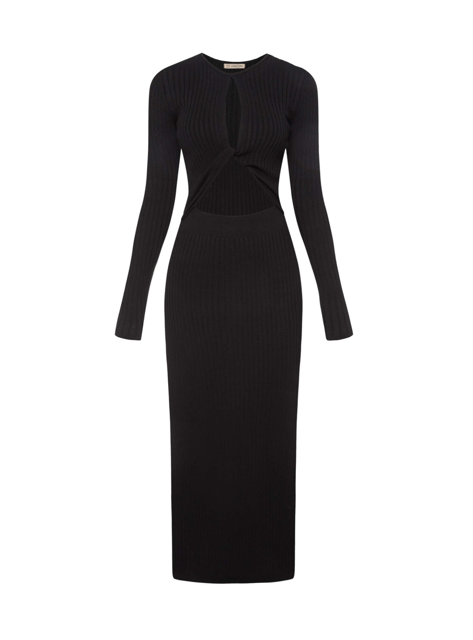 The model is made of cotton. Such long ribbed dresses are very pleasant to the body. They hold their shape well and do not create a feeling of restriction. Due to the textured fabric, silhouette cotton dress 25 Union fits tightly. The elastic at the waist sits well and fits as closely as possible, so nothing shifts or slips anywhere.