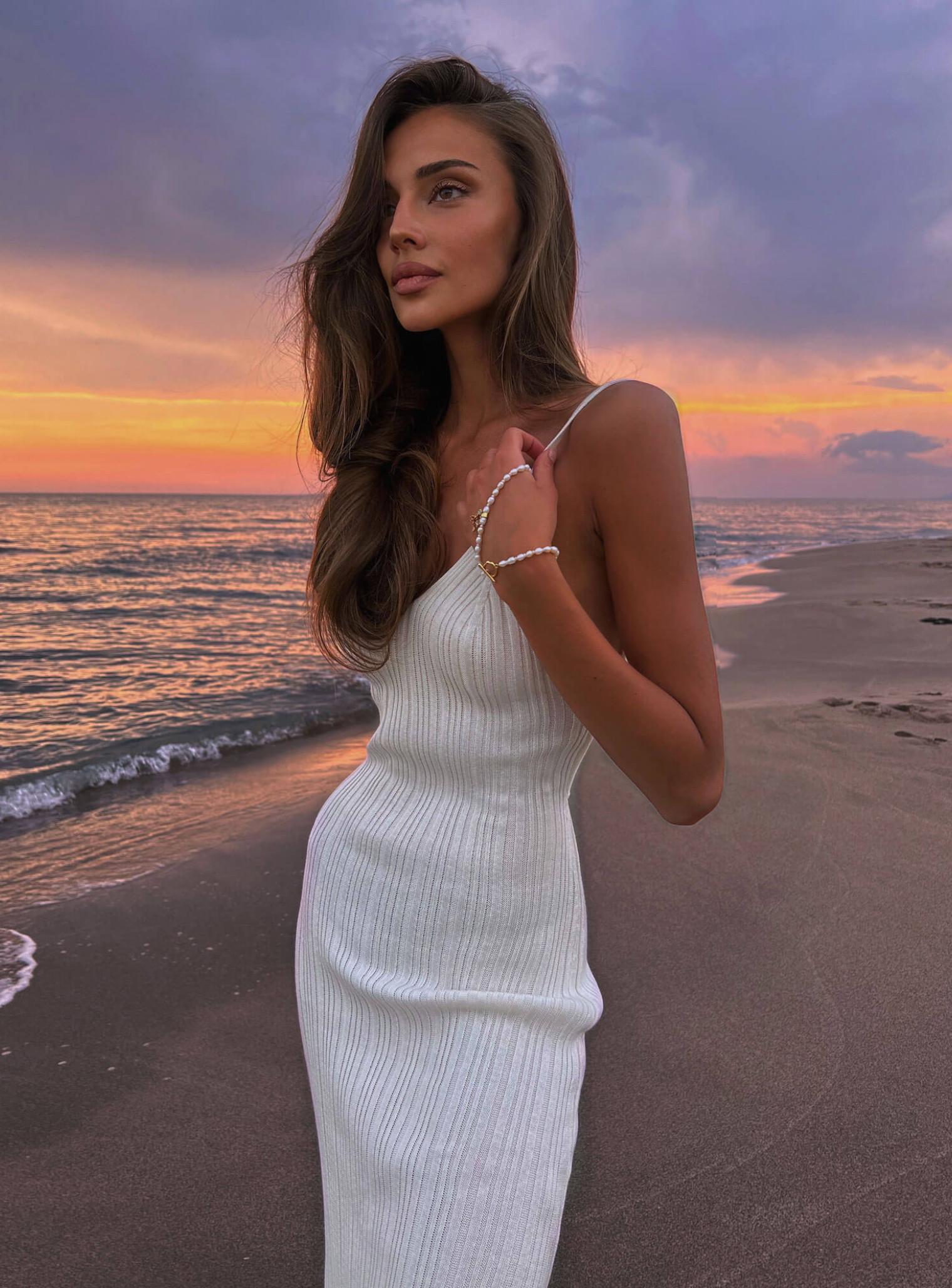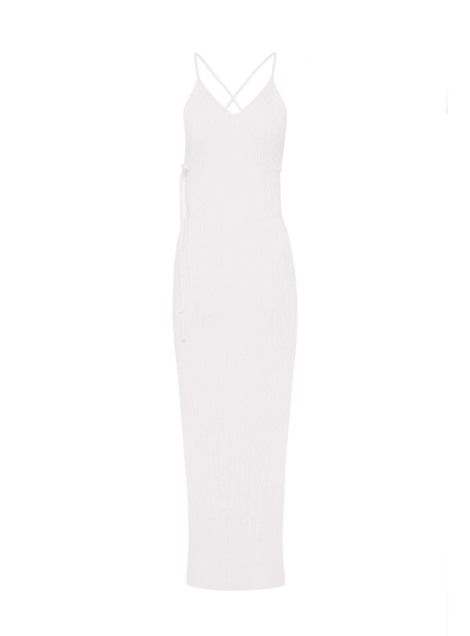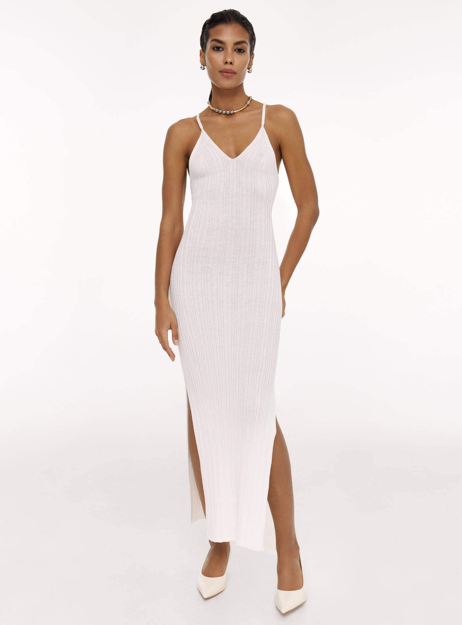 Exquisite dress on thin razors. Dress with an open back, emphasizes elegance. Made of soft natural cotton.