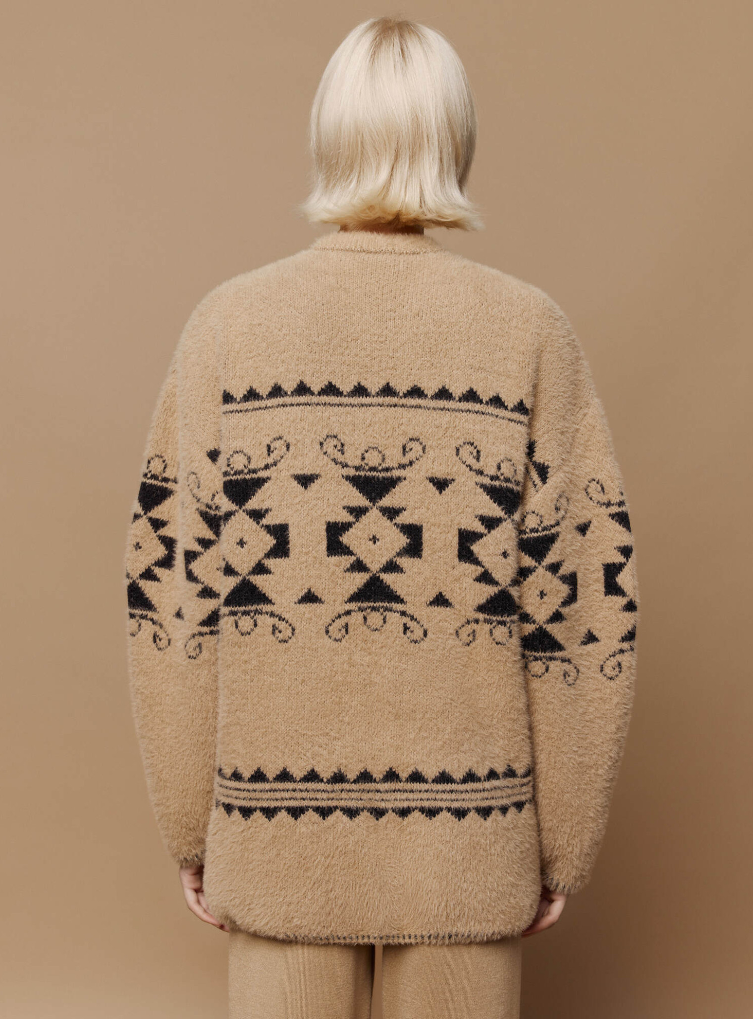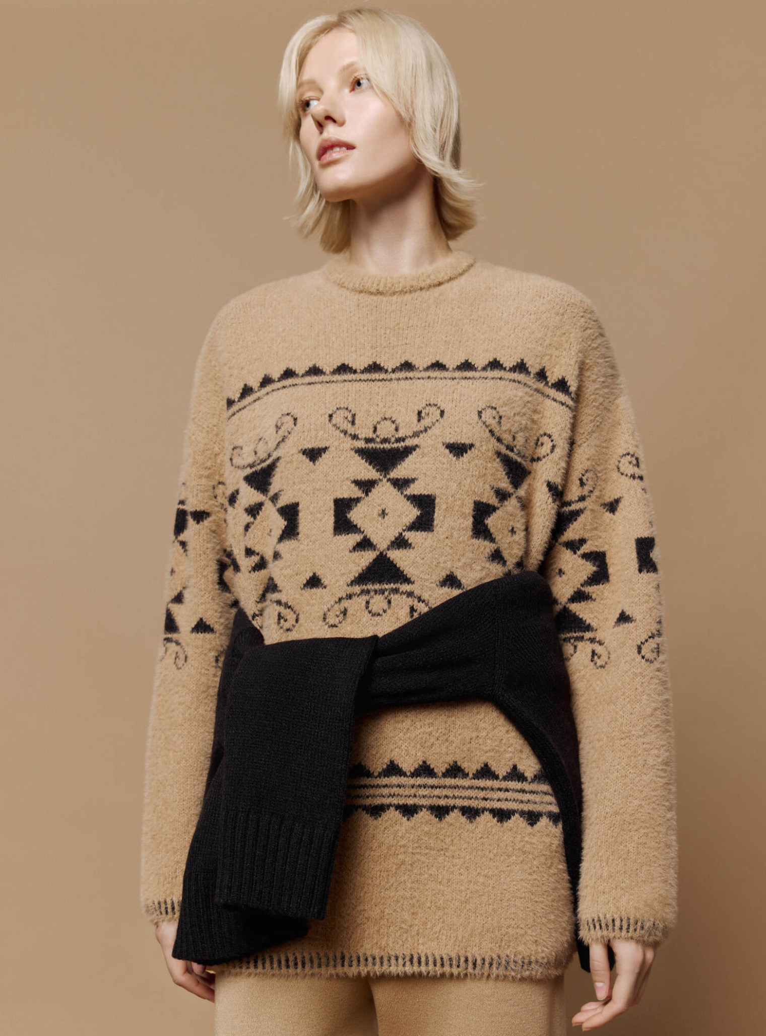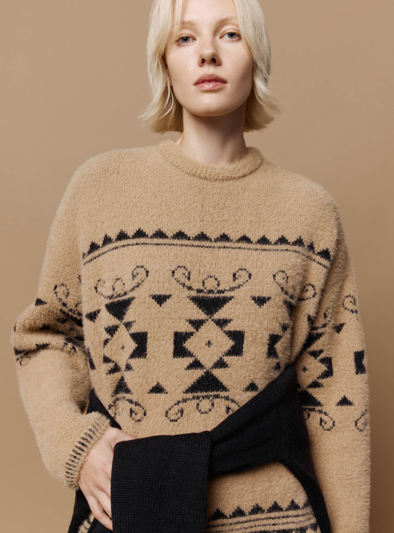 Symbol: Sweater made of fluffy yarn with ornament Caramel + Black