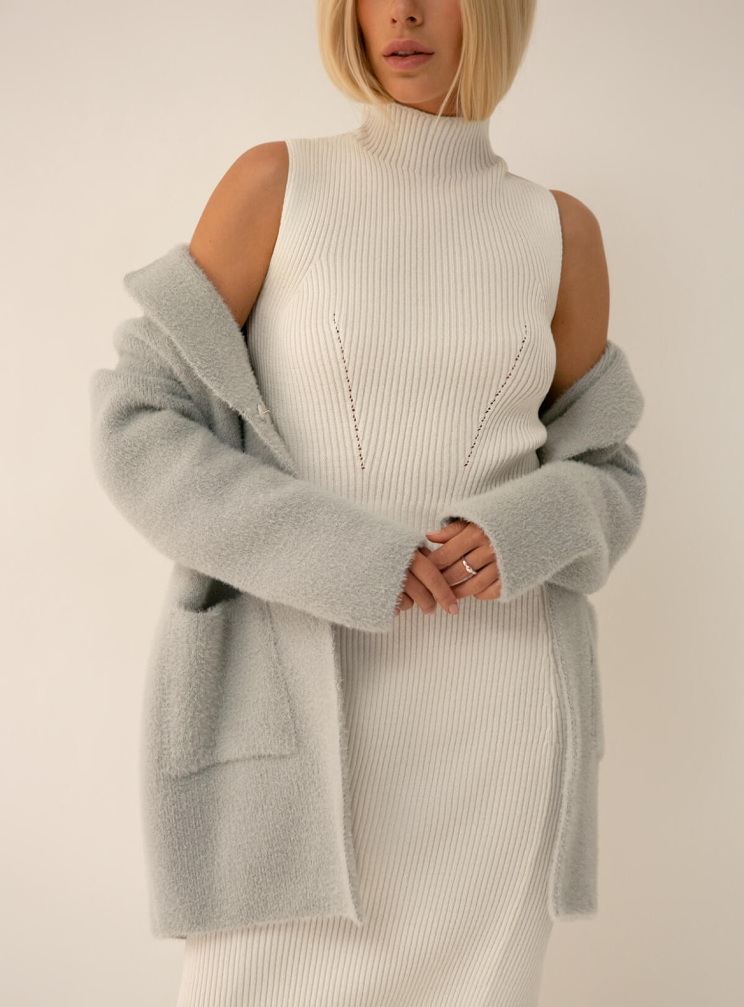 The basic ribbed top with a high neck is made of natural cotton, extremely pleasant to the body. The perfect capsule item for your wardrobe.
