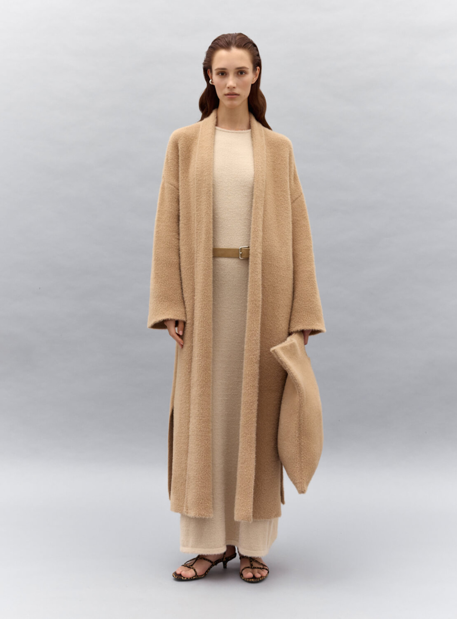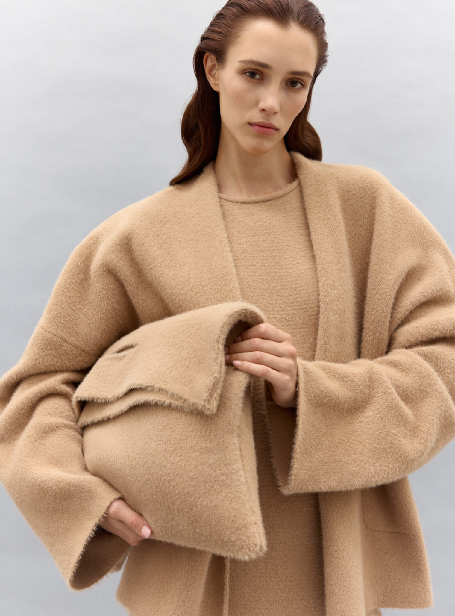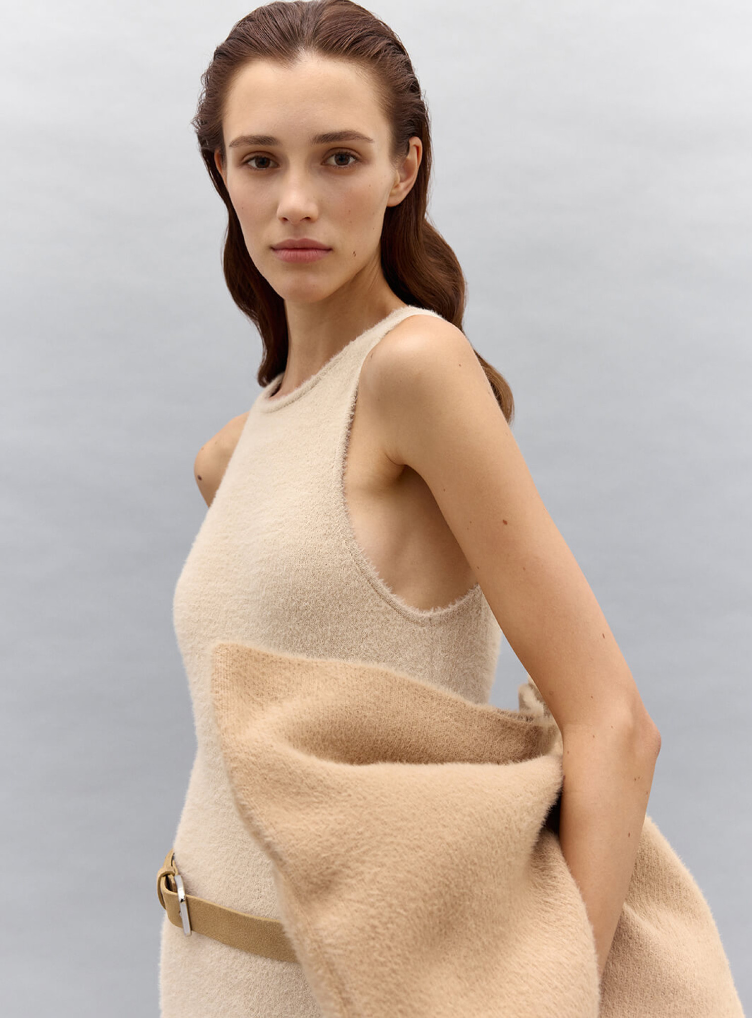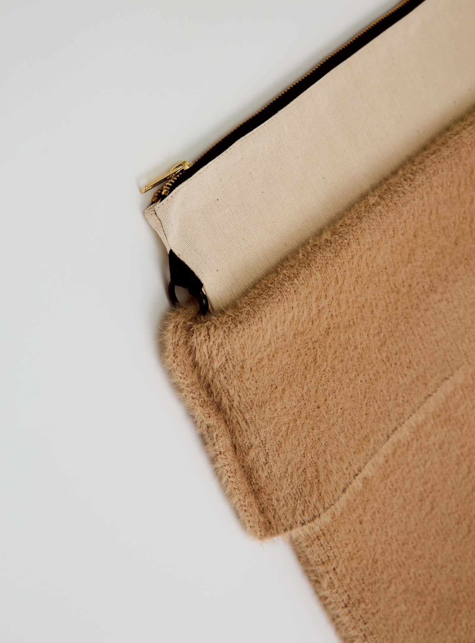 Стильная сумка клатч прямоугольной формы, которую можно носить в сложенном виде, или держа за вывязанные ручки. Выполнена из нежной пушистой пряжи плотного плетения. Внутри есть хлопковая косметичка, прикрепленная на два карабина, для удобного хранения вещей. Вложенная косметичка облегчает уход за сумкой, и позволяет использовать ее как отдельный аксессуар. Трендовая модель создана, чтобы дополнить ваши стильные образы.