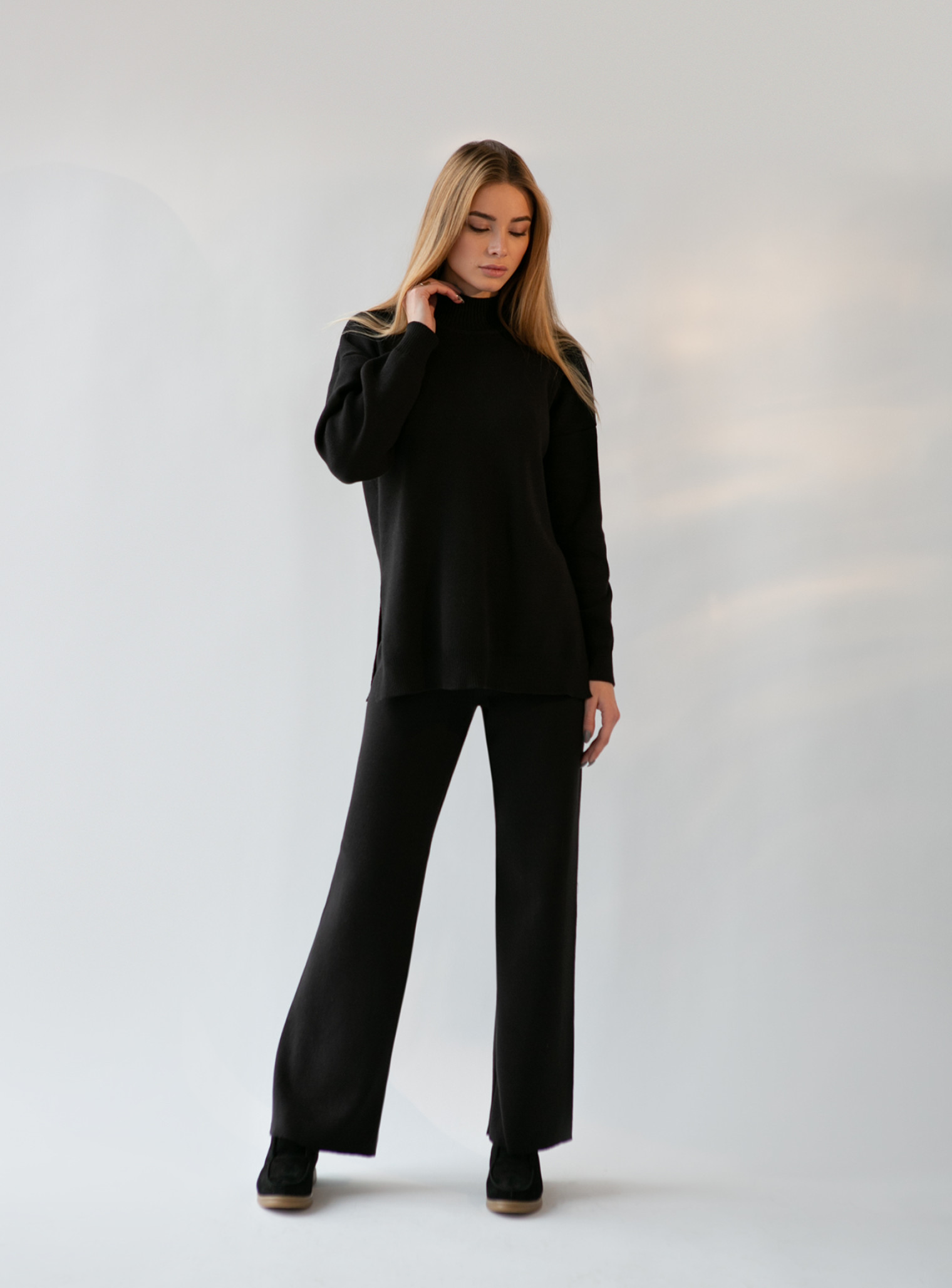 Брюки прямые из плотного джерси черные