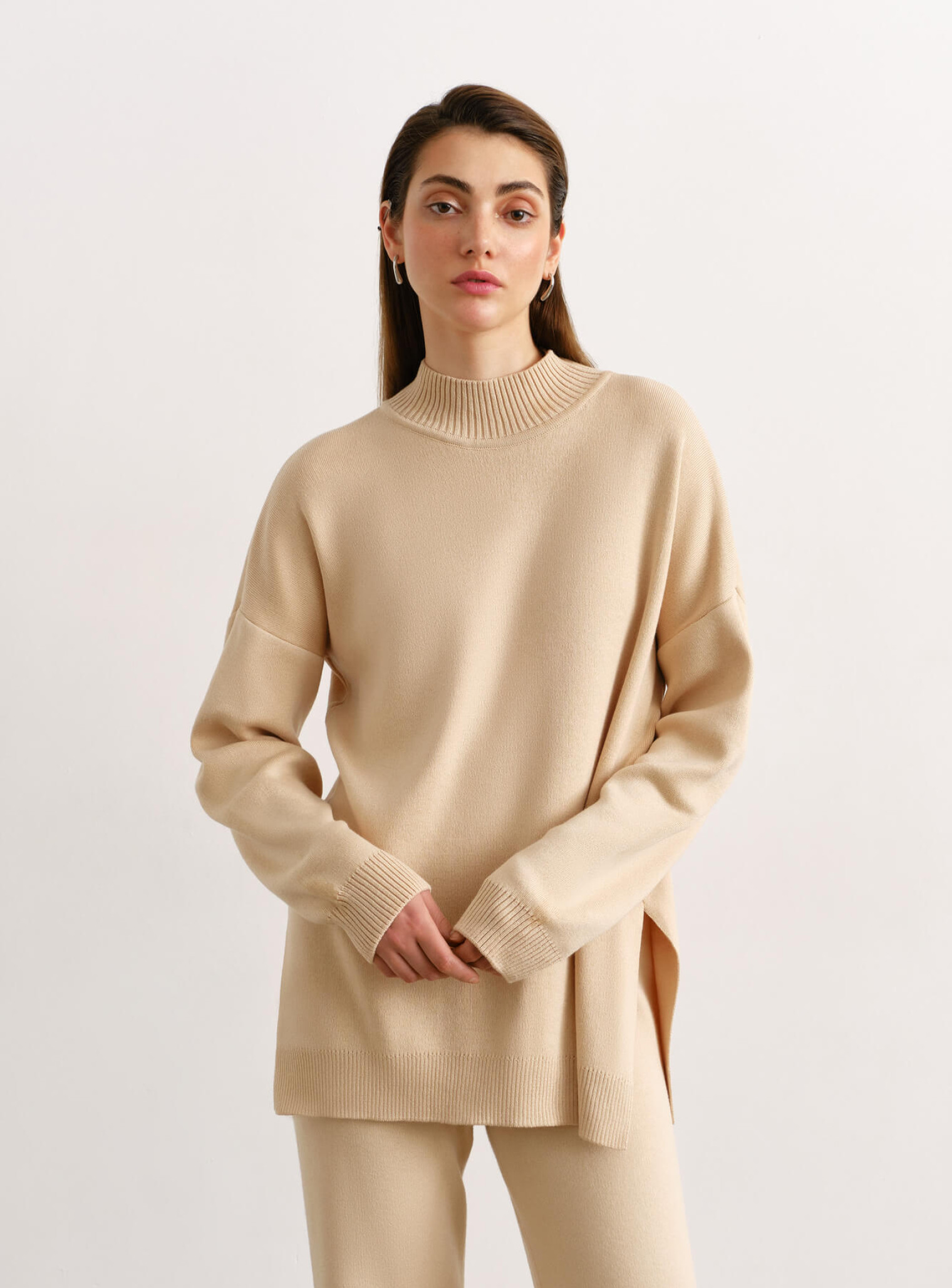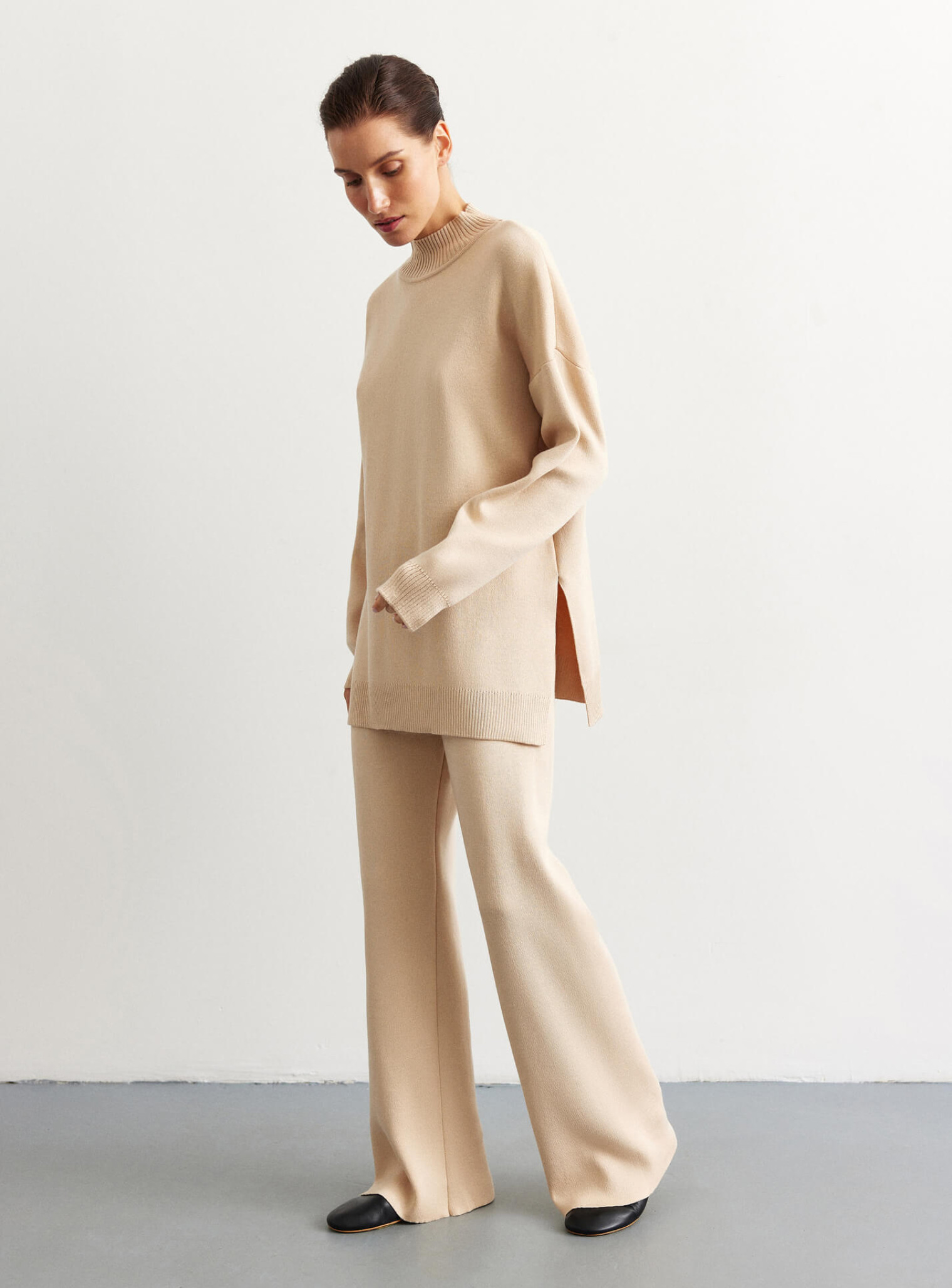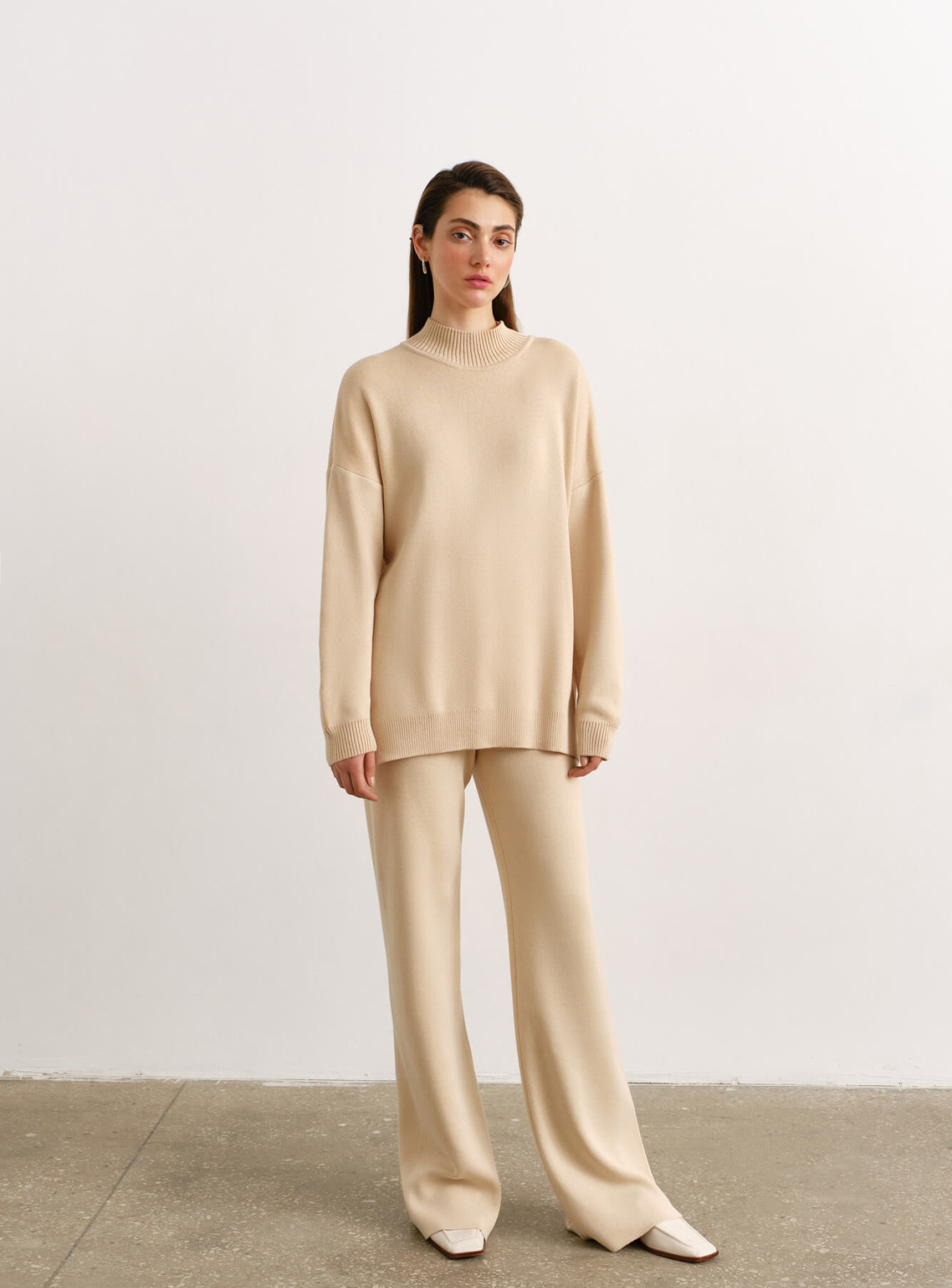 Брюки прямые из плотного джерси крем