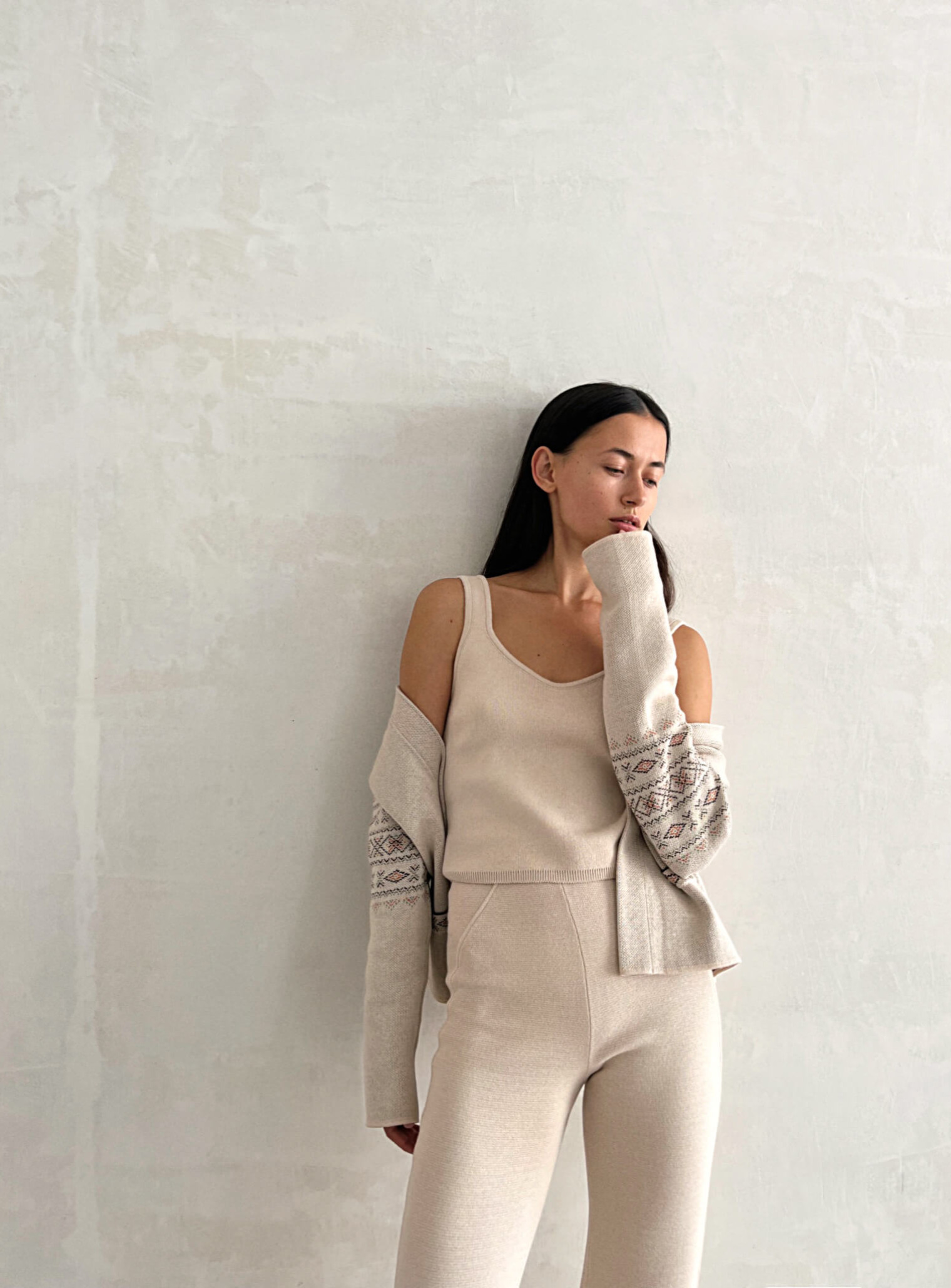 Теплые брюки выполнены из нежного хлопка в классическом подчеркивающем фигуру варианте. Прекрасно дополнят образы на каждый день в сочетании с джемперами, кардиганами и жакетами.