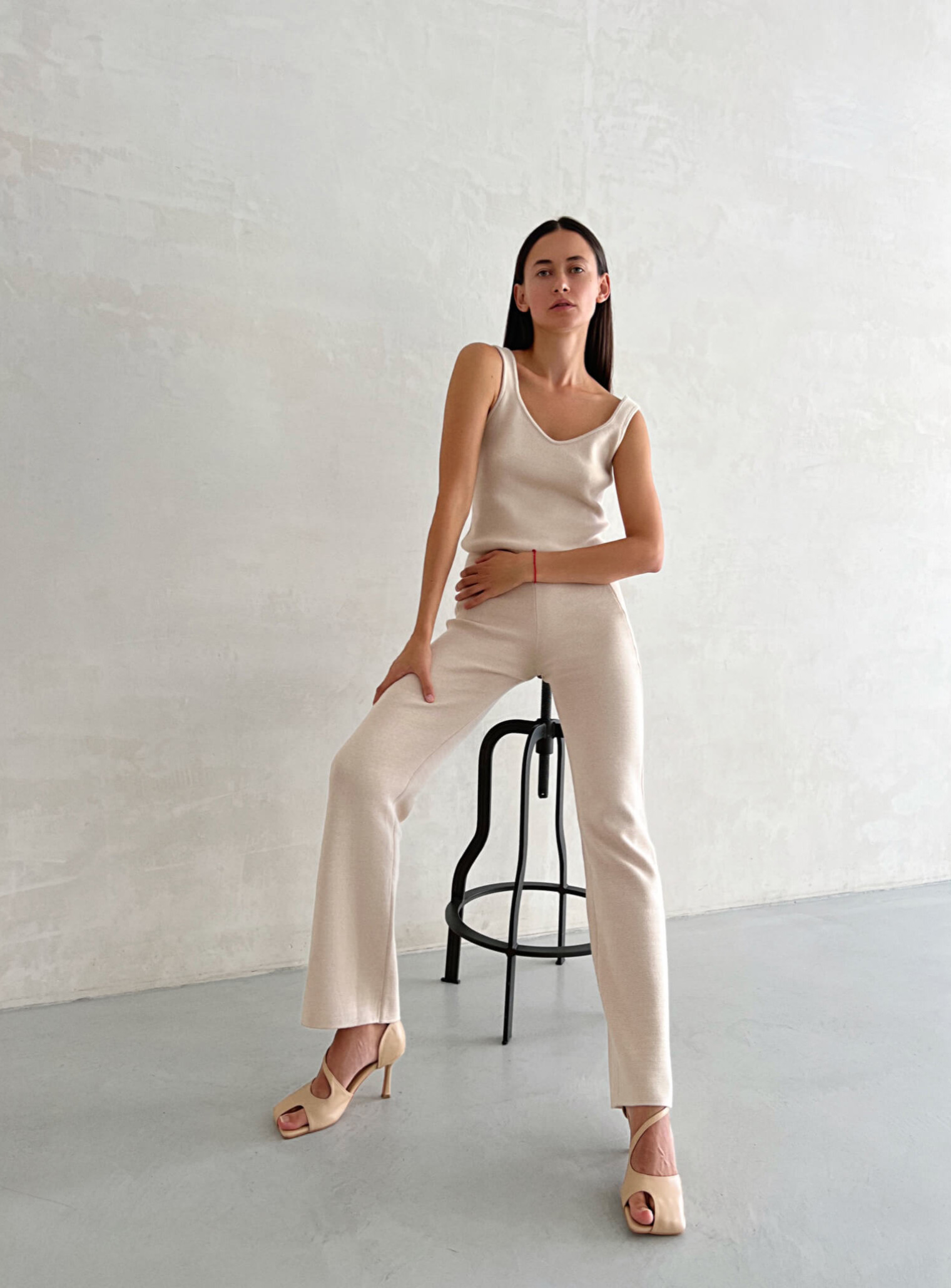 Брюки с декоративной строчкой крем