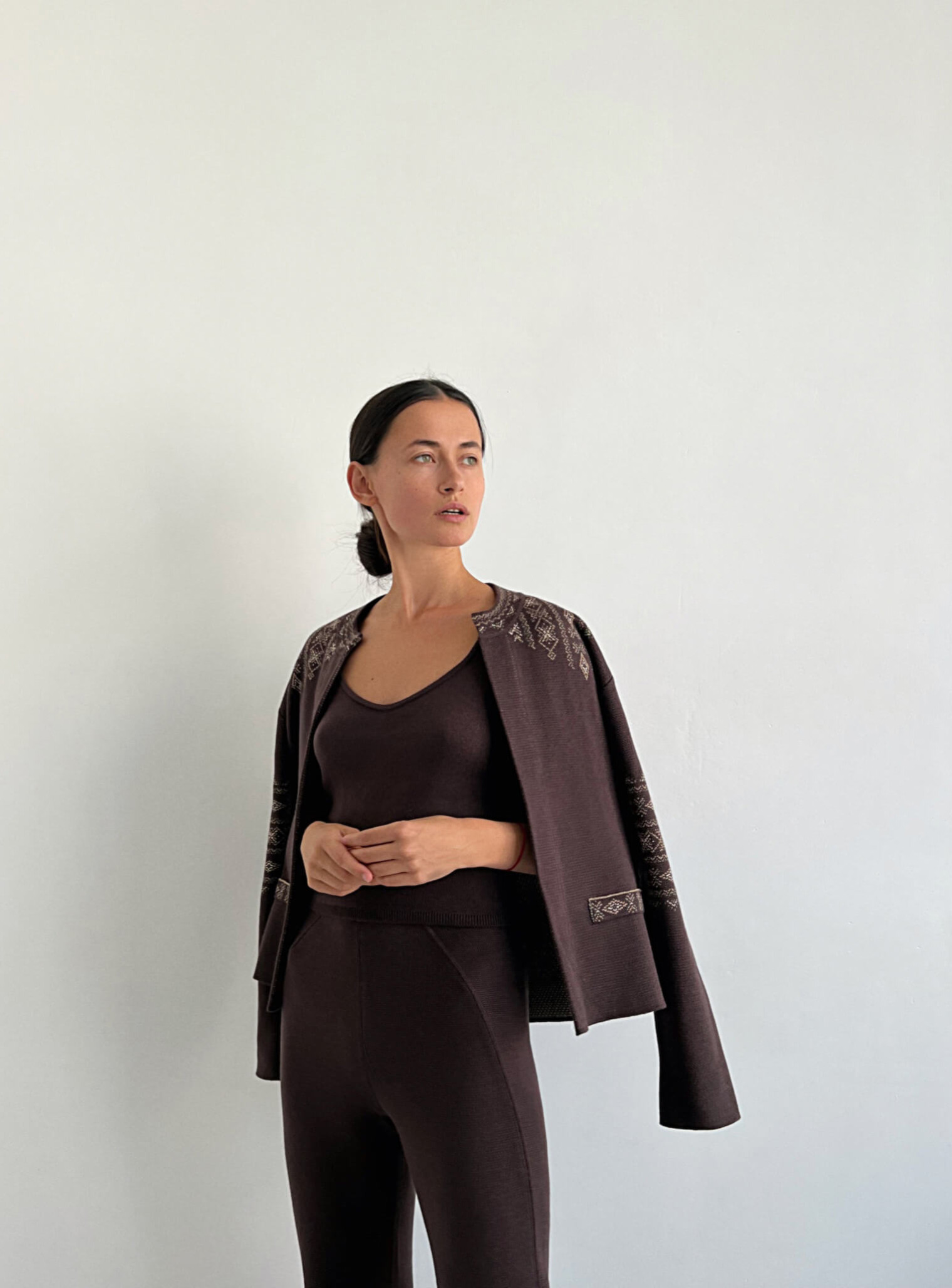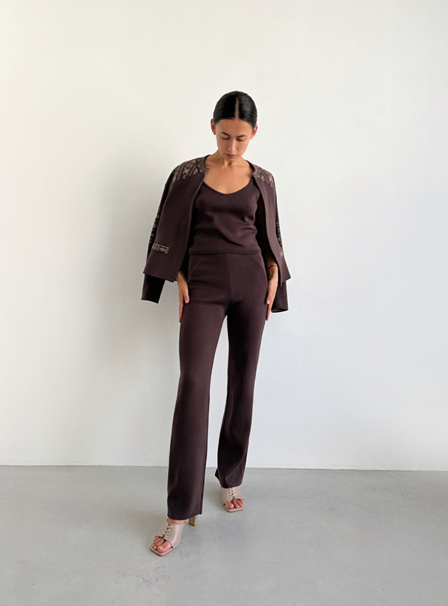 Теплые брюки выполнены из нежного хлопка в классическом подчеркивающем фигуру варианте. Прекрасно дополнят образы на каждый день в сочетании с джемперами, кардиганами и жакетами.