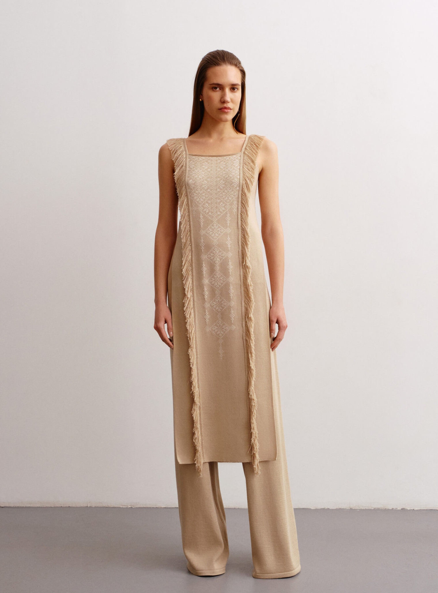 Брюки свободного фасона бежевые