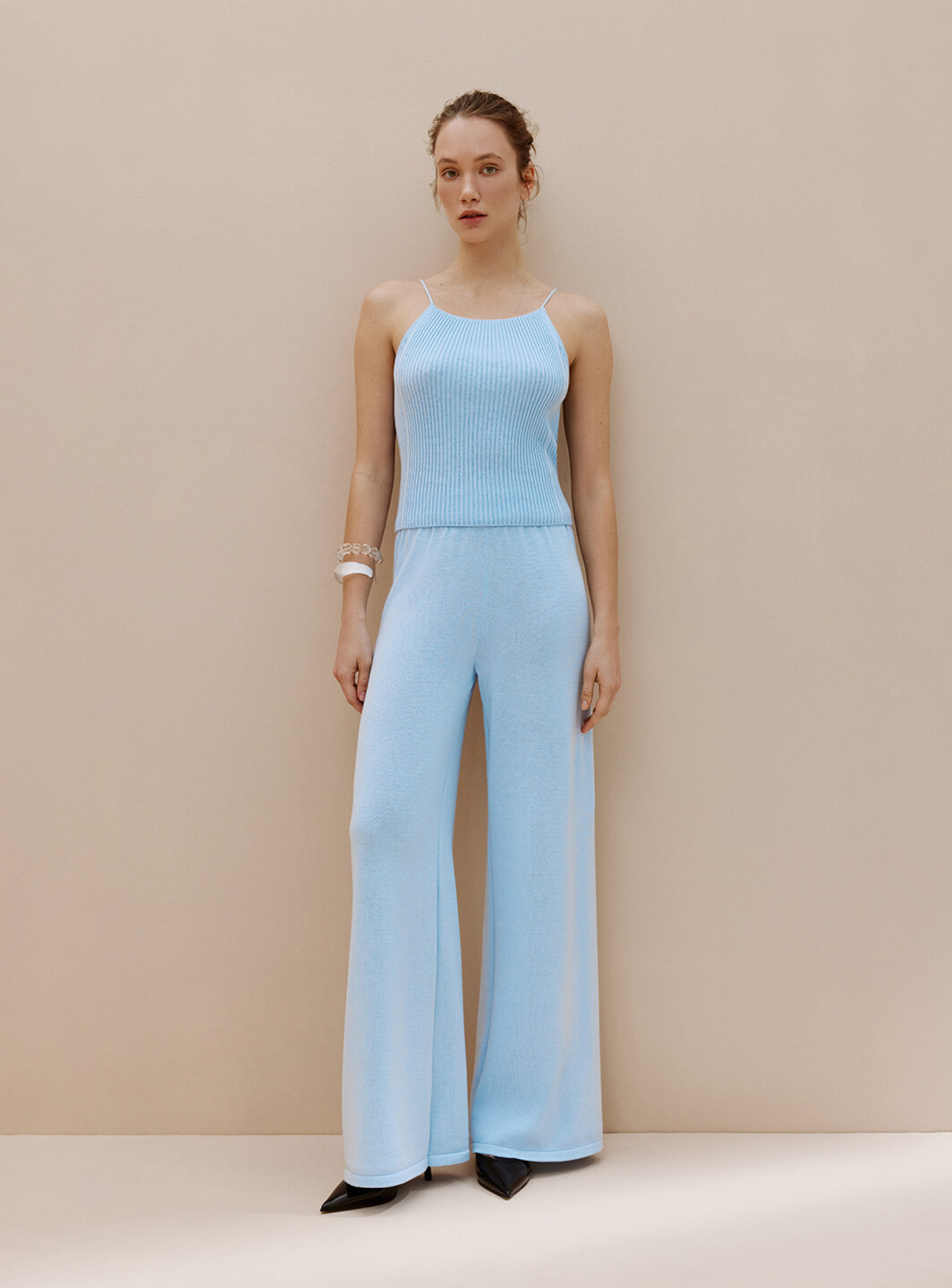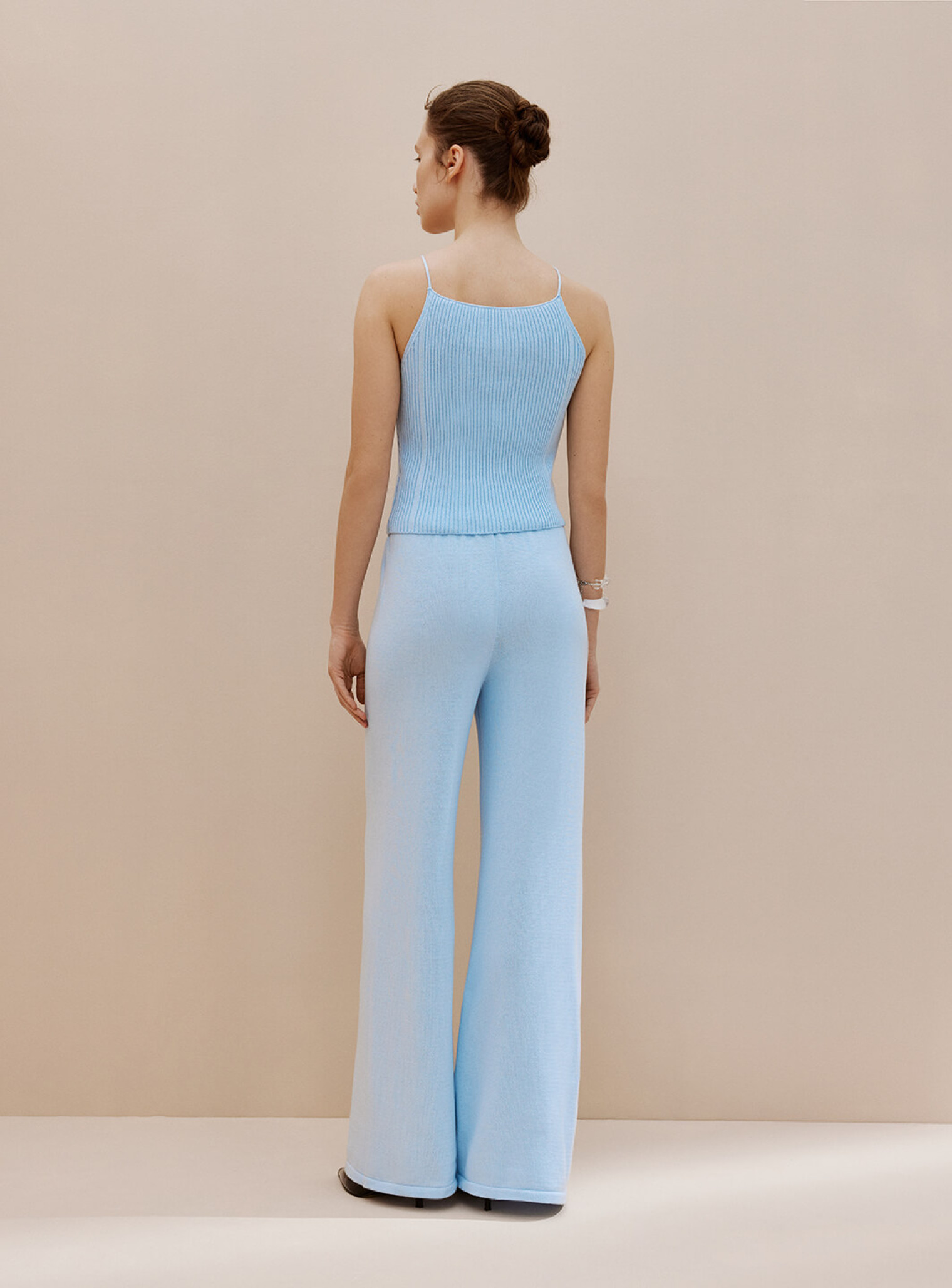 Базовые брюки, которые станут отличным дополнением твоего летнего гардероба. Выполнены из натурального хлопка, свободного кроя, расширены вниз, - фасон выглядящий элегантно и изысканно на всех типах фигуры.