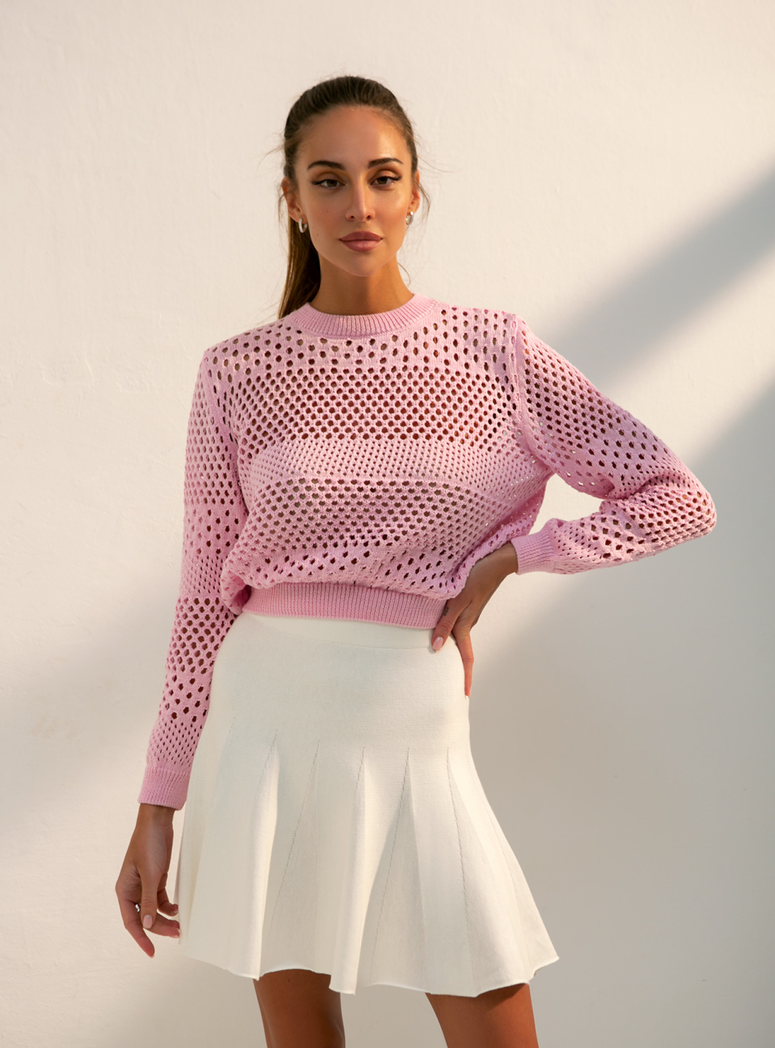 Стильный джемпер со сквозным орнаментом - Must Have нашей новой коллекции. Эффектно преображает, добавляет воздушность и шарм внешнему облику.