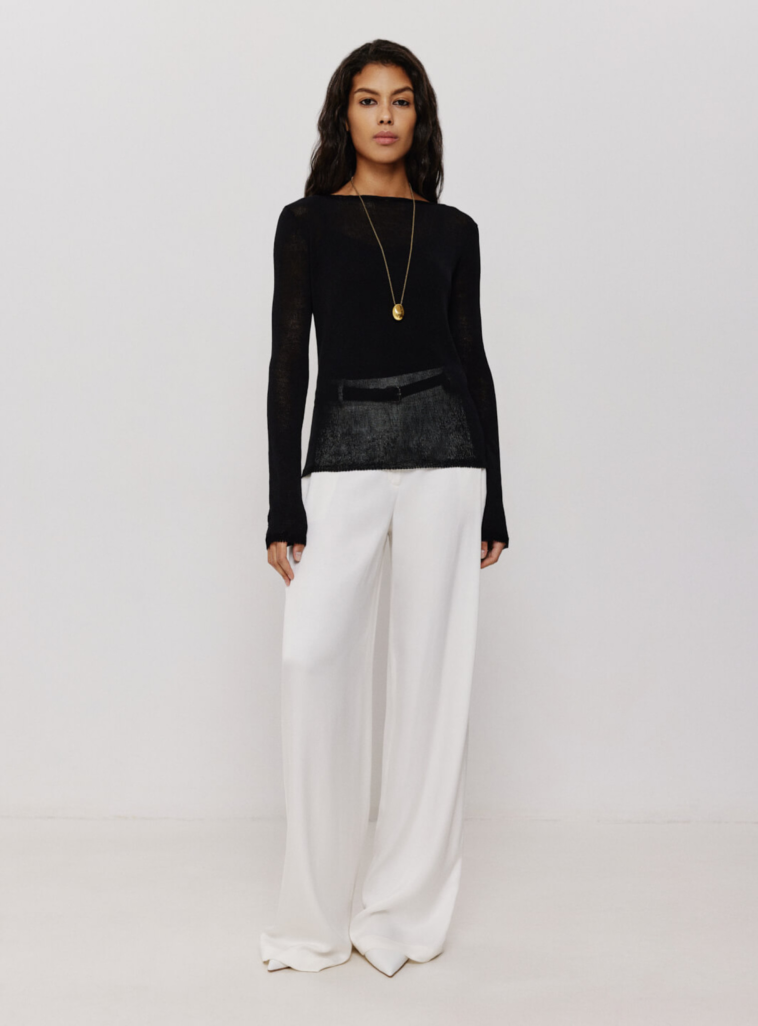 Женский джемпер свободного кроя из деликатной полупрозрачной вискозы, предназначенный для расслабленных образов. Невесомый элемент, который станет моделью-конструктором в сочетании с боди из вискозы в тон джемпера, или контрастной стилизации.