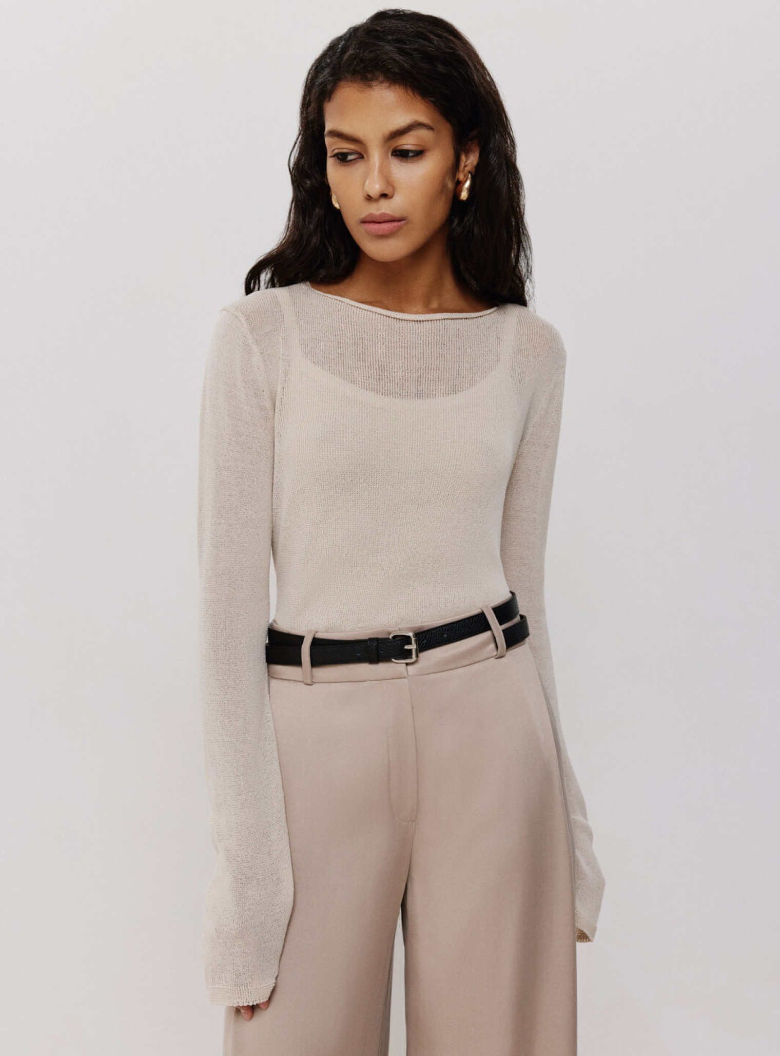 Жемчужный джемпер из полупрозрачной вискозы с вырезом лодочка "Новелла"