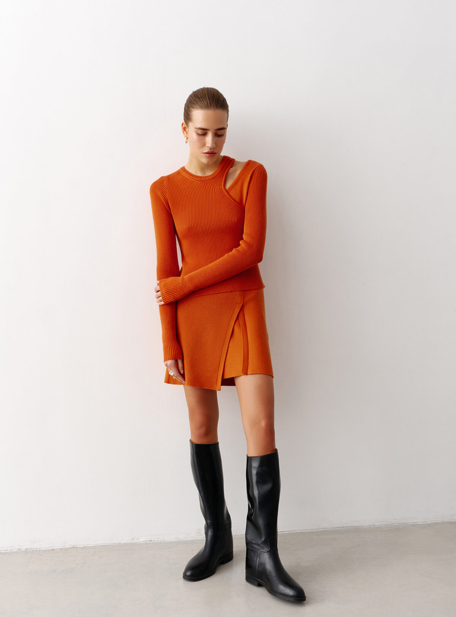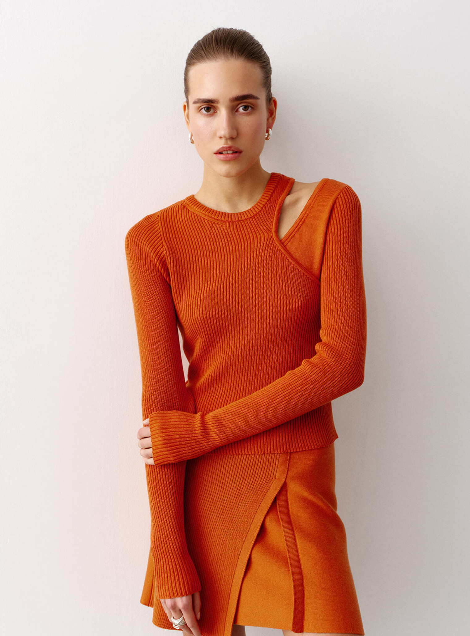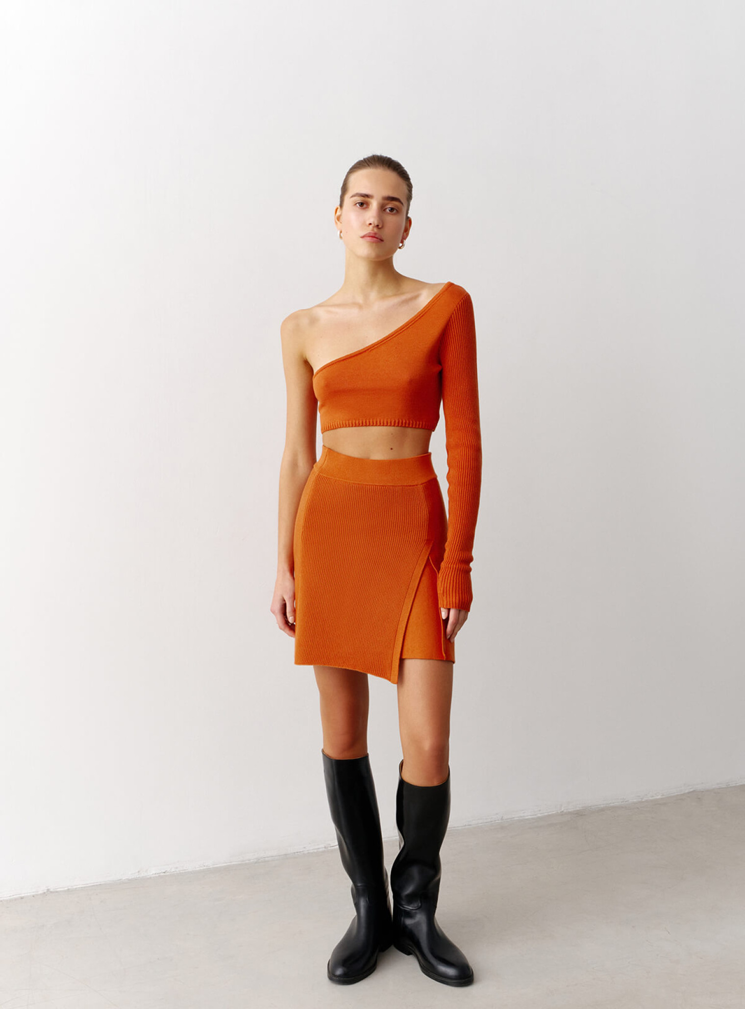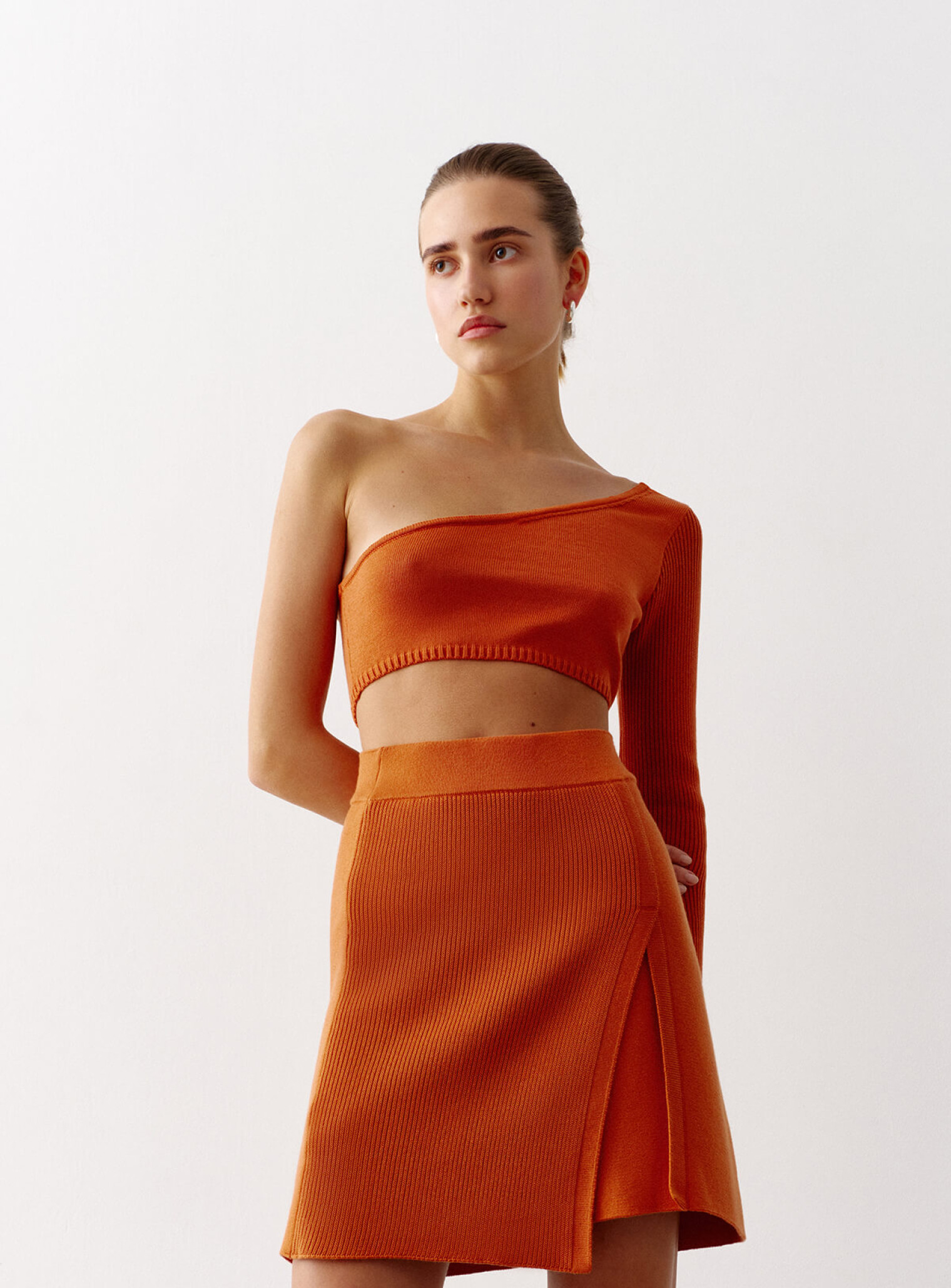 Джемпер комбинирующийся из двух трендовых топов на одно плечо – эффектный образ для твоих особых событий. Можно носить вместе и отдельно, создавая три новых лука. Сочетается в стильный костюм с ассиметричной юбкой.