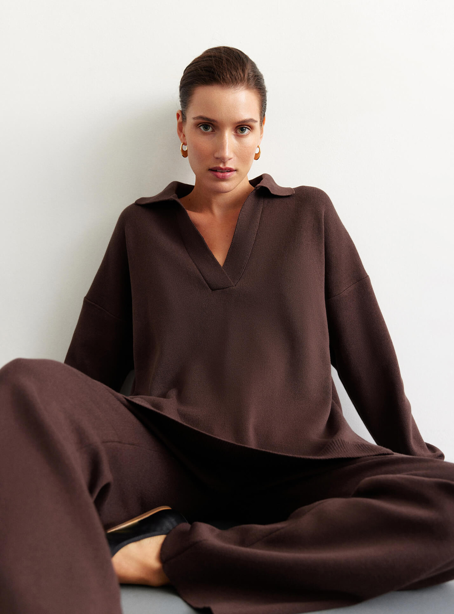 Мягкий и нежный стильный трикотажный джемпер поло из натуральной хлопковой нити. Разнообразие наших моделей из высококачественной пряжи порадует выбором и приятно удивит.