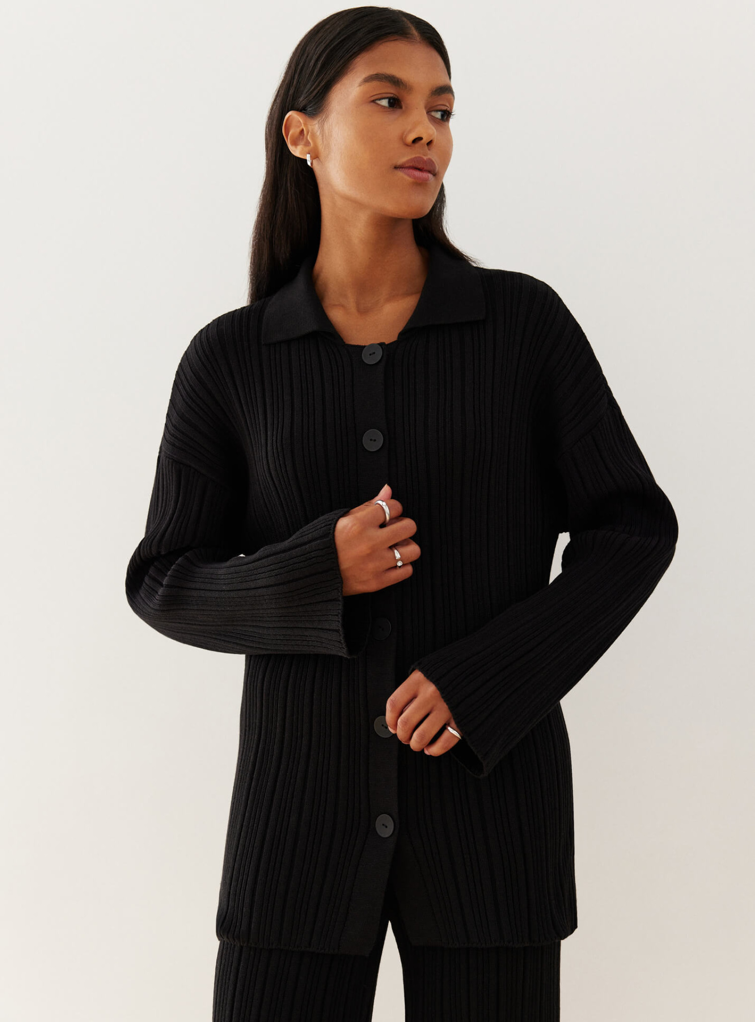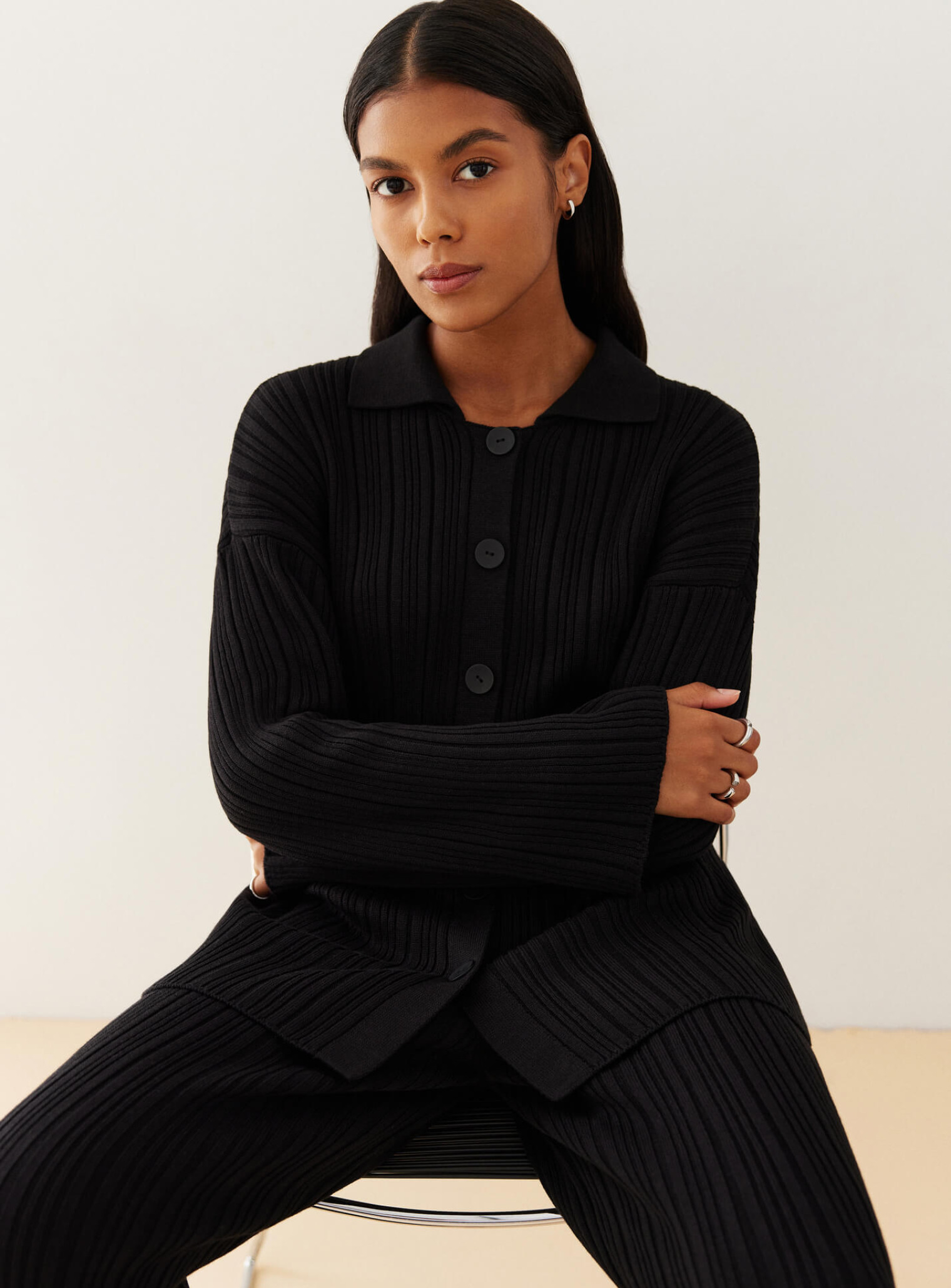 Женский черный джемпер с воротником на пуговицах "Адалин"