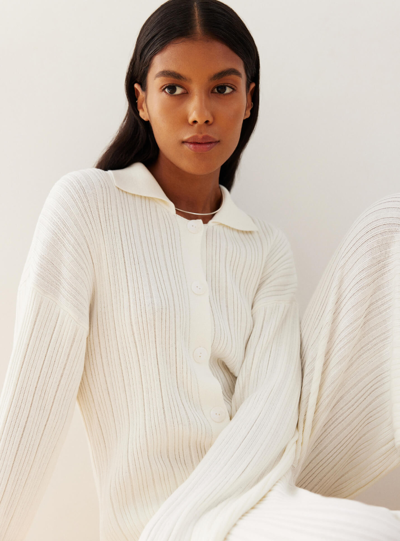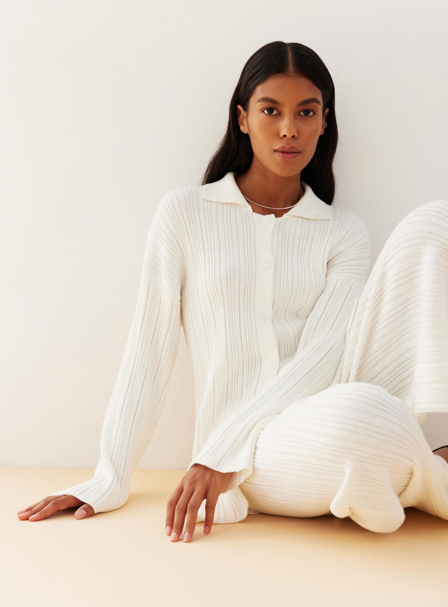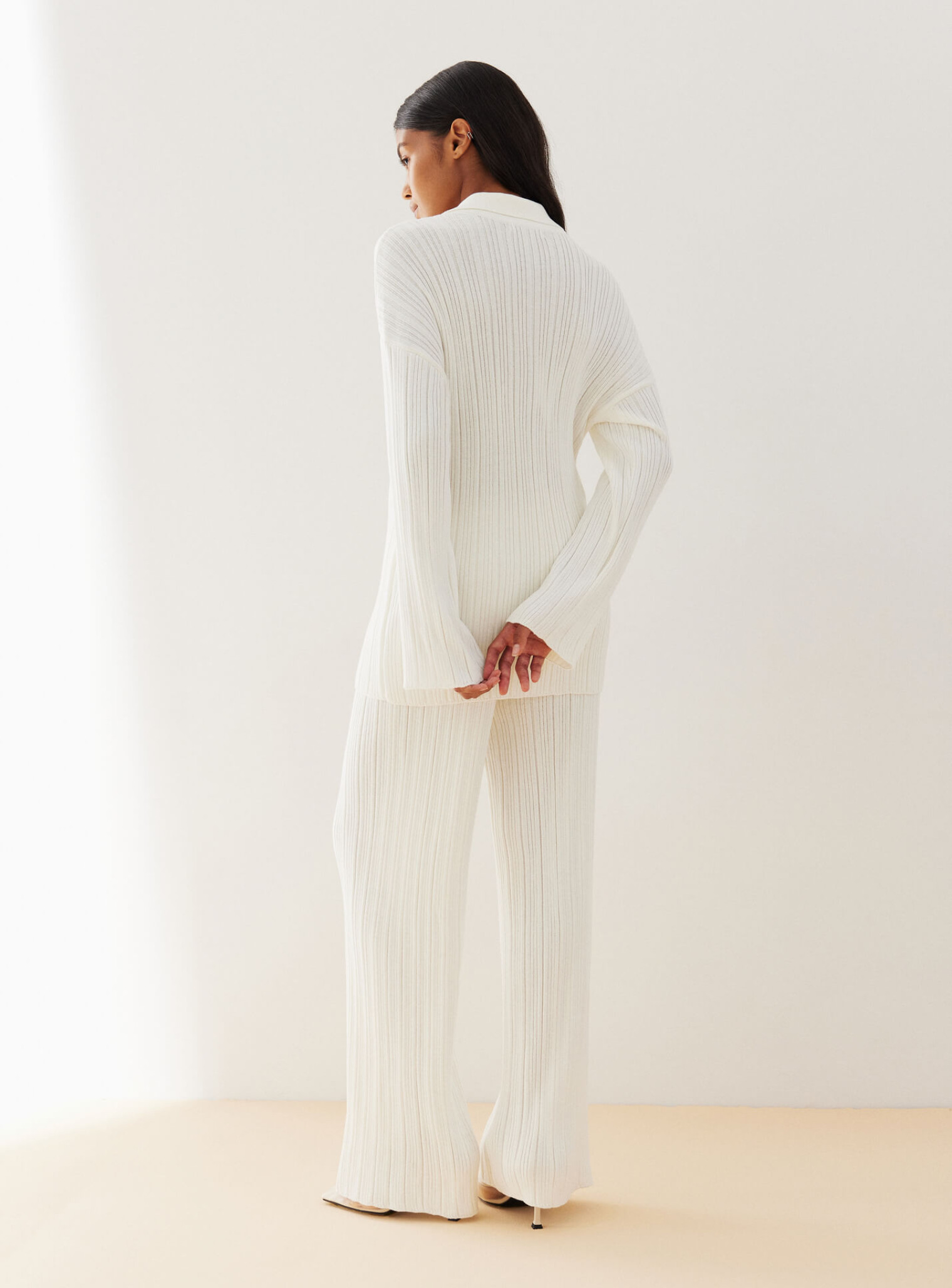 Стильный джемпер с деликатным воротничком и удлиненным рукавом, придающий образу изысканности. Выполнена из фактурного трикотажа, который удлиняет силуэтные линии и подчеркивает женственность. Сочетается в костюм с брюками прямого кроя.