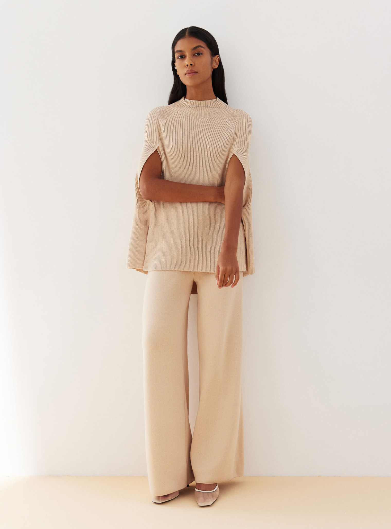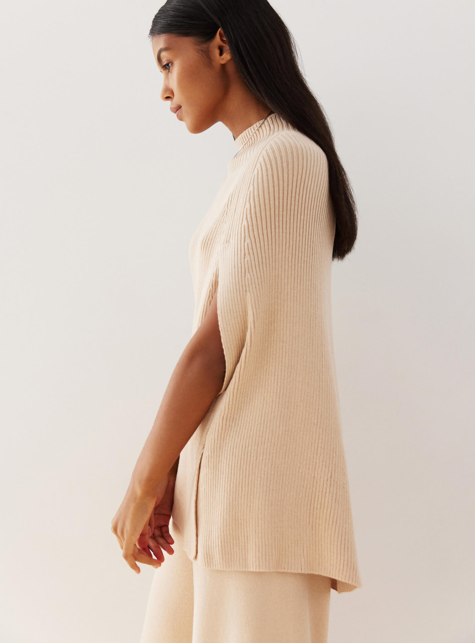 Трендовый джемпер в рубчик с маленькими пуговицами, позволяющими экспериментировать со стилизацией образов. Удлиненный крой создает элегантный женственный силуэт, а минималистичный дизайн джемпера удачно сочетается с брендовыми брюками и юбками.