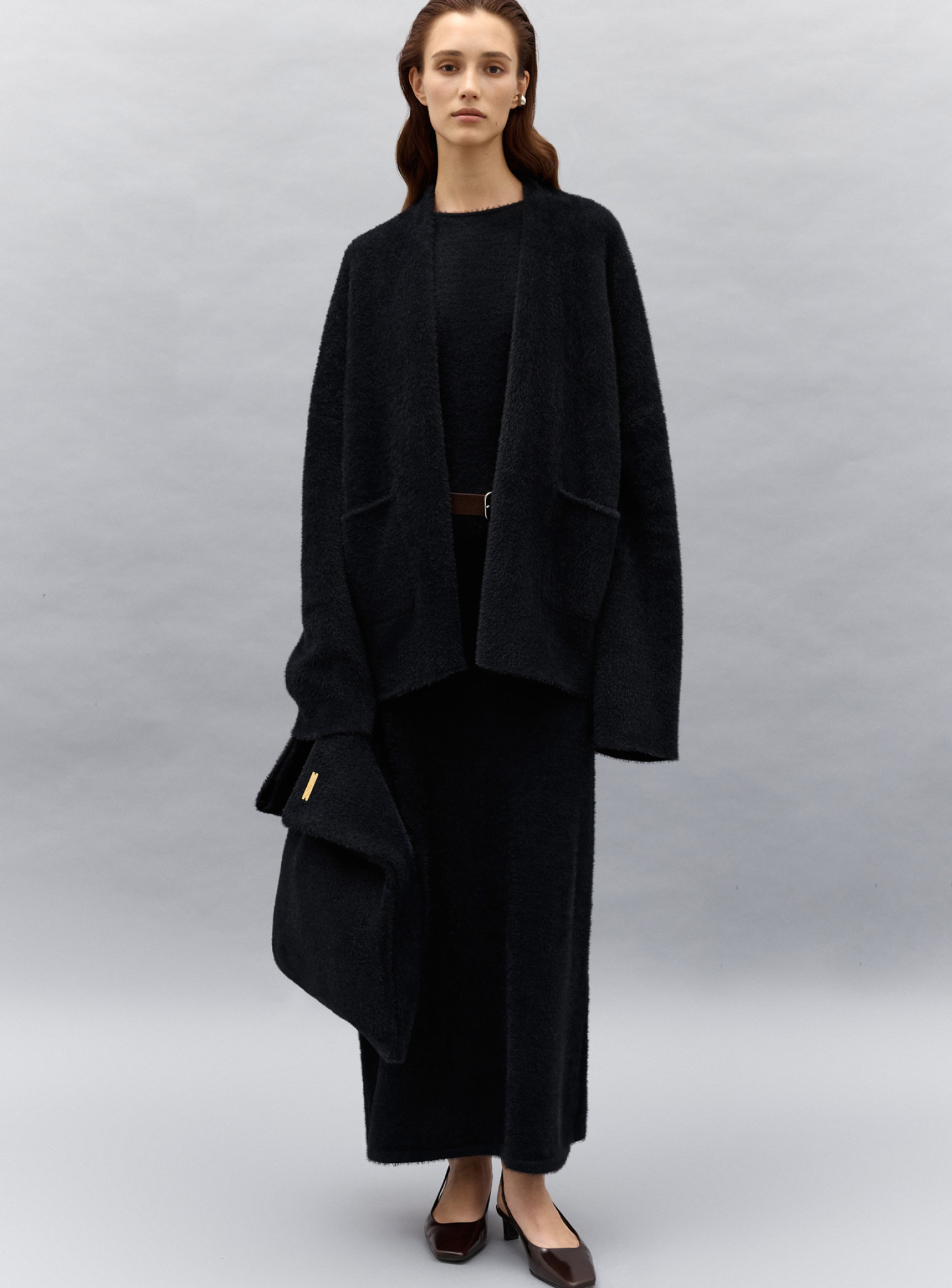Кардиган кимоно из пушистой пряжи Эмбер черный