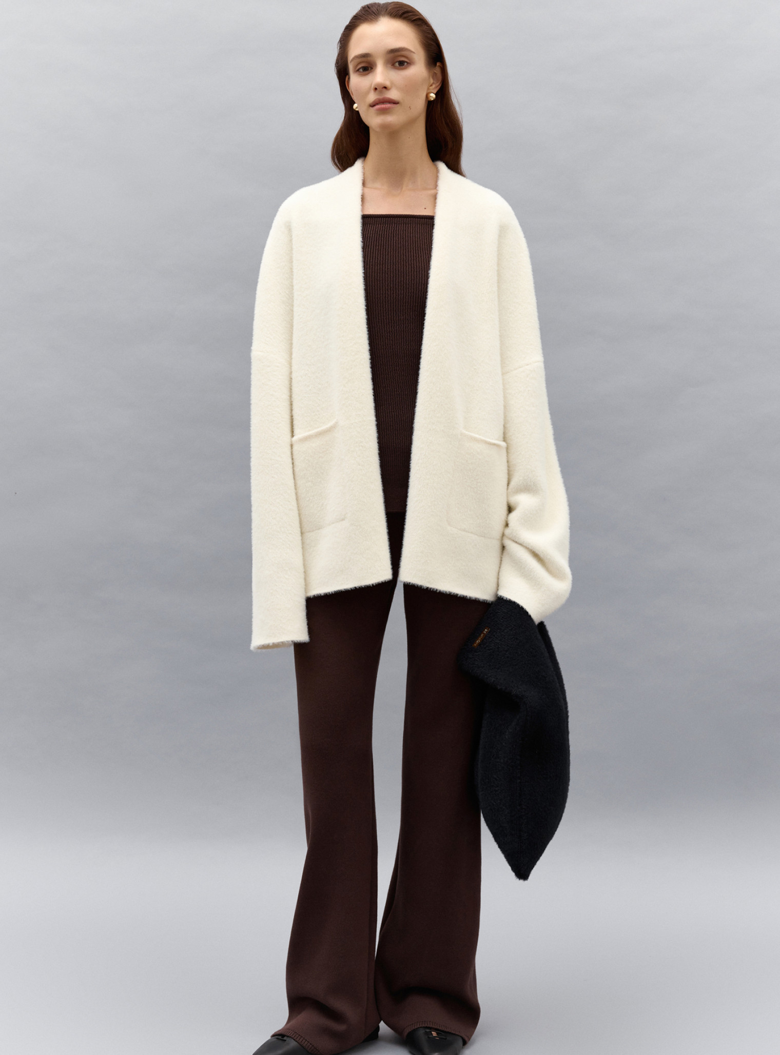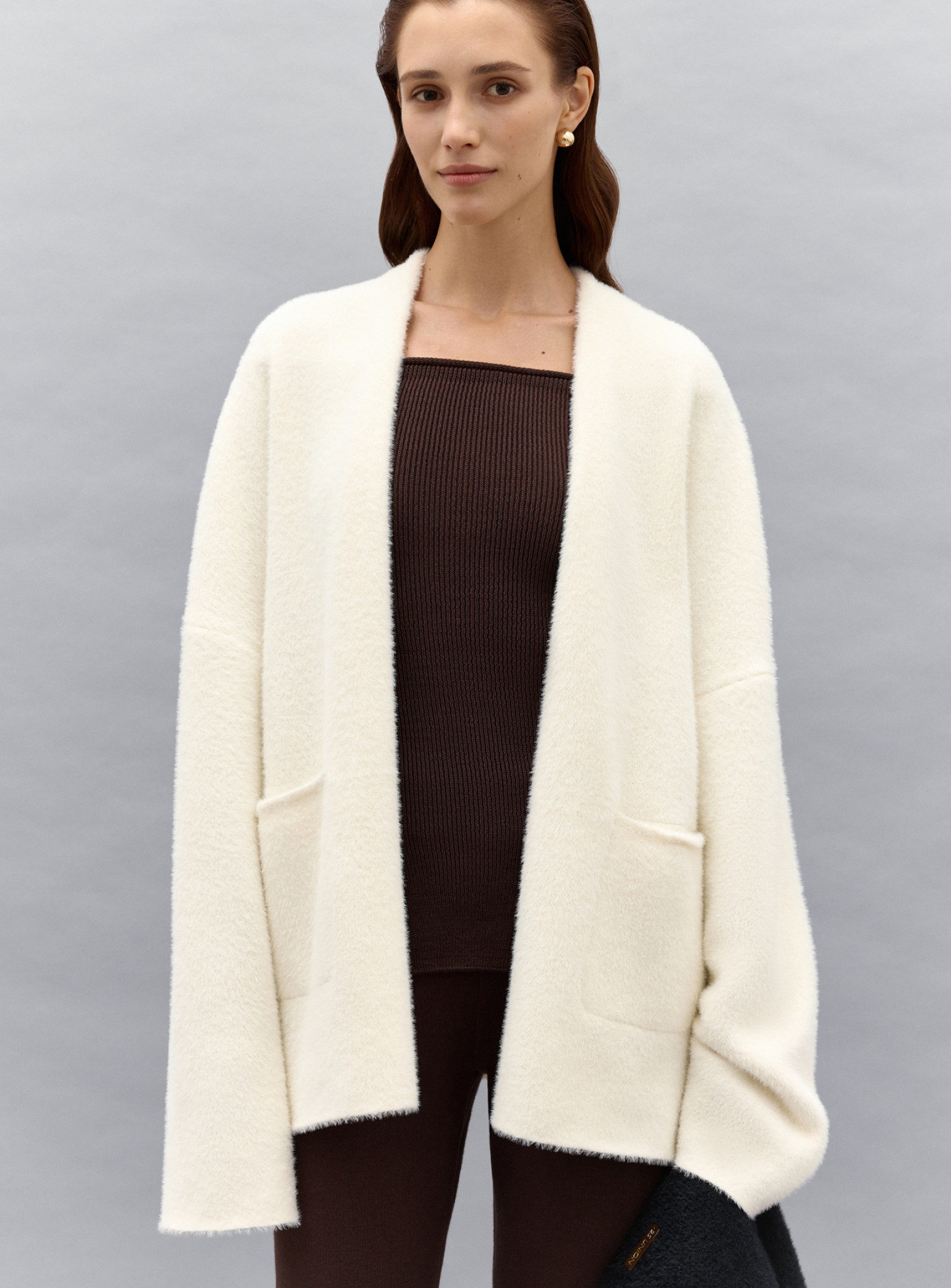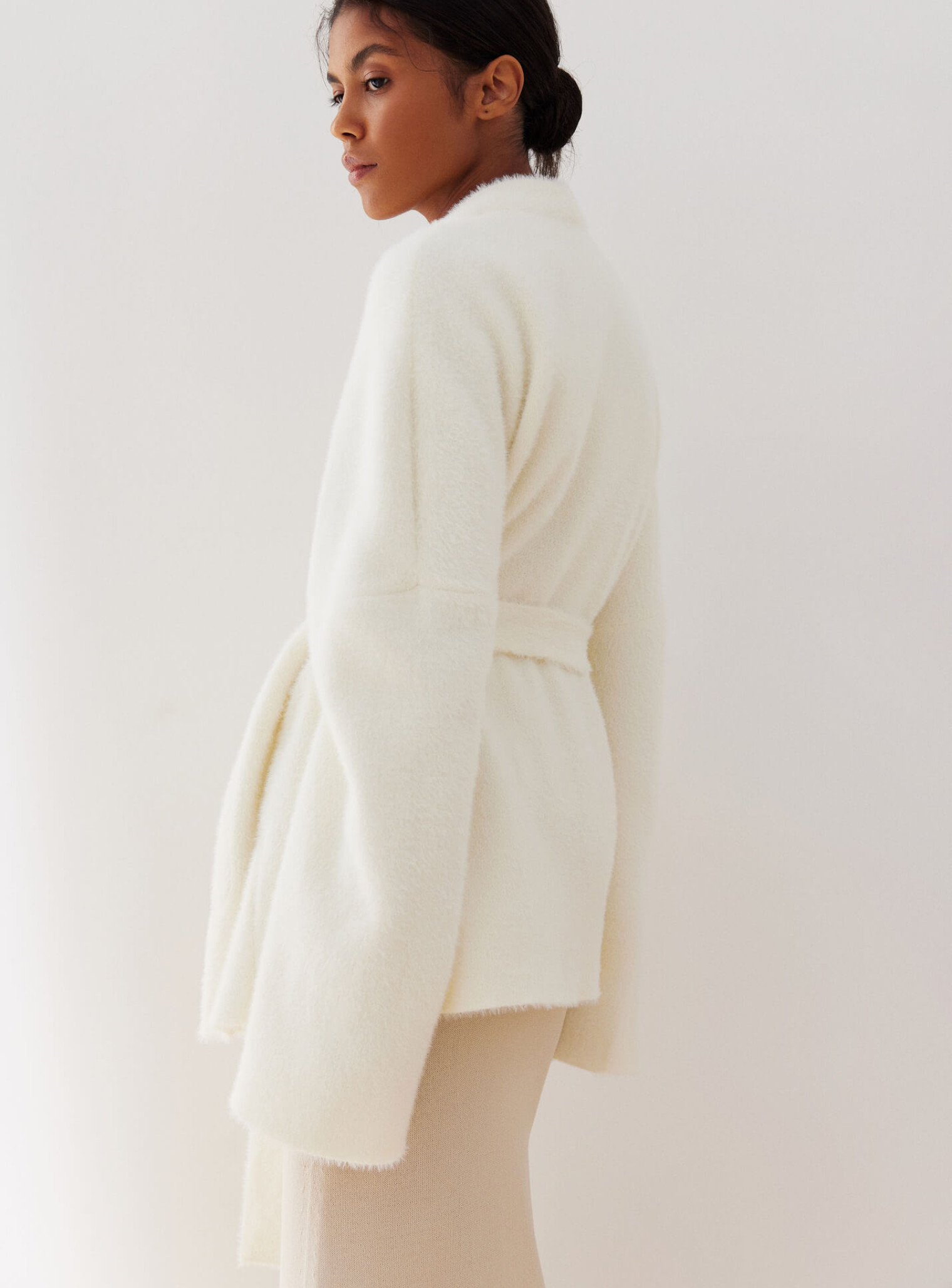 Кардиган кимоно из пушистой пряжи Эмбер молоко