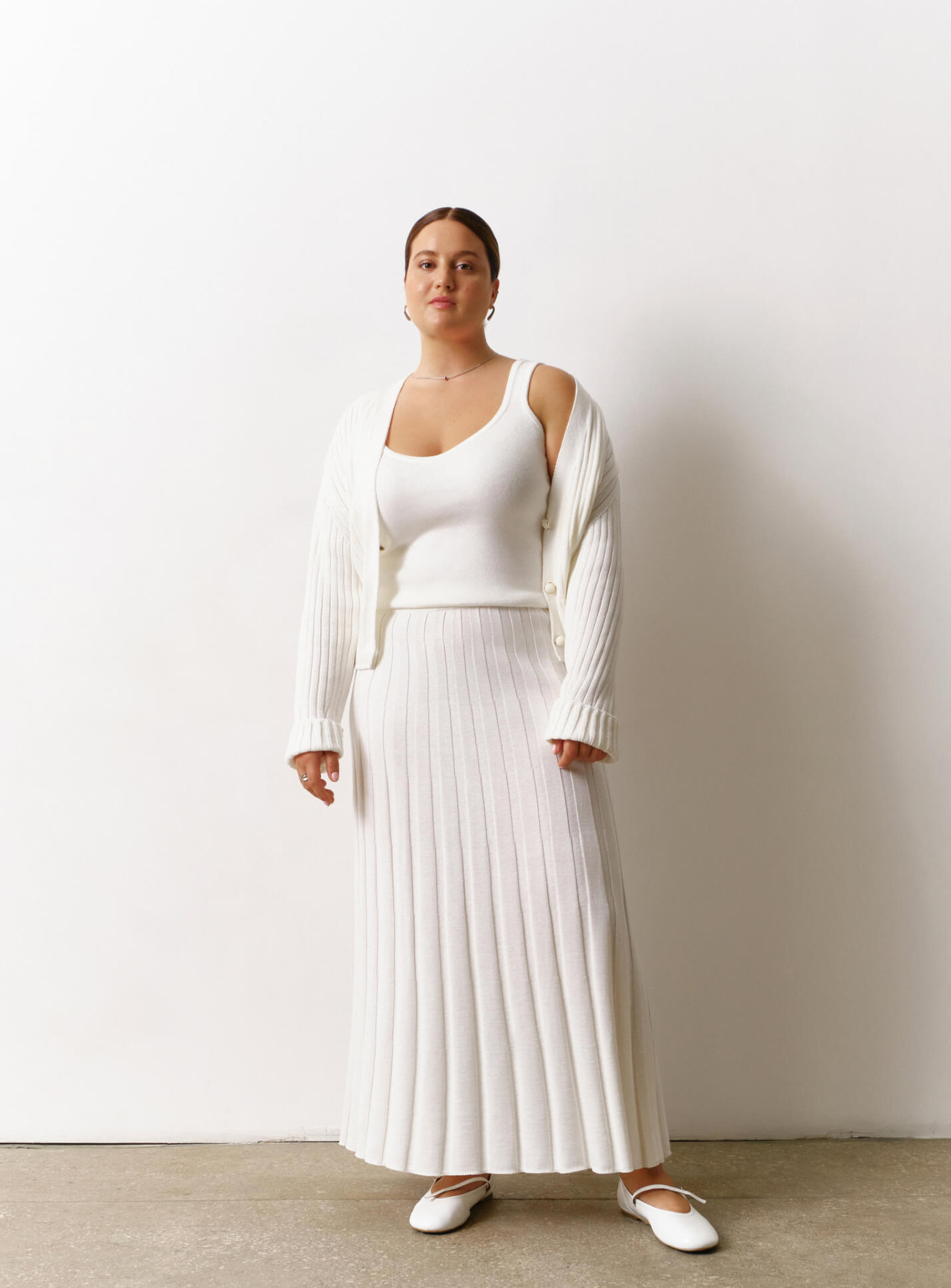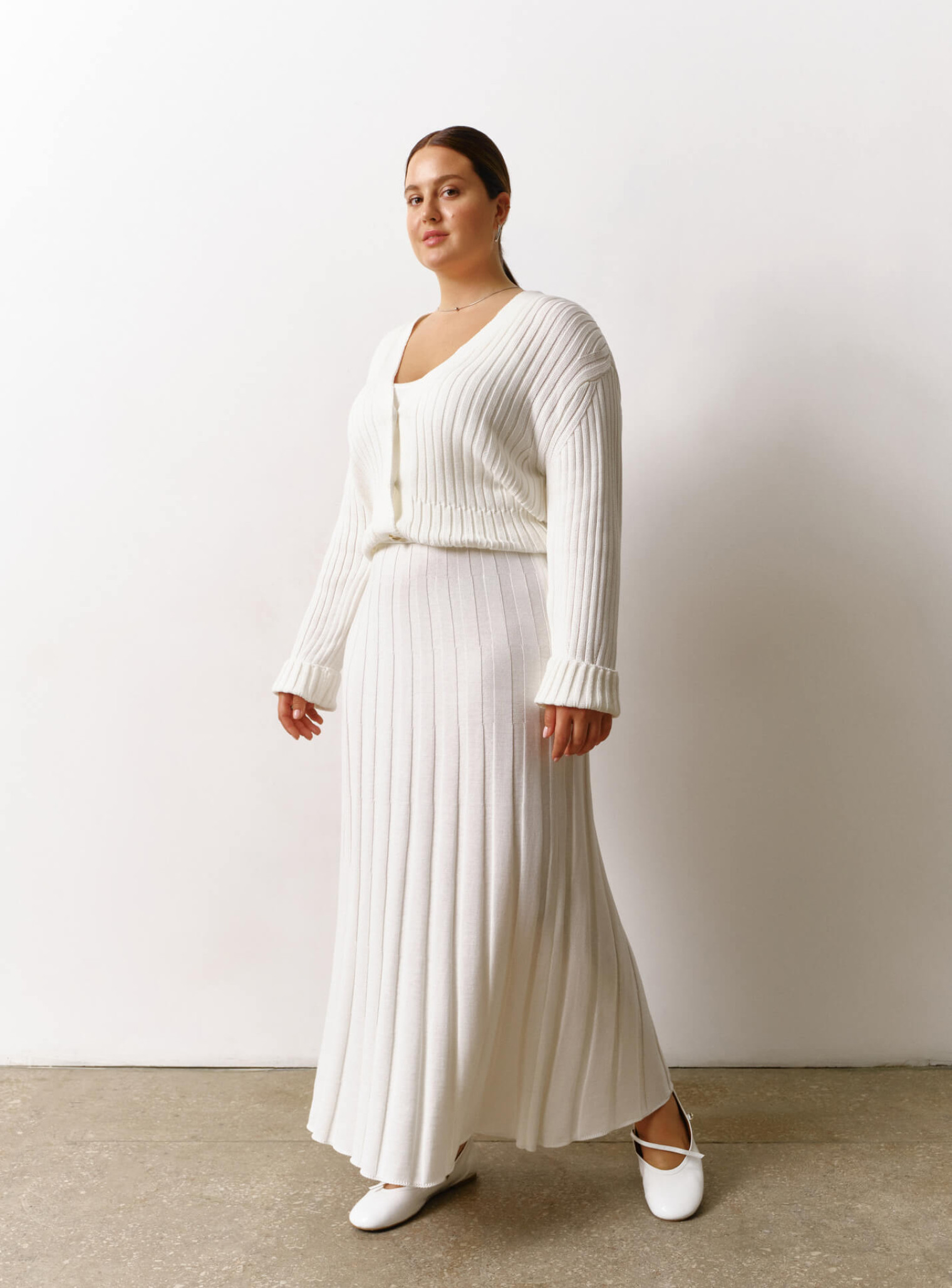 Белый молочный короткий кардиган в резинку