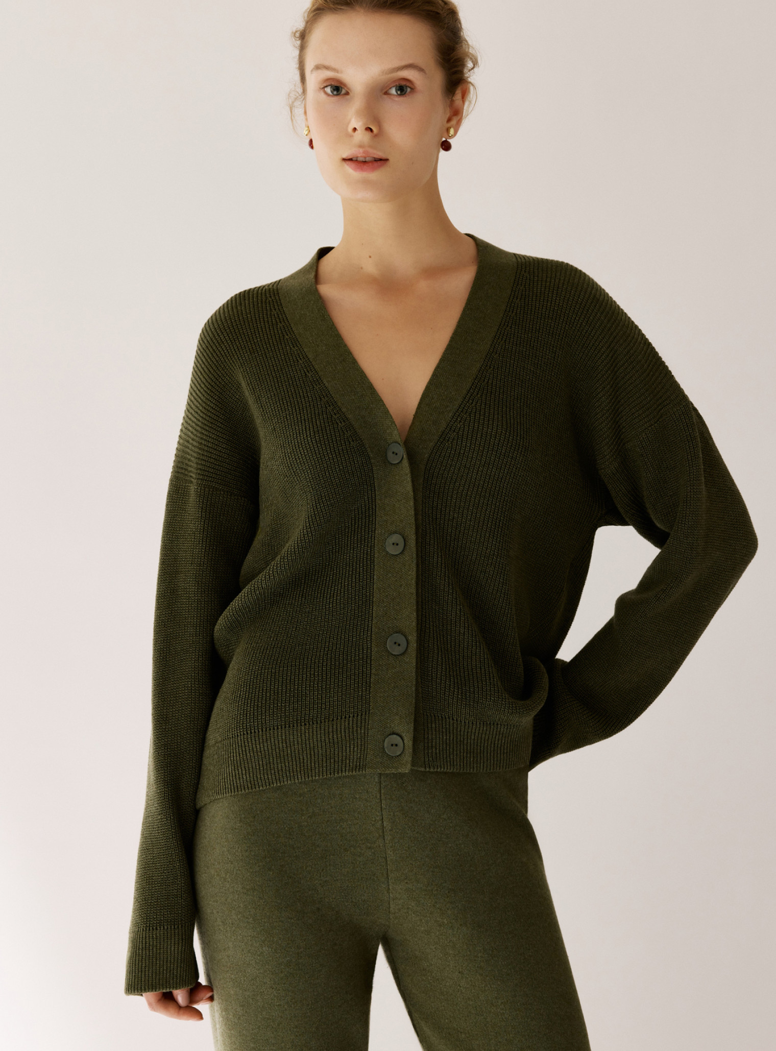 "Лорин" Трикотажный женский кардиган на пуговицах цвета хаки