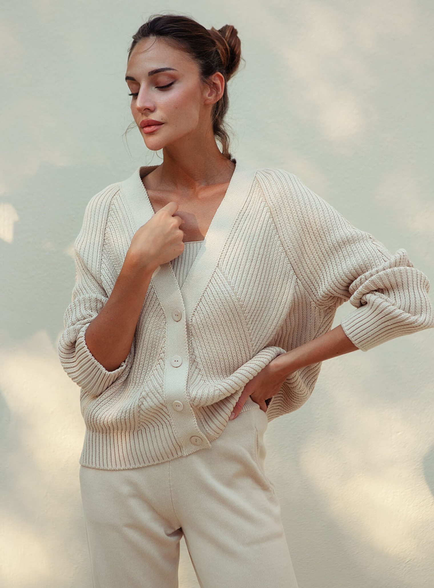 Хлопковый кардиган сделает ваши осенние образы более интересными за счет геометрического орнамента и кроя оверсайз. Идеально сочетается с брендовыми джогерами и юбками.