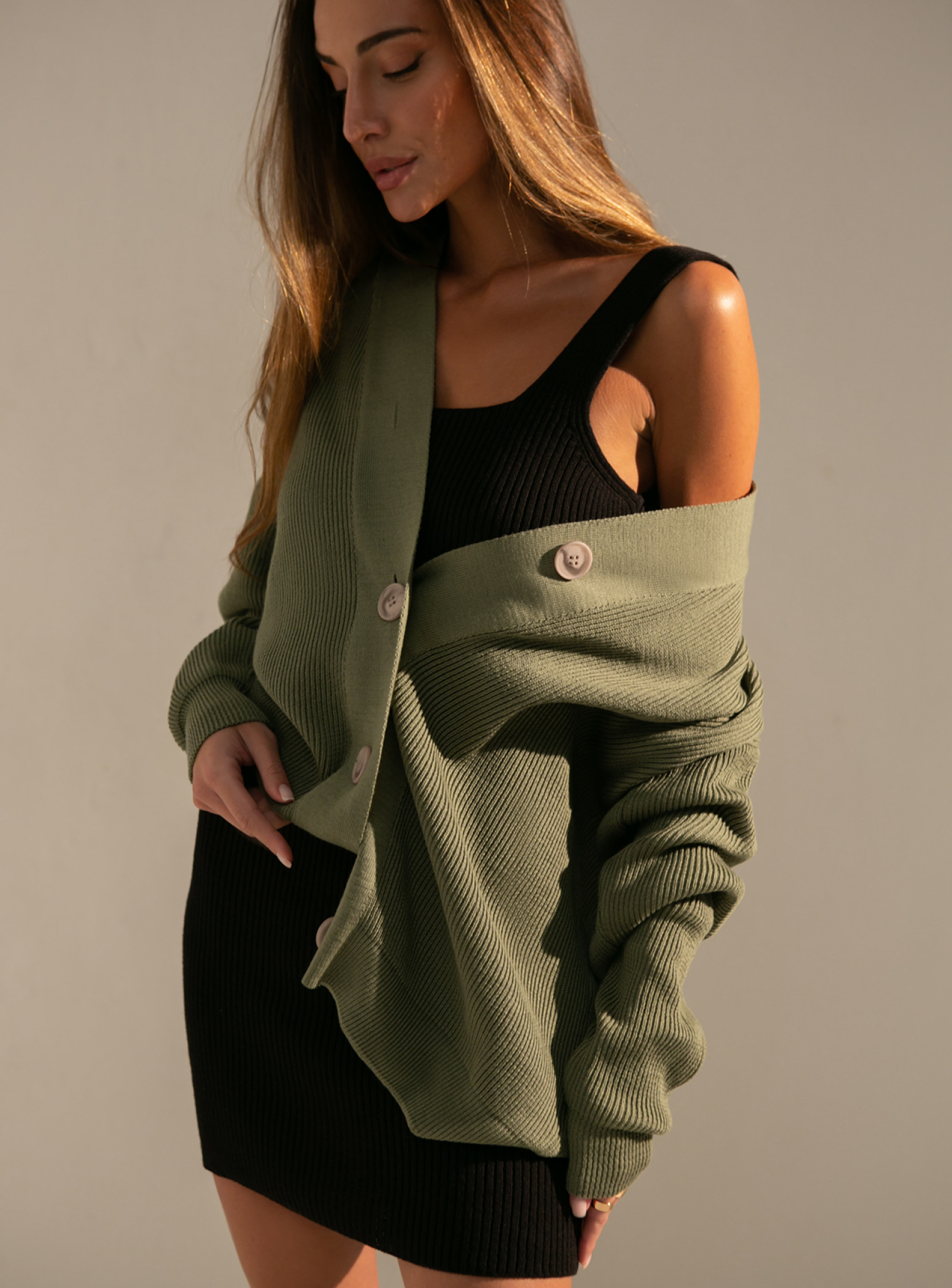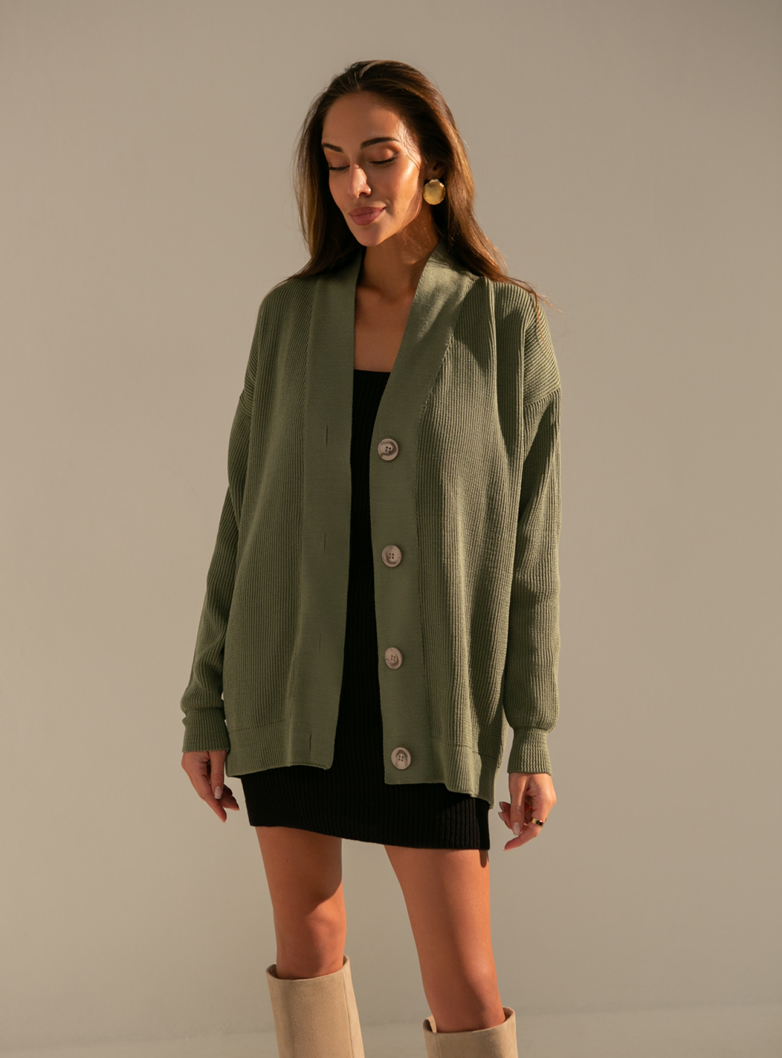 Кардиган oversize  из натуральной хлопковой нити. Идеально сочетается с фирменным топом, брюками клёш и платьем мини.