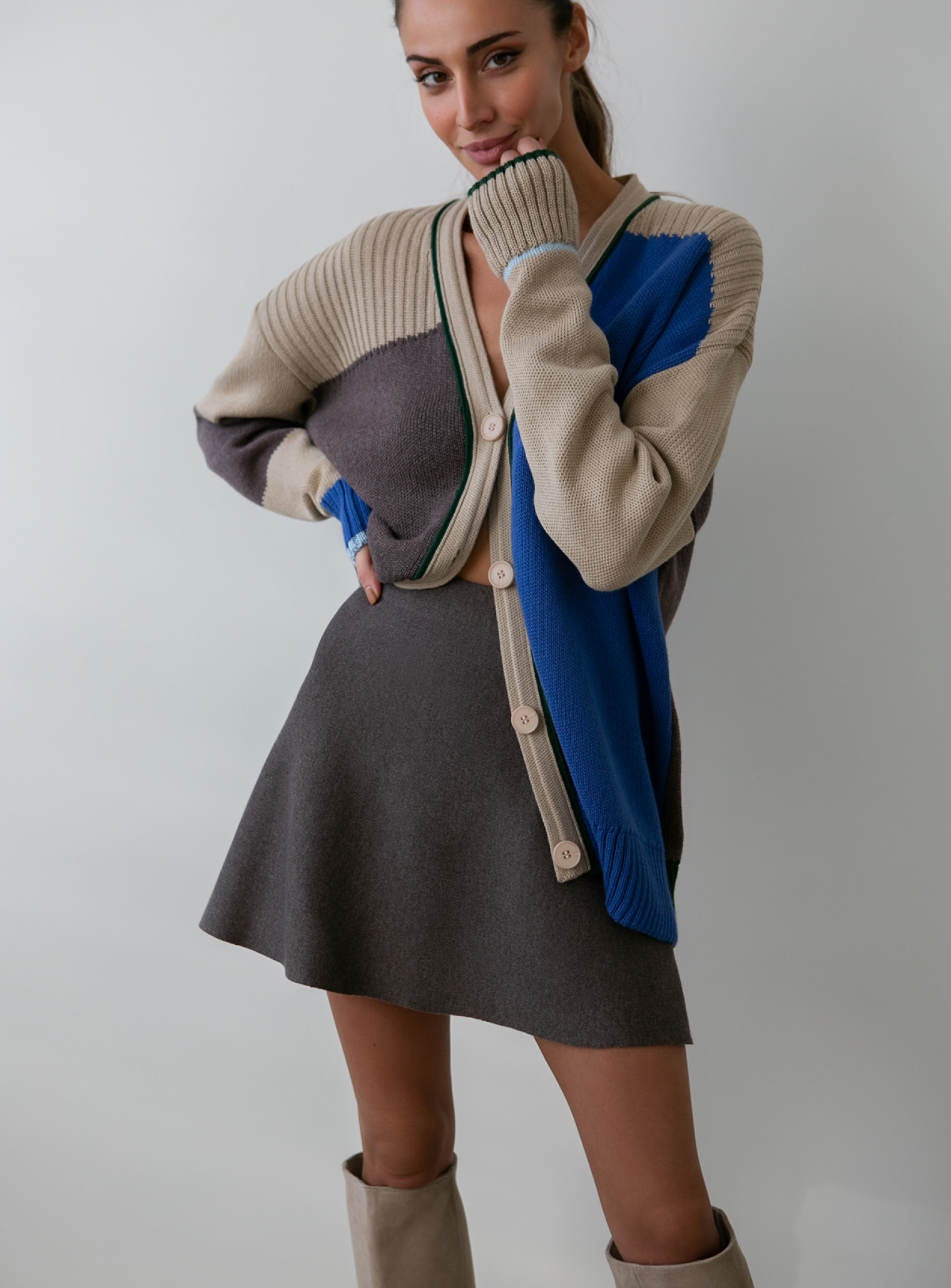 Стильный, нежный и одновременно яркий кардиган в стиле колор-блок. Выполнен из натуральной хлопковой нити.