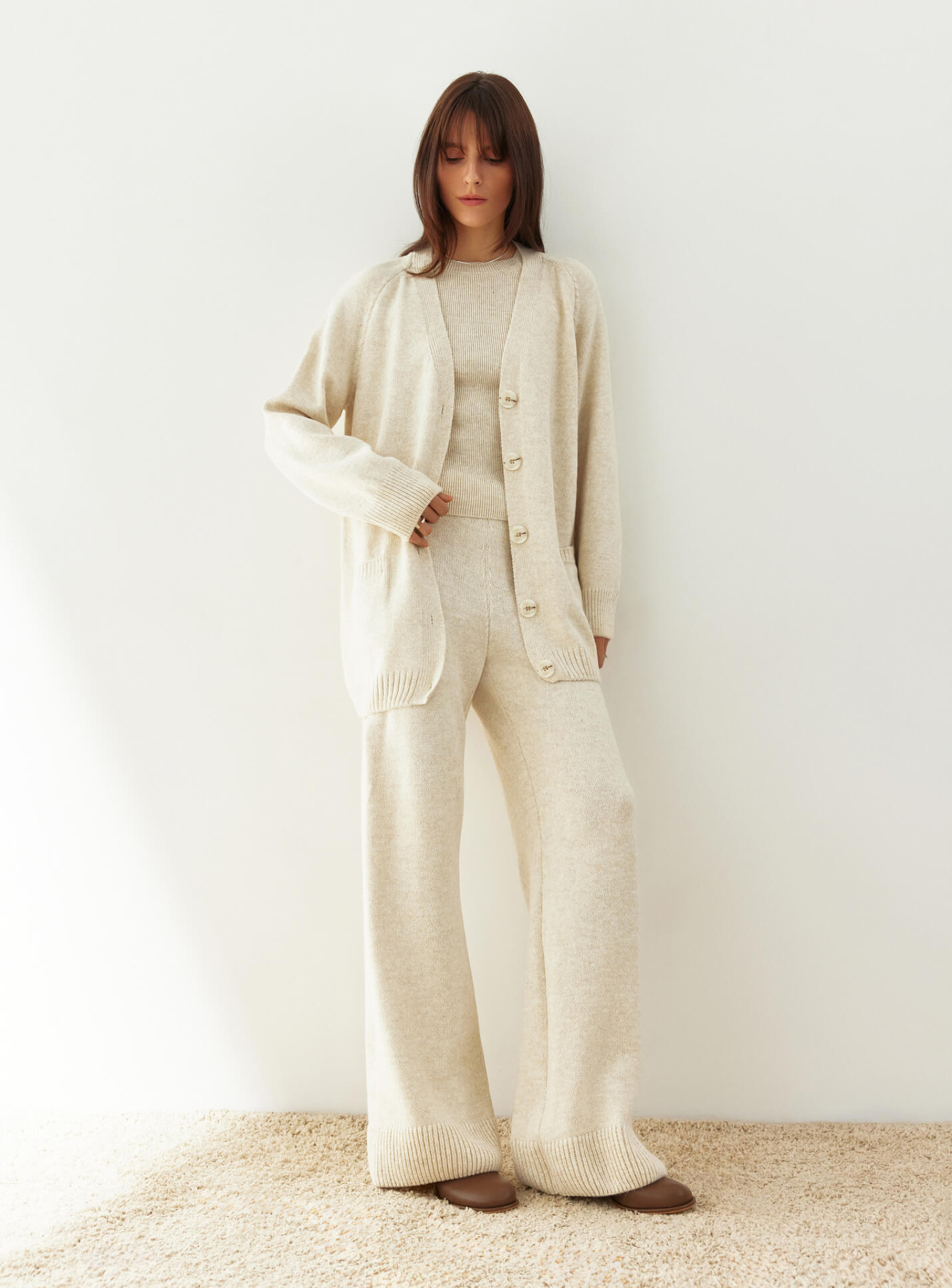 Удлиненный кардиган прямого кроя светло бежевый "Нидея"