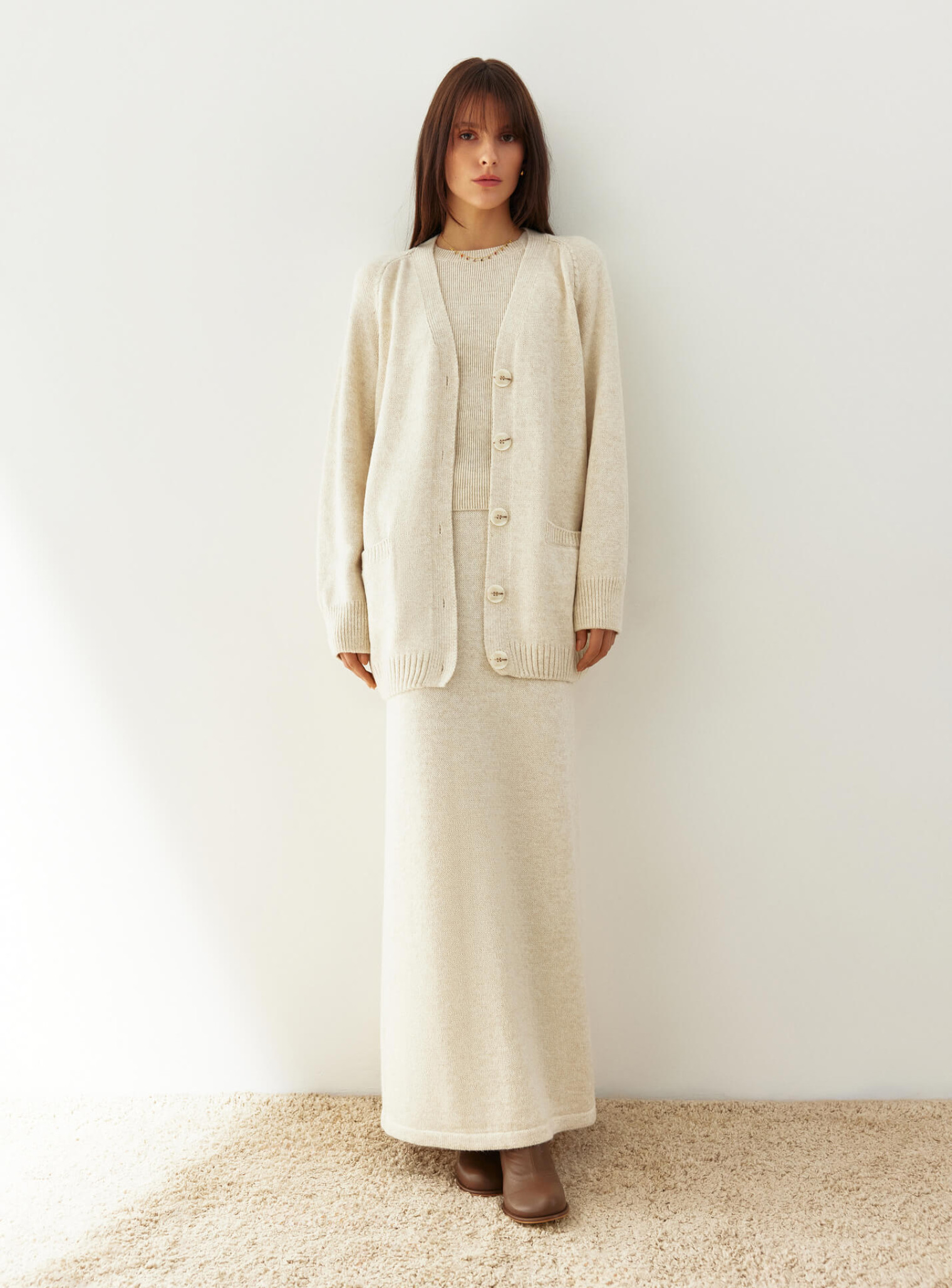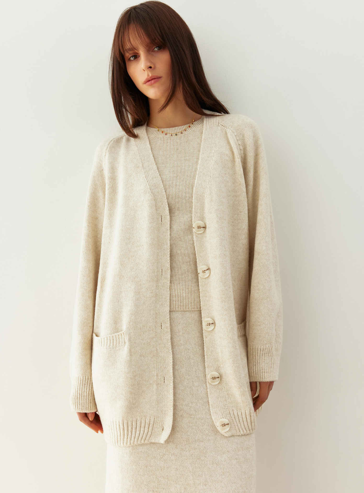 Удлиненный кардиган прямого кроя Нидея светло бежевый