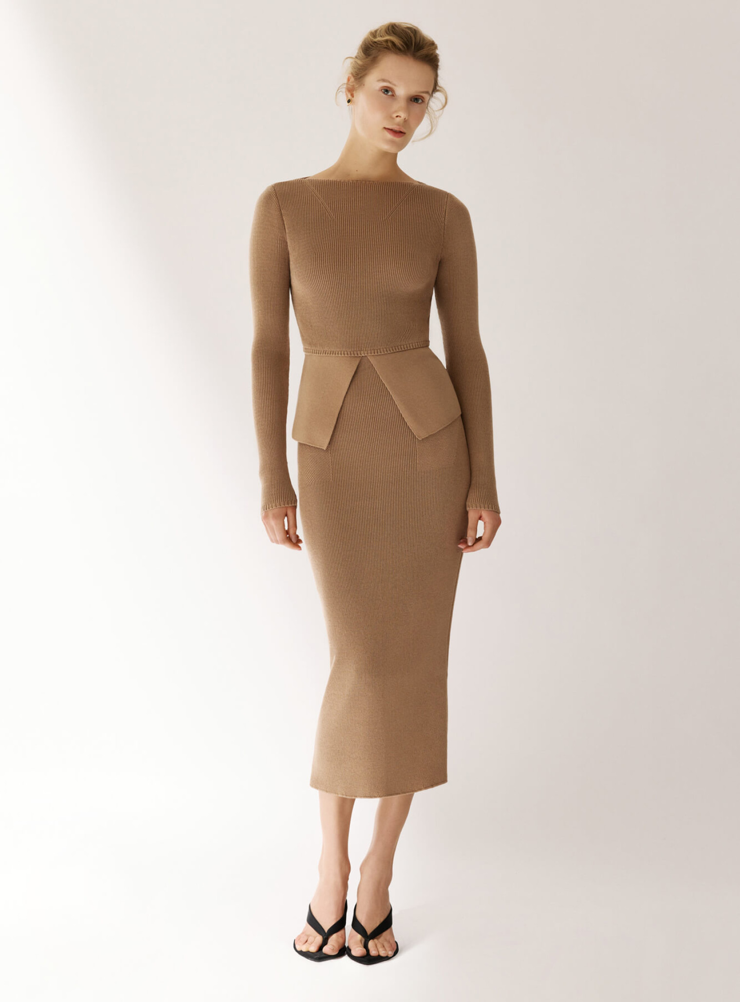 Chovnyk-Leymon – это элегантный комплект, сочетающий утонченность и современные акценты. Джемпер Chovnyk сразу отображает форму выреза, и баской на талии придает образу женственности благодаря плотному плетению и декоративным убавкам. Тоненькая резинка по вырезу и рукавам подчеркивает аккуратность силуэта, а гладкое плетение баски создает визуальный контраст с текстурой джемпера. Юбка Leymon миди длины с имитацией баски дополняет комплект, подчеркивая бедра и придавая образу плавности. Натуральный хлопок обеспечивает комфорт, а цветной отлично подходит осеннему гардеробу. Комплект Лодочка-Leymon идеально подходит для создания стильного и комфортного лука, подчеркивающего вашу индивидуальность.