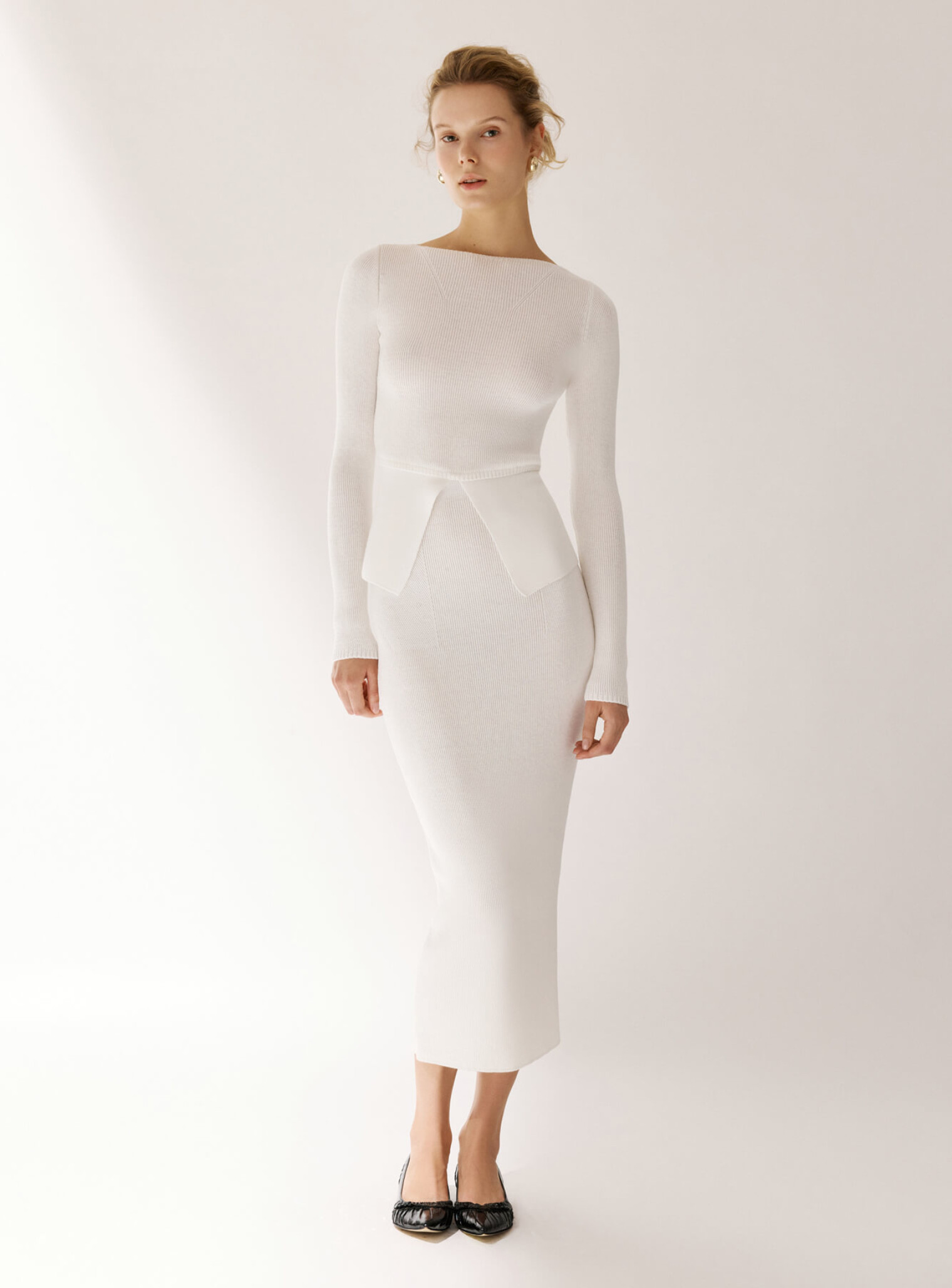 Chovnyk-Leymon Силуэтный джемпер и юбка миди - комплект с имитацией баски молоко