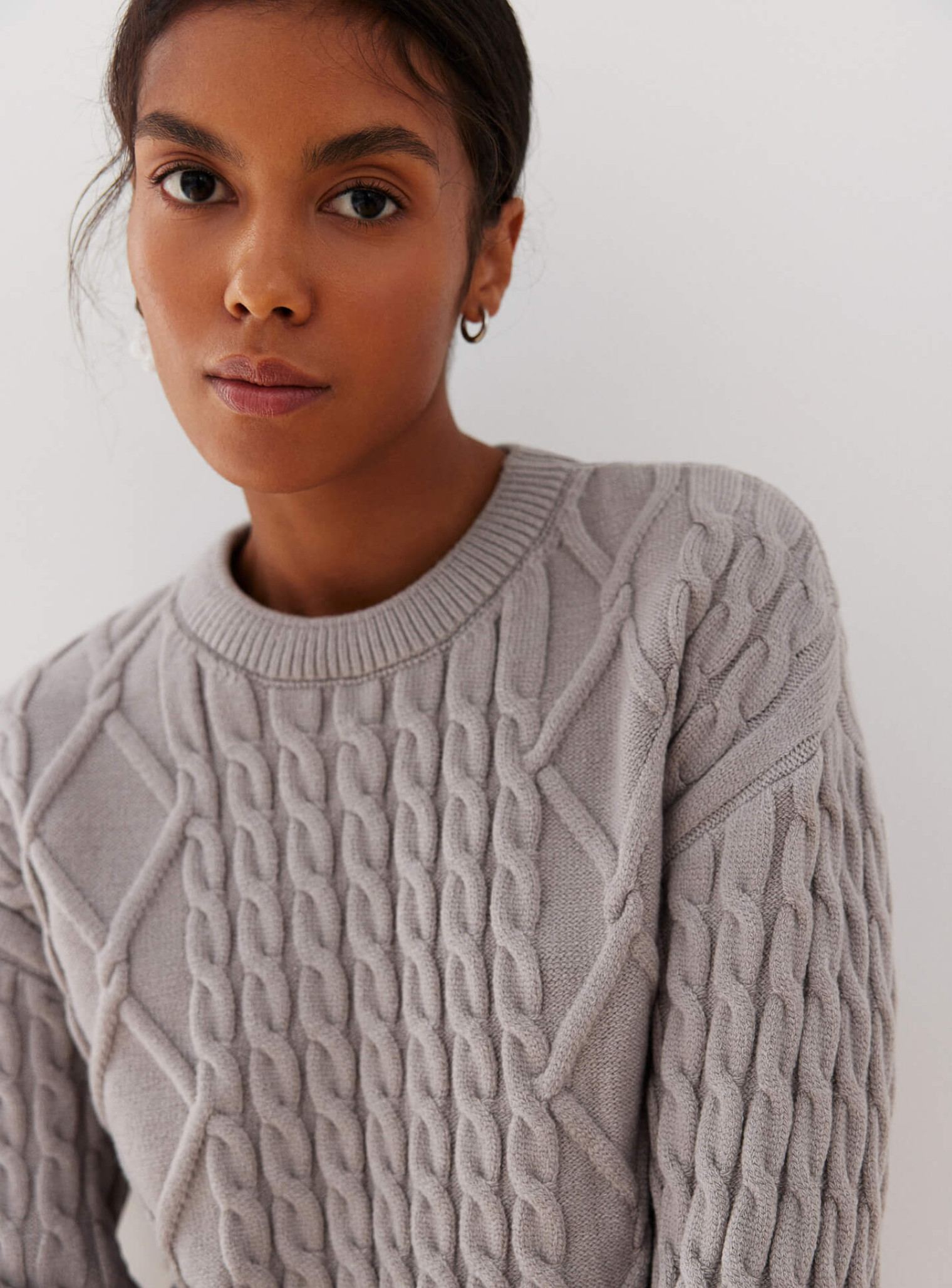 Комплект Фолен состоит из джемпера и юбки. Он выполнен в насыщенном красивом цвете, который не сможет оставить равнодушным. Юбка и джемпер украшены вязаными косами и ромбиками, поэтому изделия выглядят необычно и стильно. Укороченный верх делает талию визуально тоньше и помогает подчеркнуть изгибы фигуры.