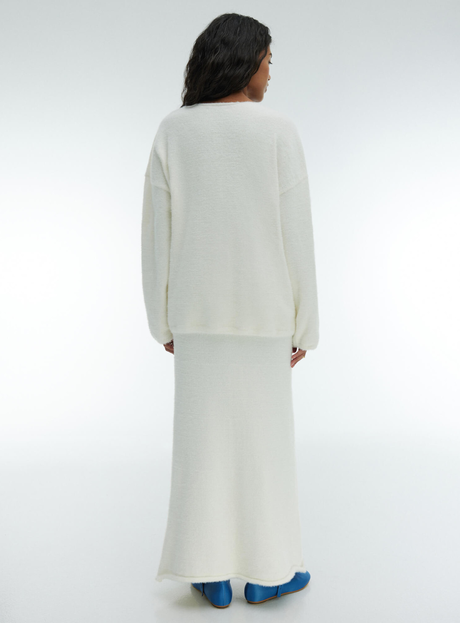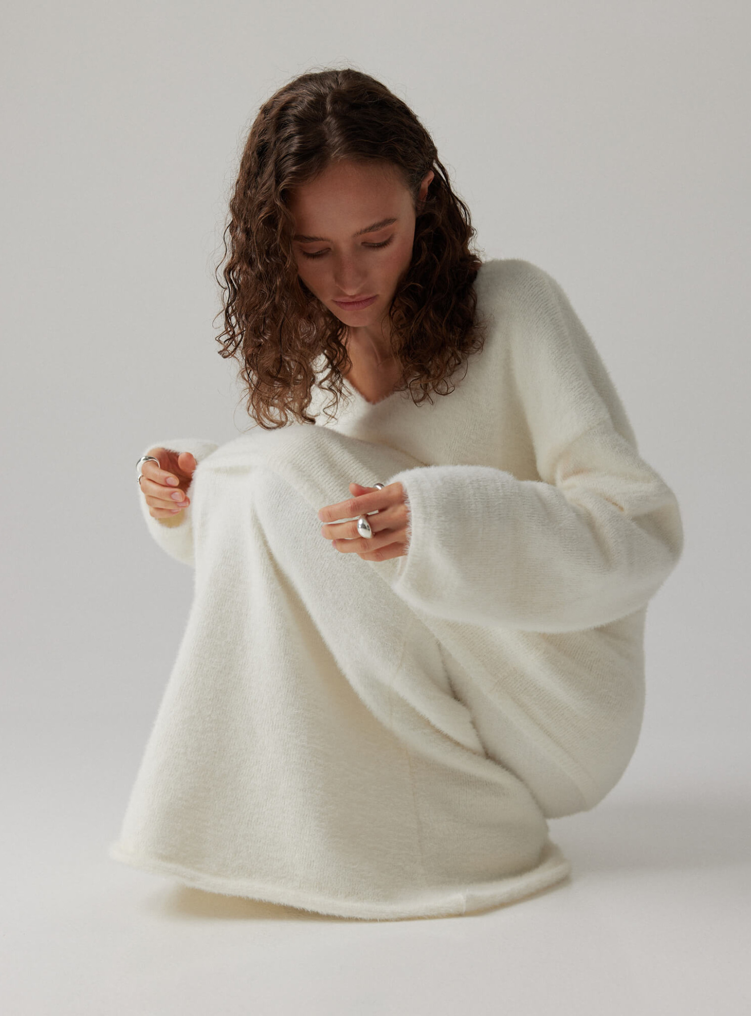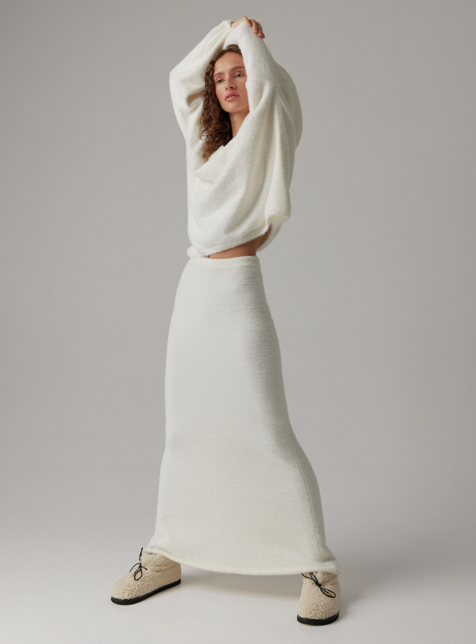 Комплект Синтия в нежной расцветке – идеальный выбор для повседневного гардероба. Костюм выполнен из высококачественной мягкой пушистой пряжи. Юбка макси выгодно подчеркнет вашу фигуру. Джемпер оверсайз позволит создать легкий, свежий и в то же время необычный образ. В этом элегантном костюме вы будете чувствовать себя уверенно и комфортно в течение всего дня. Подобрать аксессуар к образу не составит труда, потому что в изначально удачный лук идеально впишется практически все.