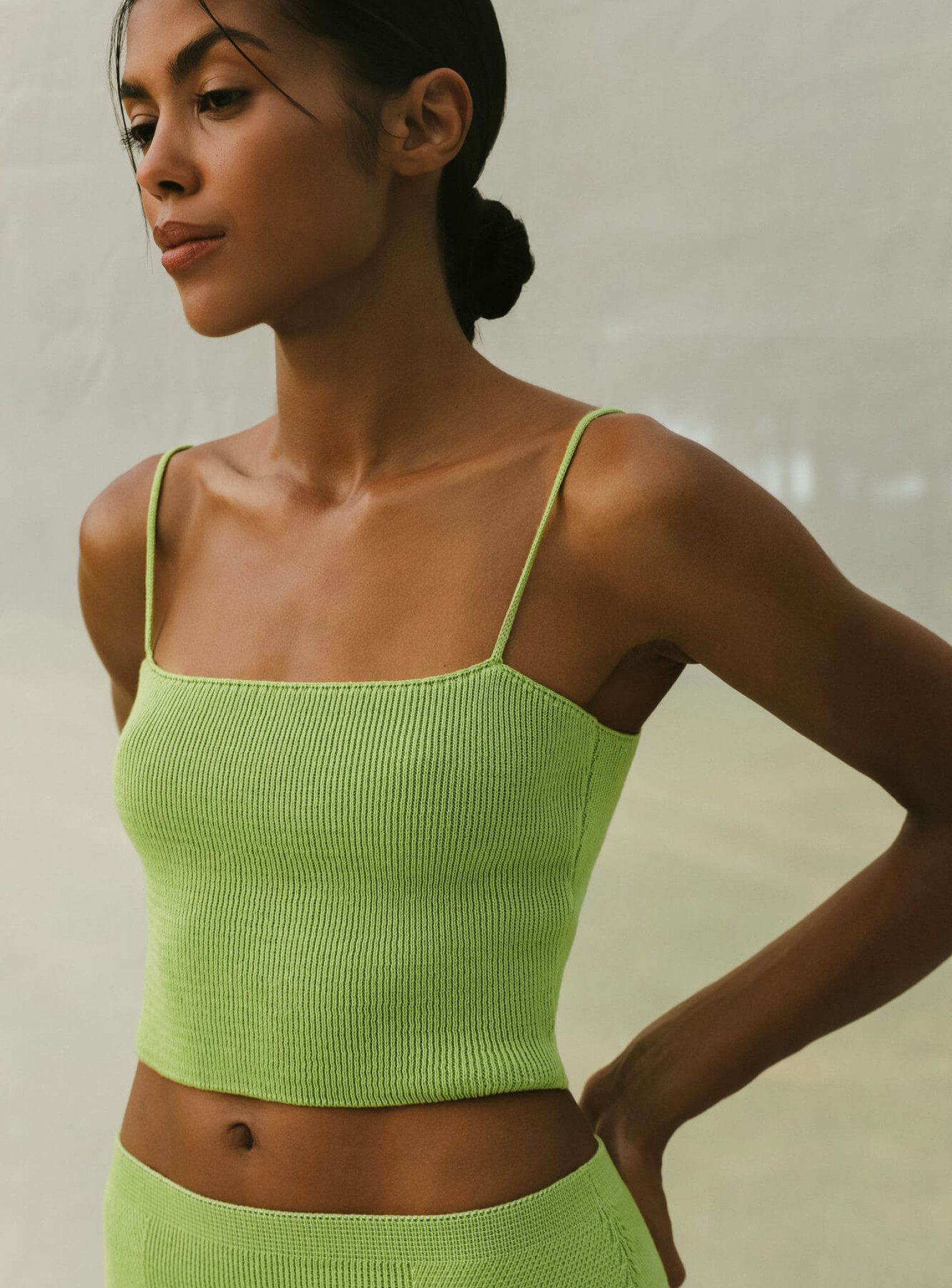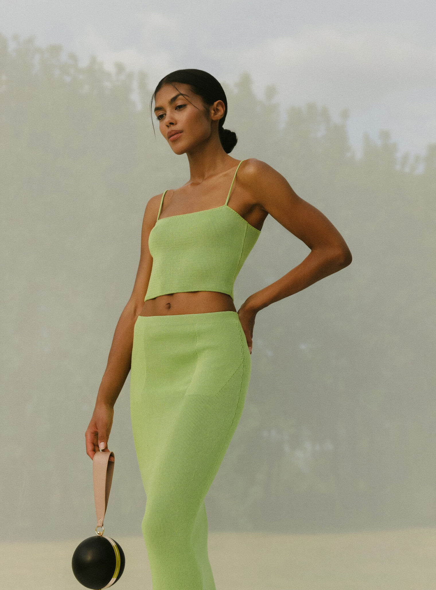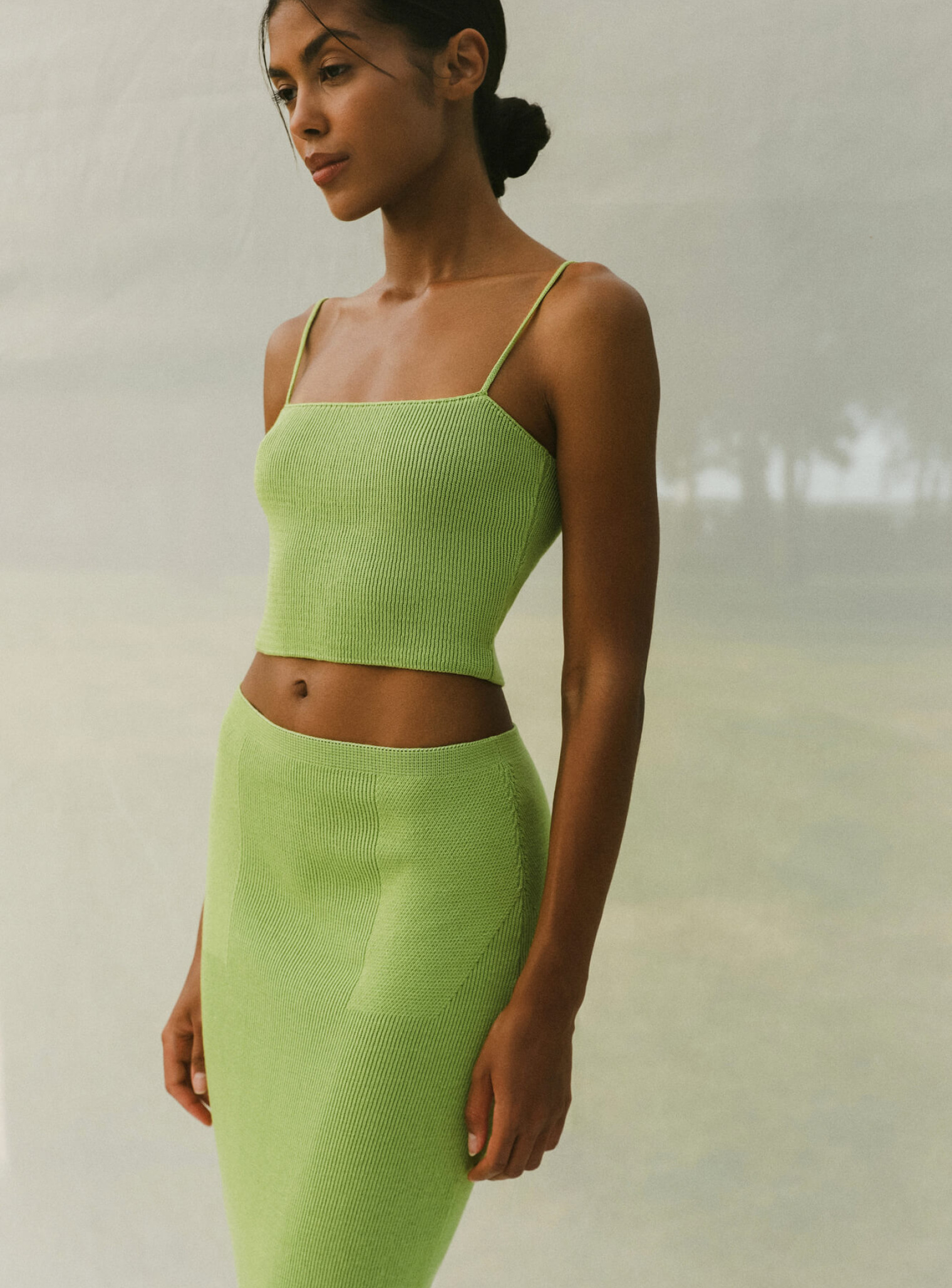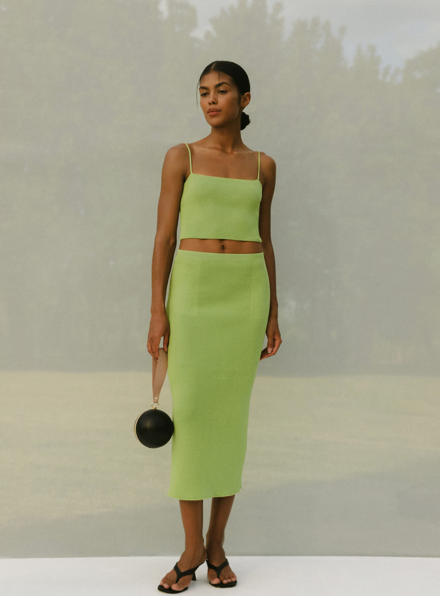 Базовый комплект из топа бандо на тонких бретелях и юбки с рисунком имитацией баски выполнен из фактурной вязки, хорошо тянущейся и облегающей силуэт, подчеркивая линии фигуры. Стильный образ, который освежит ваш летний гардероб благодаря яркой цветовой гамме. Идеальная формула комплекта для повседневной жизни, которую вы можете носить вместе и отдельно, сочетая с любимыми изделиями.