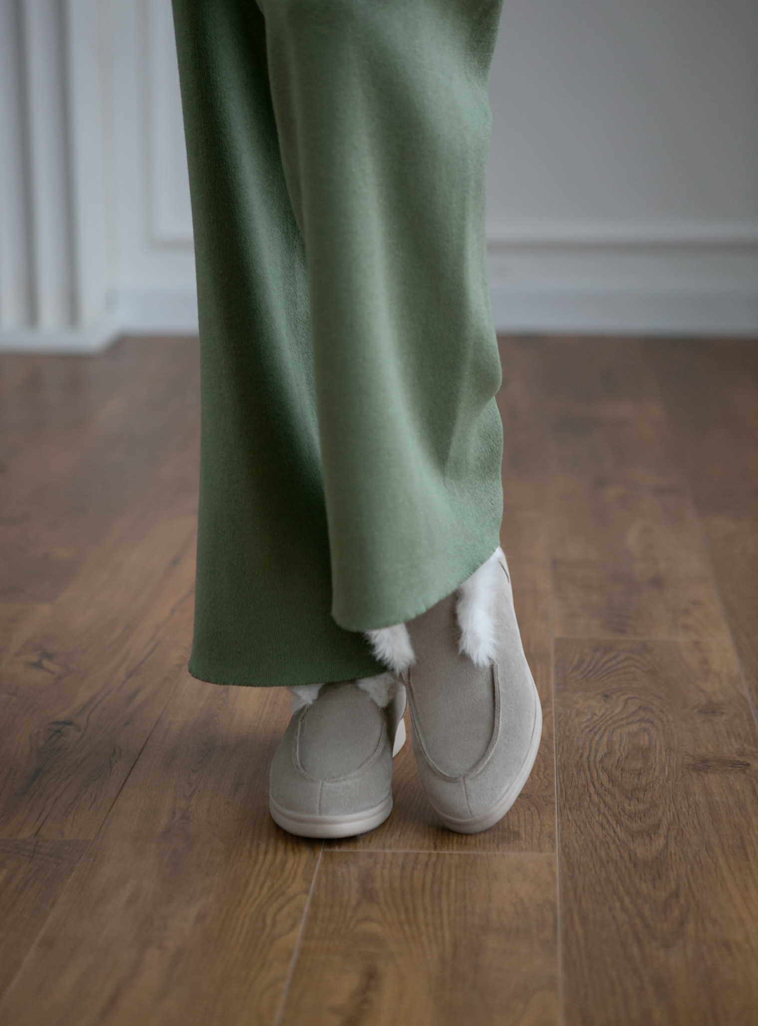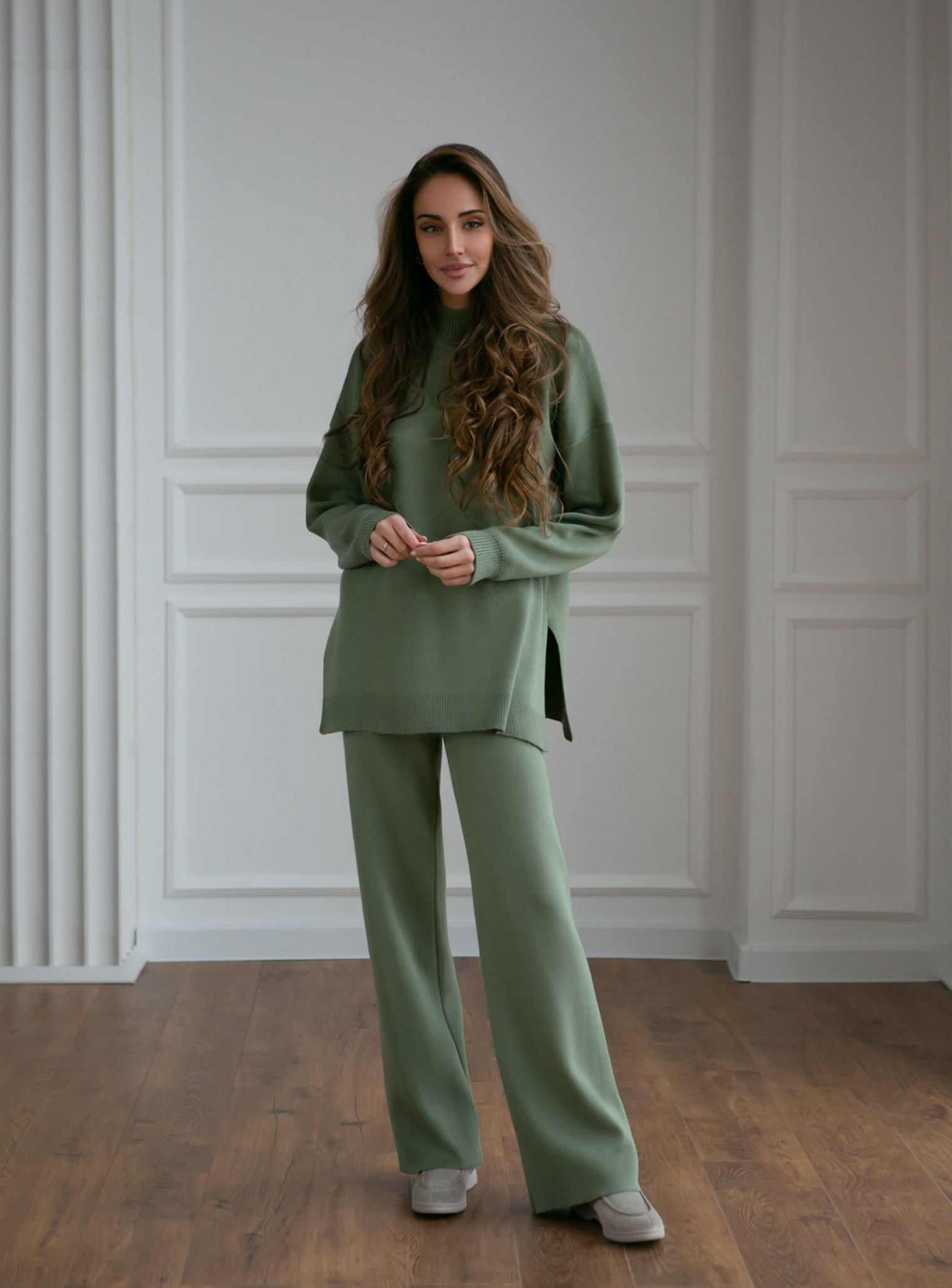 Костюм свитер прямого кроя с брюками прямыми из плотного джерси олива