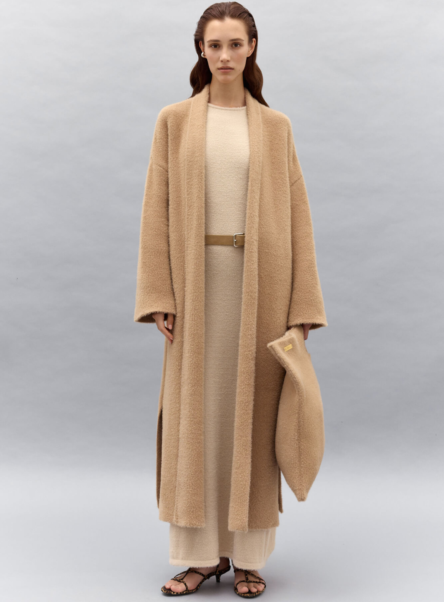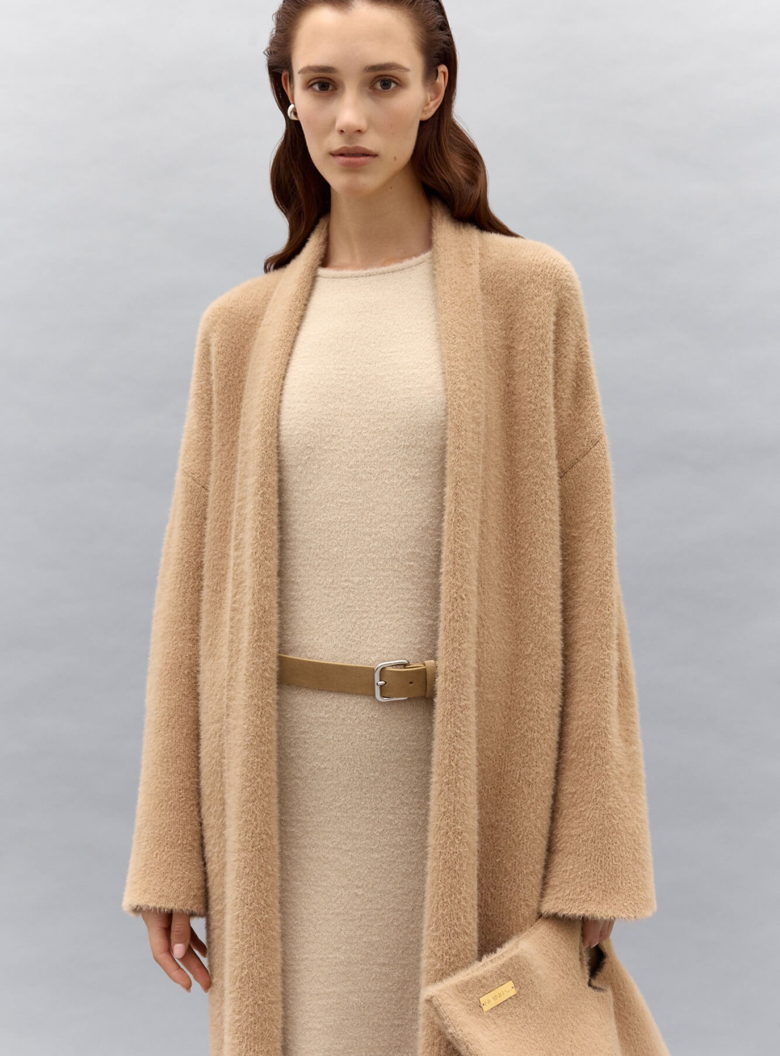 Удлиненный кардиган 115 и 122 см длинны. Выполнен из мягкой пушистой пряжи. Кардиган идеально подойдет на прохладную погоду. Комбинируется с фирменными костюмами "25 Union".