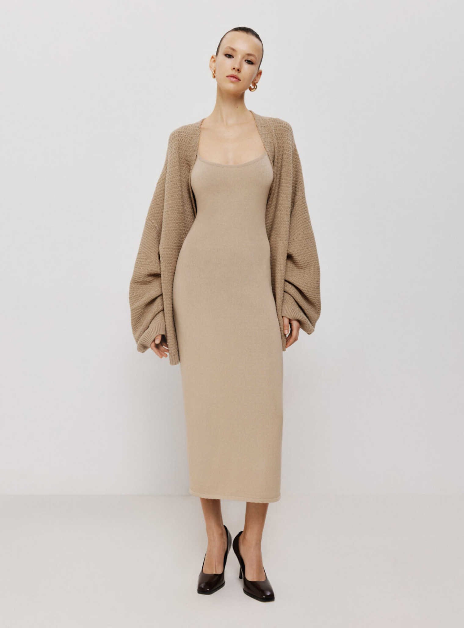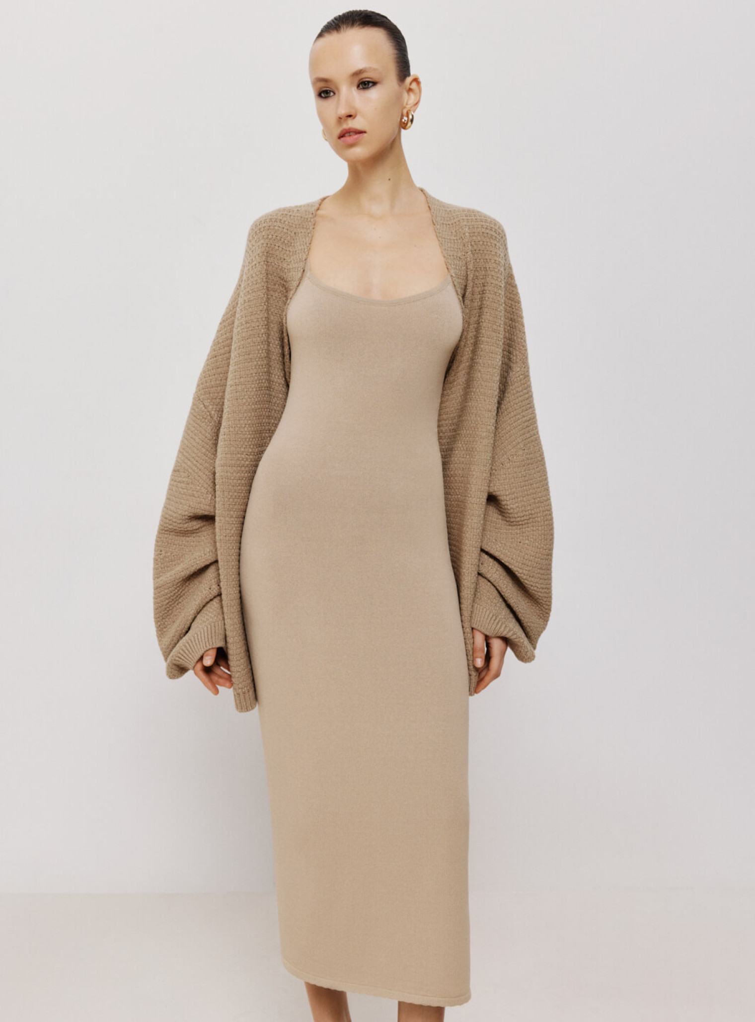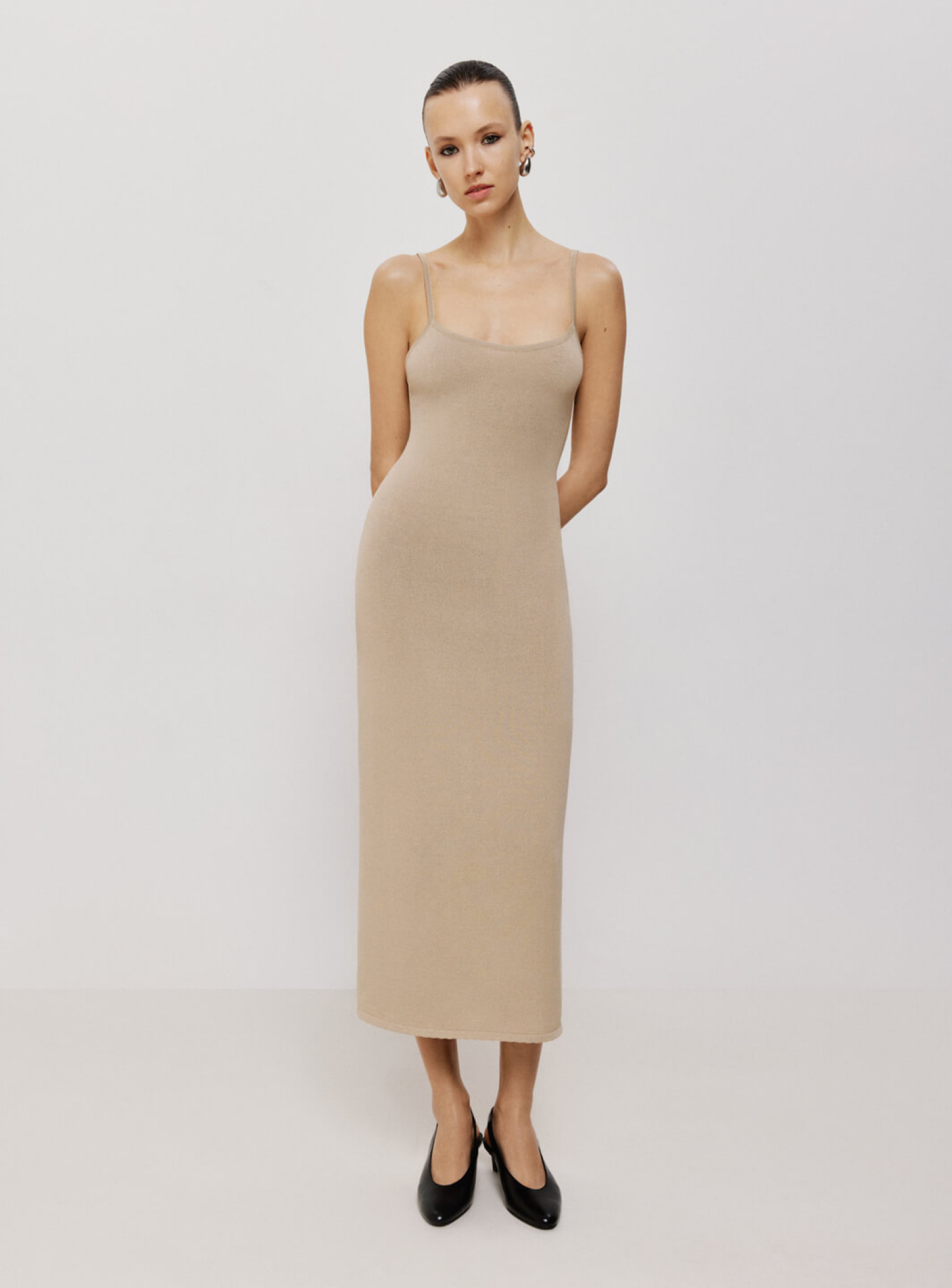 Повседневное платье без рукавов из коллекции бренда 25 Union – это удивительное сочетание простоты и утонченного стиля. При его пошиве использовался качественный трикотаж. Платье на бретельках приятно облегает тело, но не сковывает движения и позволяет коже дышать. В нем будет комфортно даже в самый жаркий день. Бежевый оттенок тут работает как спокойная нейтральная база: он не перетягивает внимание на себя, но делает образ цельным и аккуратным.