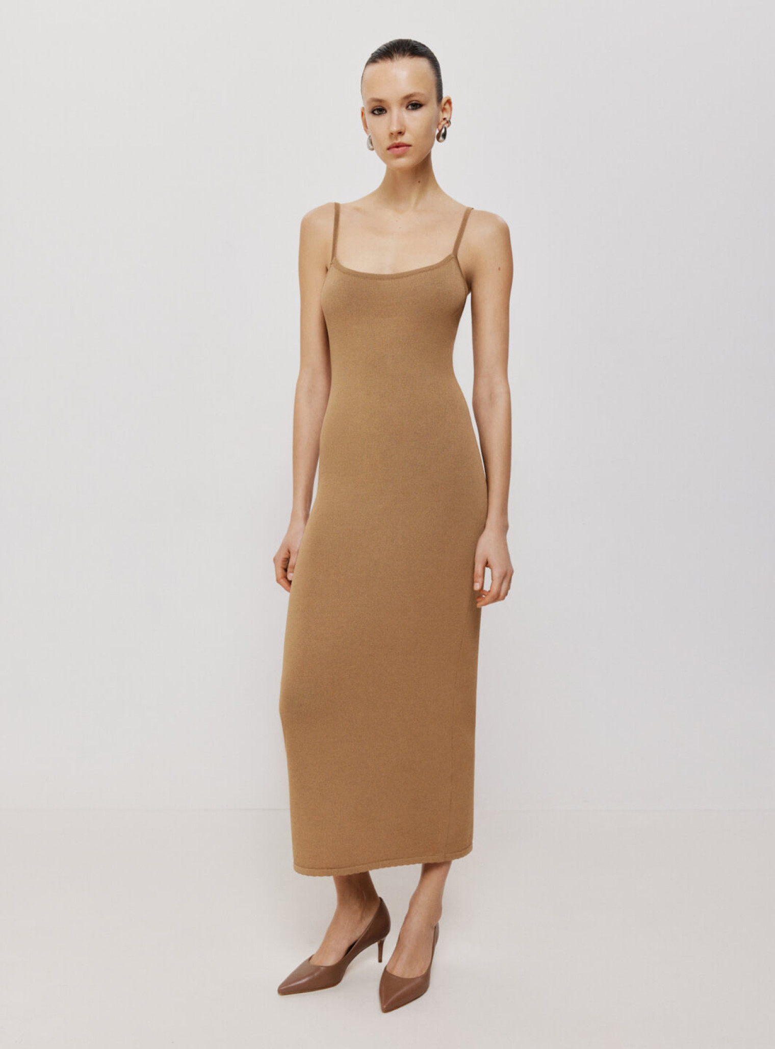 Платье из вискозы на тонких бретелях Соло карамель