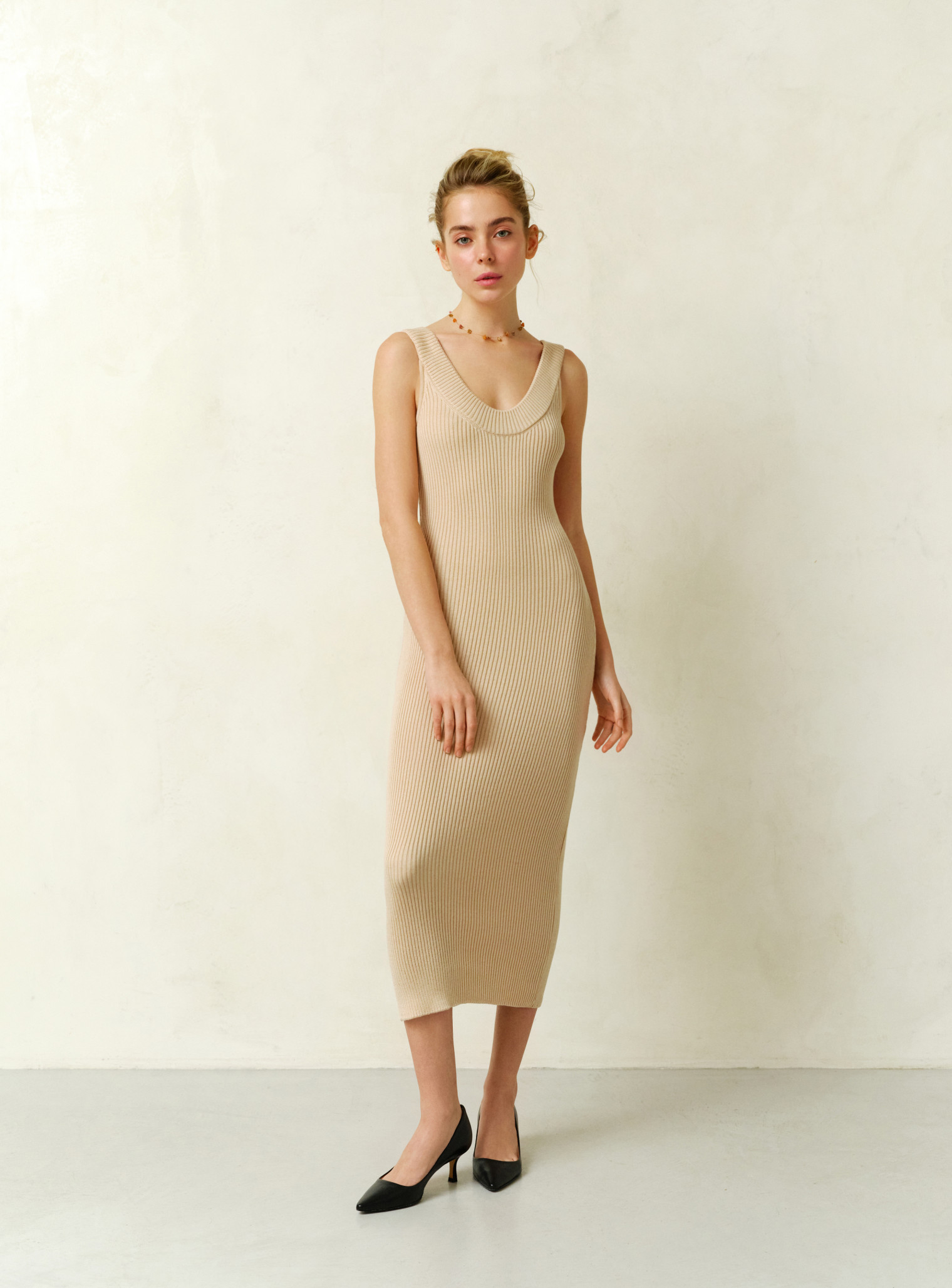 Нежное платье в рубчике, плавными линиями и круглым вырезом подчеркивает женственность. Базовая модель, которую можно стилизовать в повседневные образы, или дополнить аксессуарами и одевать для особых событий.