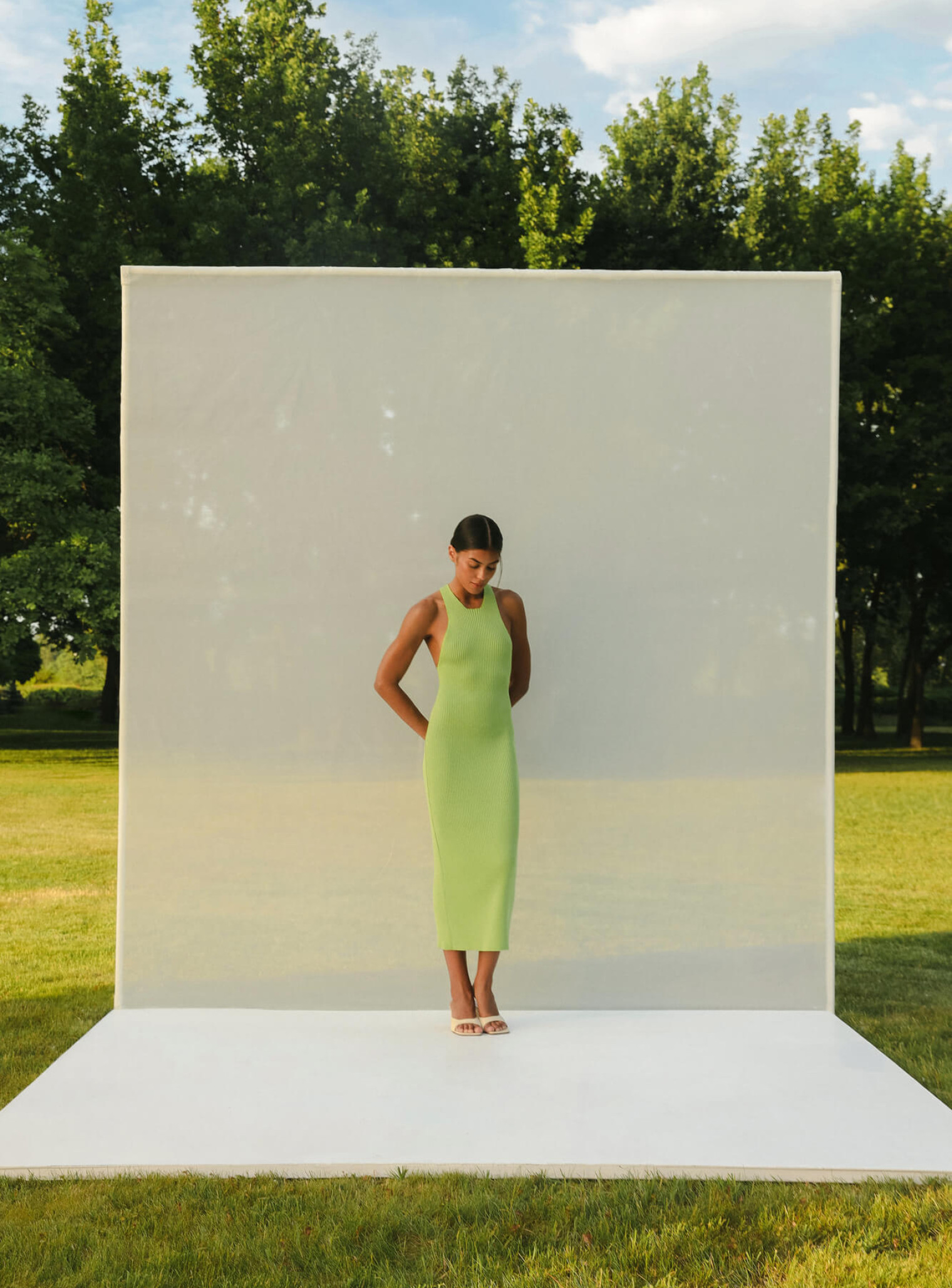 Платье миди с эффектными бретелями, проходящими по центру спины, обнажая плечи. Выполнено из фактурной вязки в хорошо тянущуюся резинку, которая облегает силуэт, подчеркивая линии фигуры. Натуральный хлопок подарит легкость и комфорт в жаркие дни и дополнит гардероб яркими цветами.