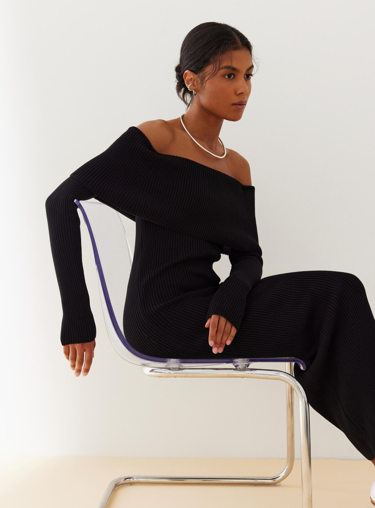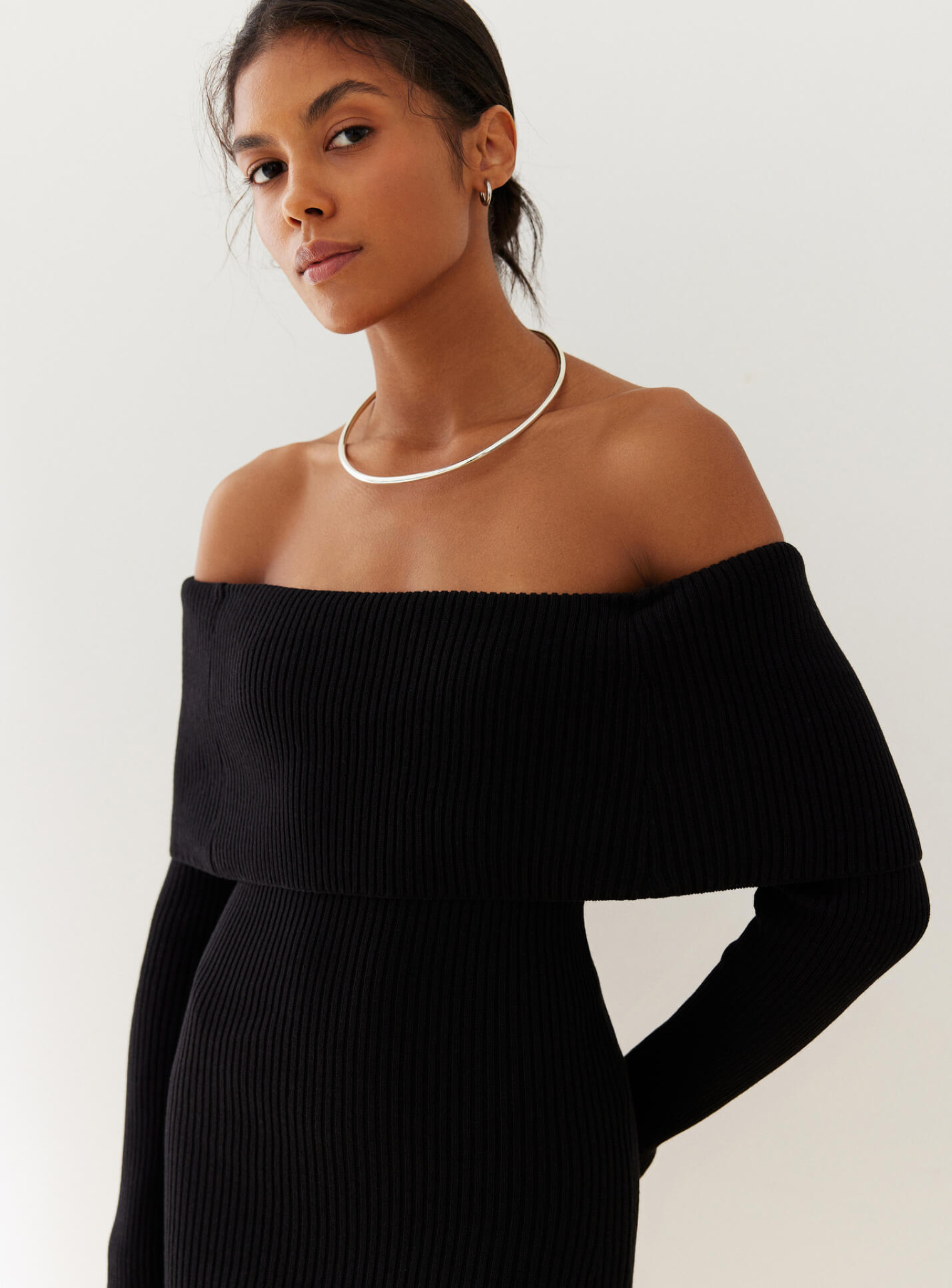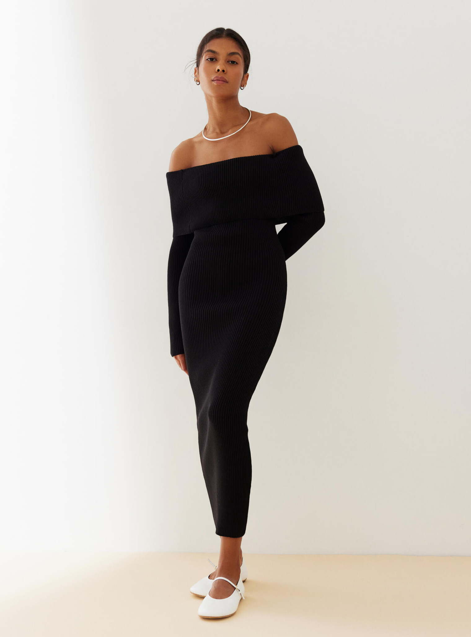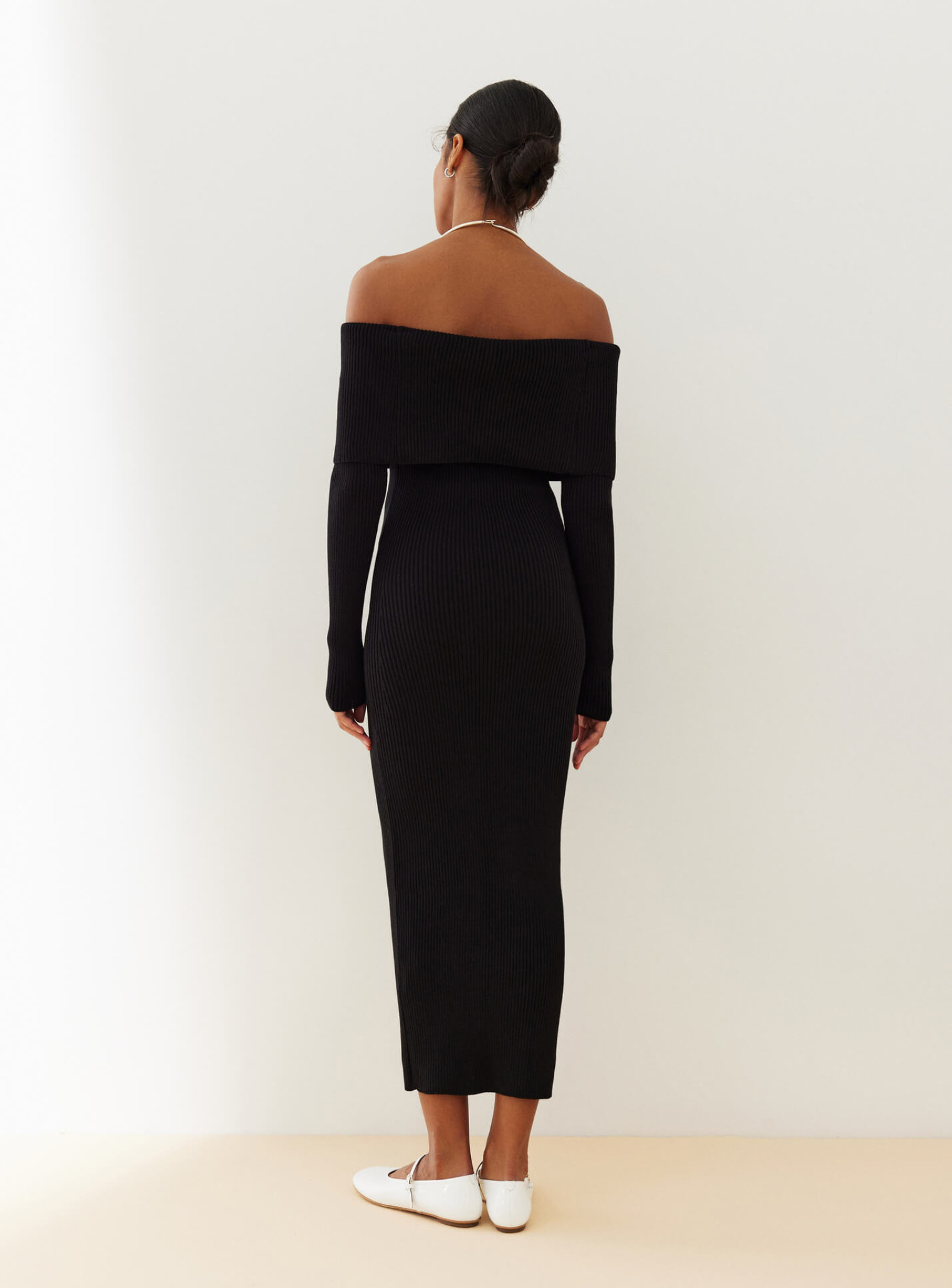 Модель отлично сочетается с высокими сапогами или ботильонами в прохладное время года, а летом ее можно носить с босоножками или минималистичными мюлями. Для более сдержанного образа подойдет объемный жакет, тренч или кардиган, а если хочется акцента – кожаная куртка или укороченный пиджак. Платье длинное с длинным рукавом легко дополнить аккуратной сумкой и лаконичными украшениями, делая ставку на чистые линии и минимализм.