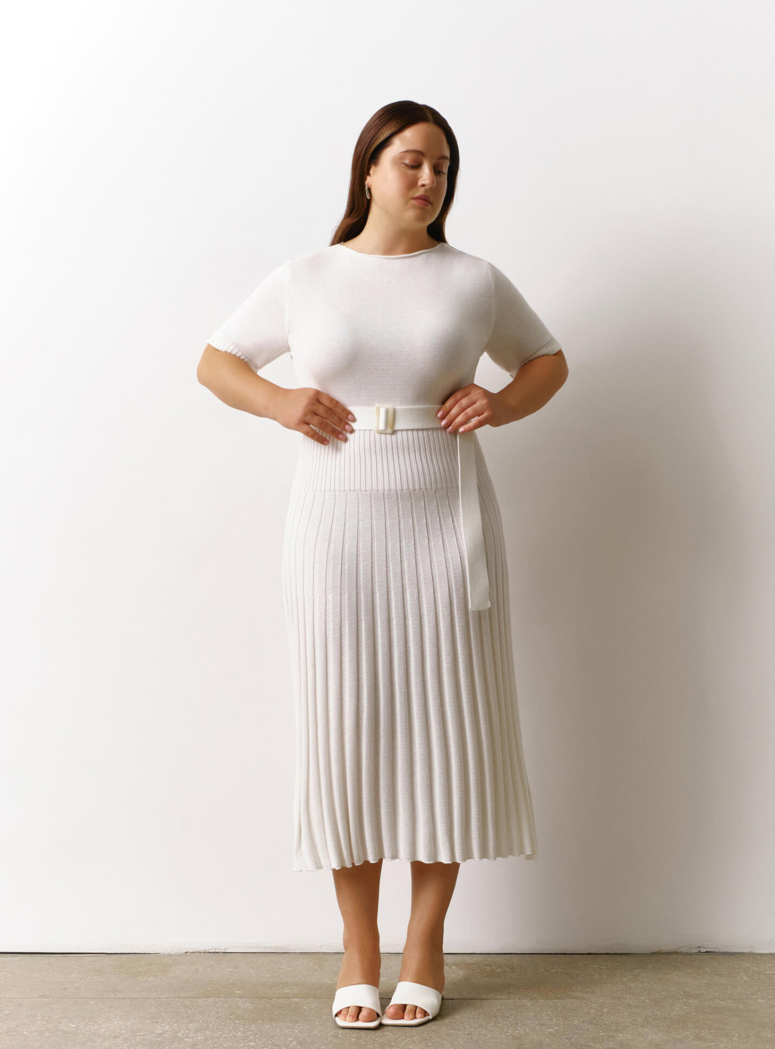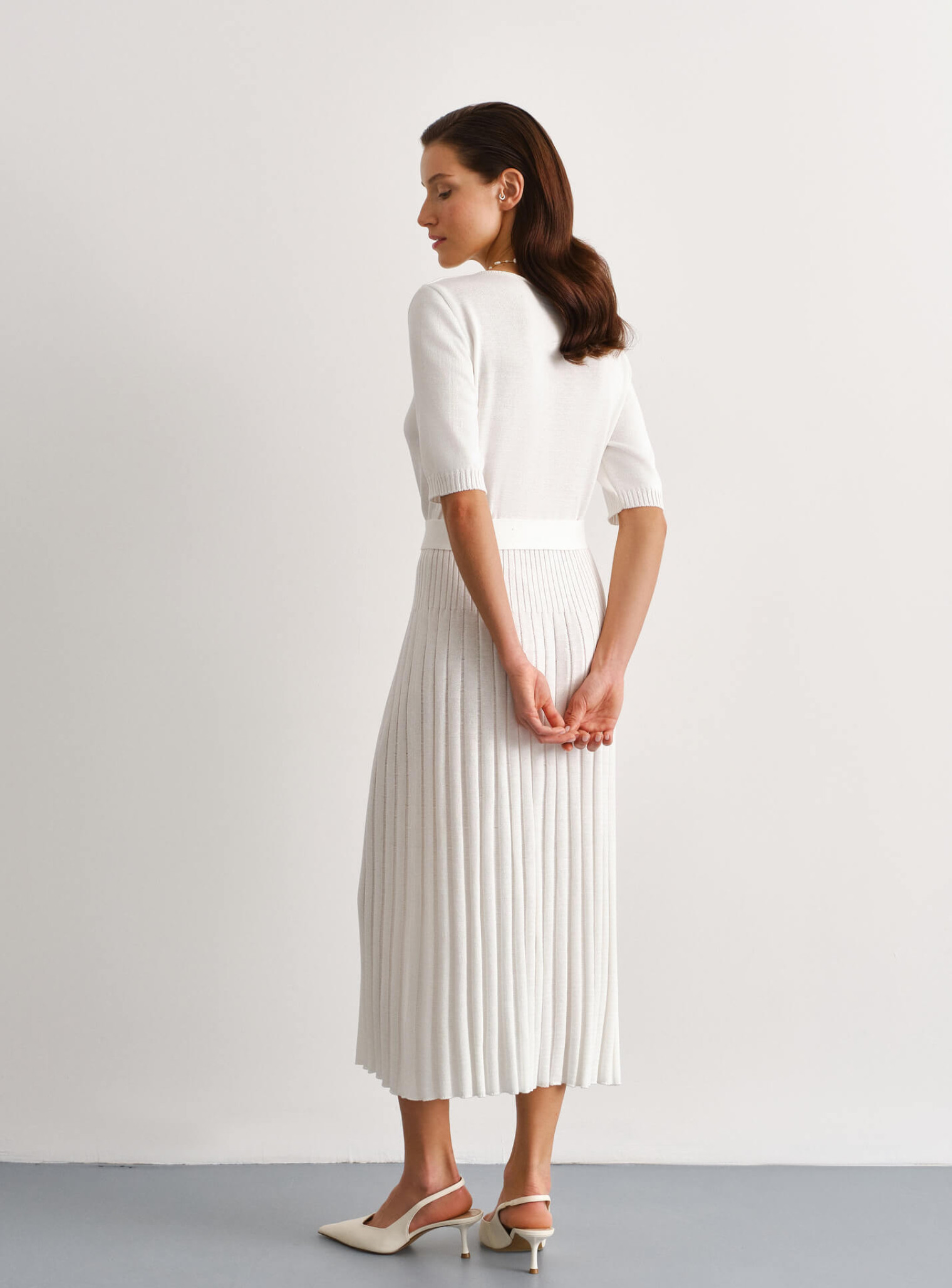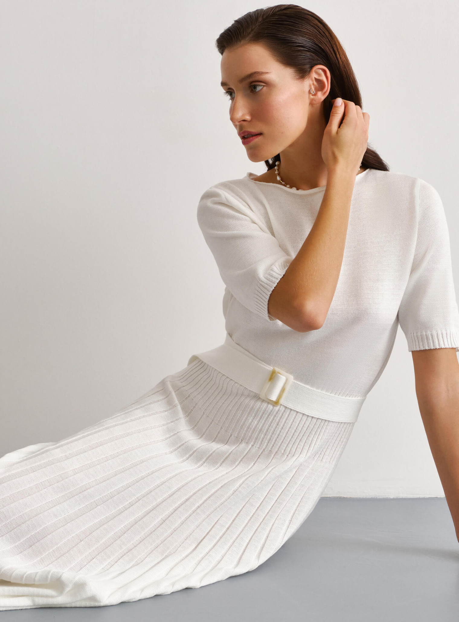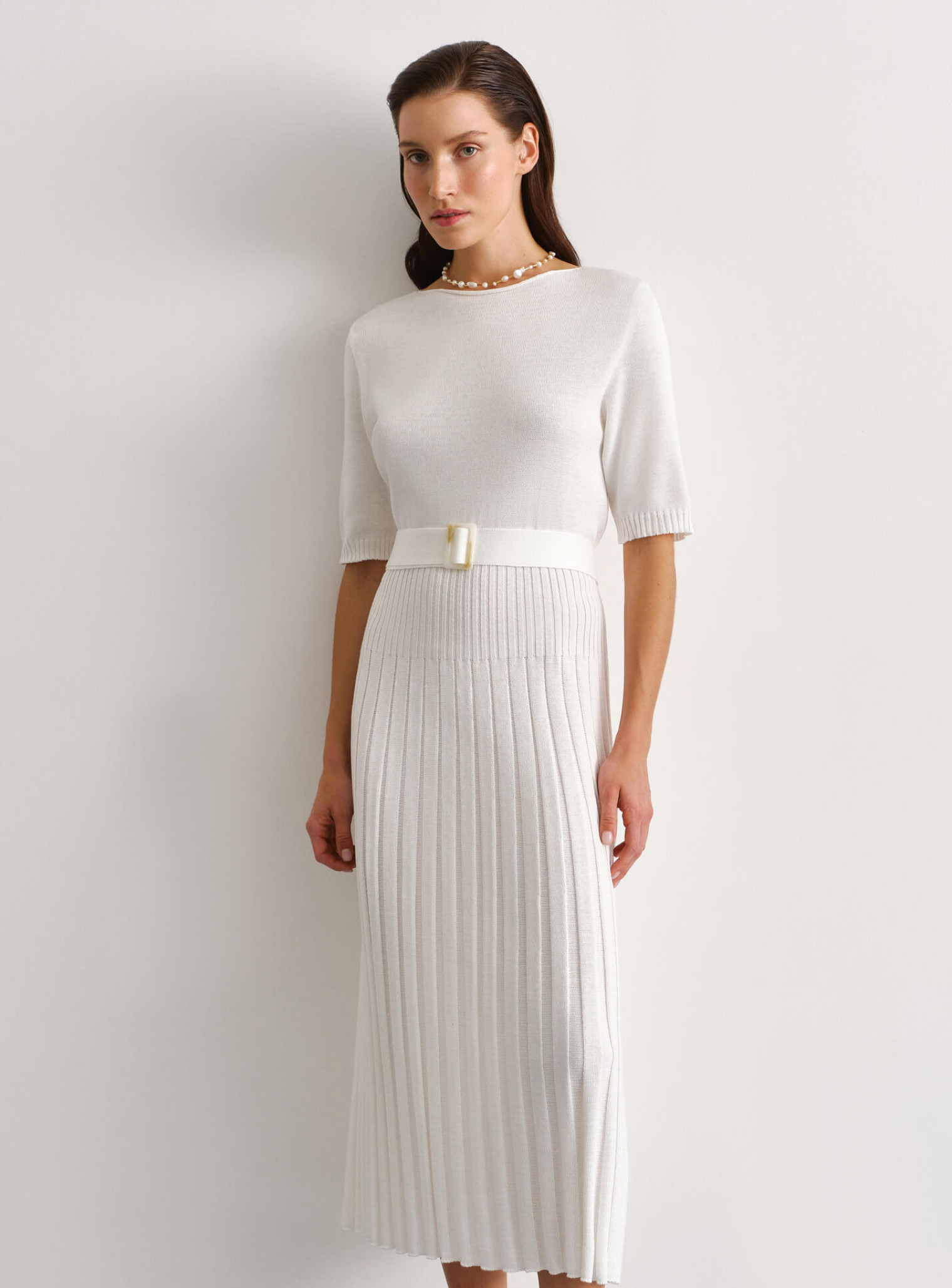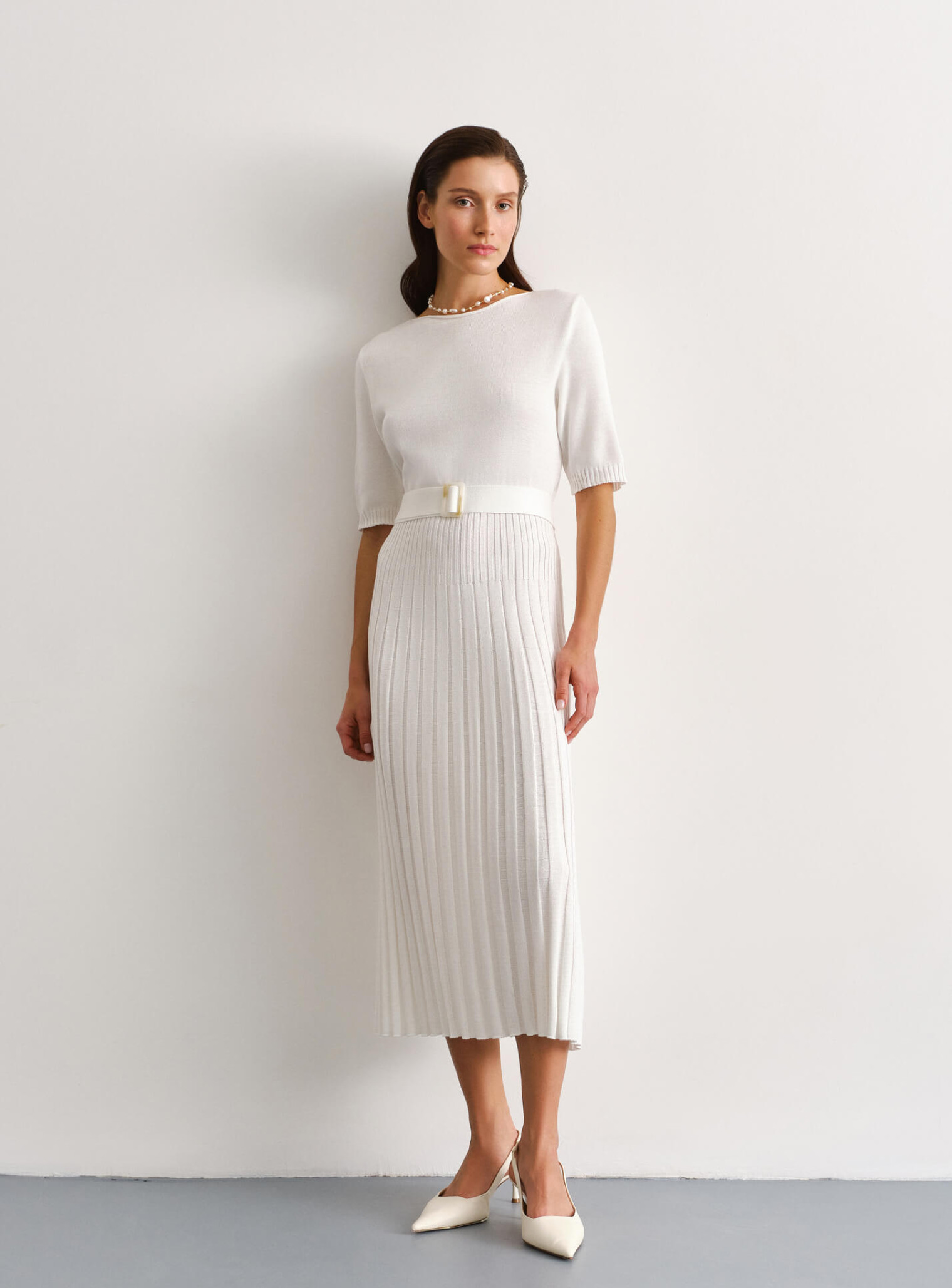 В новой коллекции весна-лето, мы разработали для Вас невероятно нежное платье в длине миди с юбкой гофре. Выполнено из  легкой ткани натурального хлопка. Платье комбинируется с фирменной обувью "25 Union".