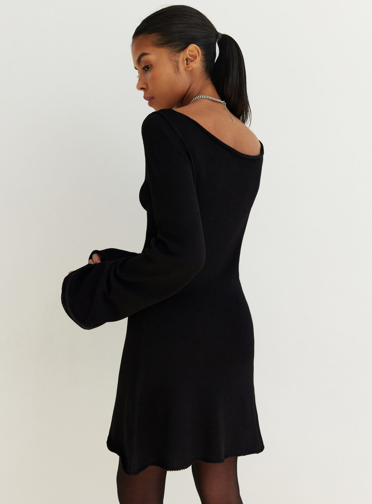 Вырез на декольте позволяет одевать платье двумя способами, обнажая ключицы или спину.