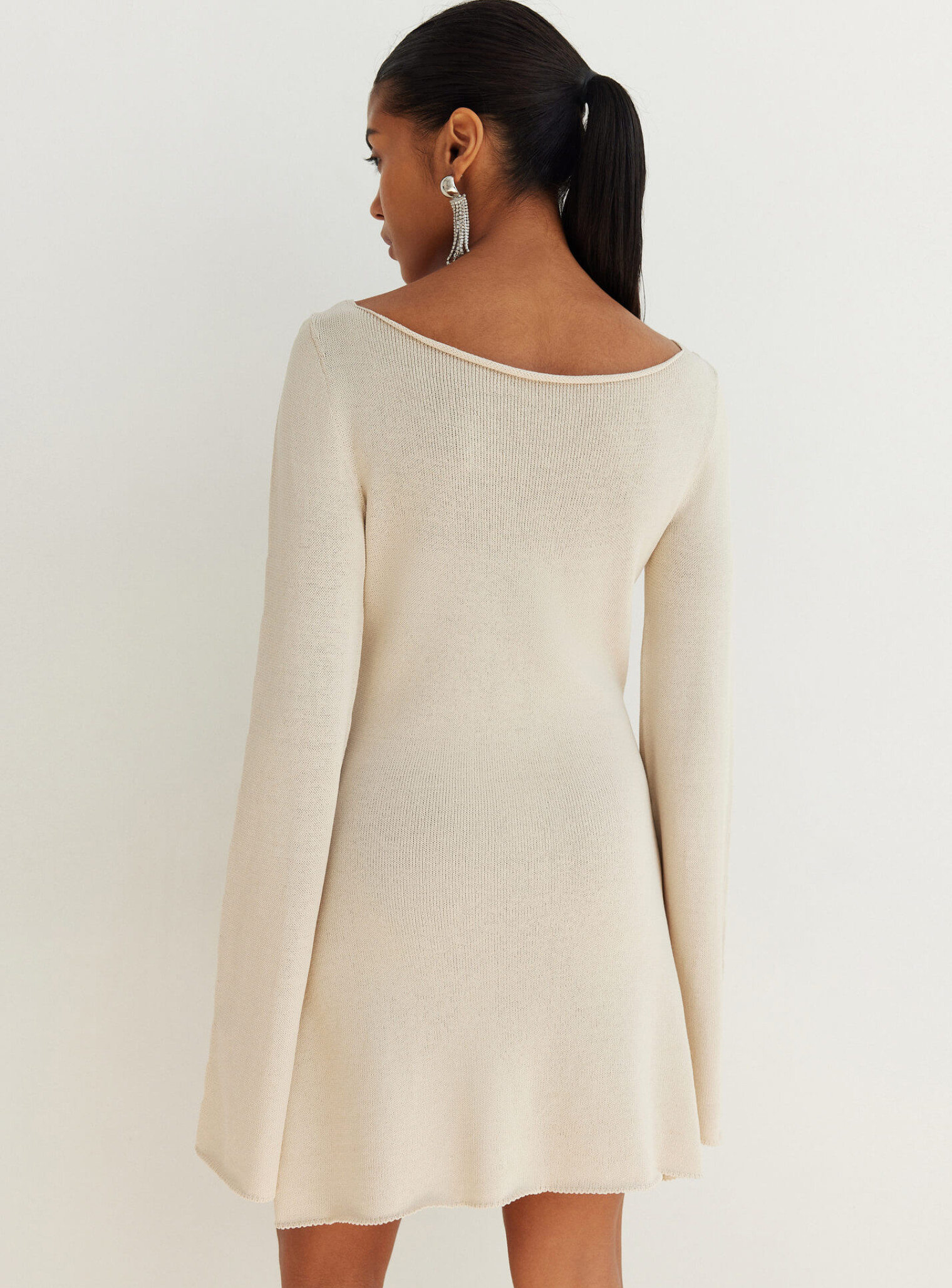 Вырез на декольте позволяет одевать платье двумя способами, обнажая ключицы или спину.