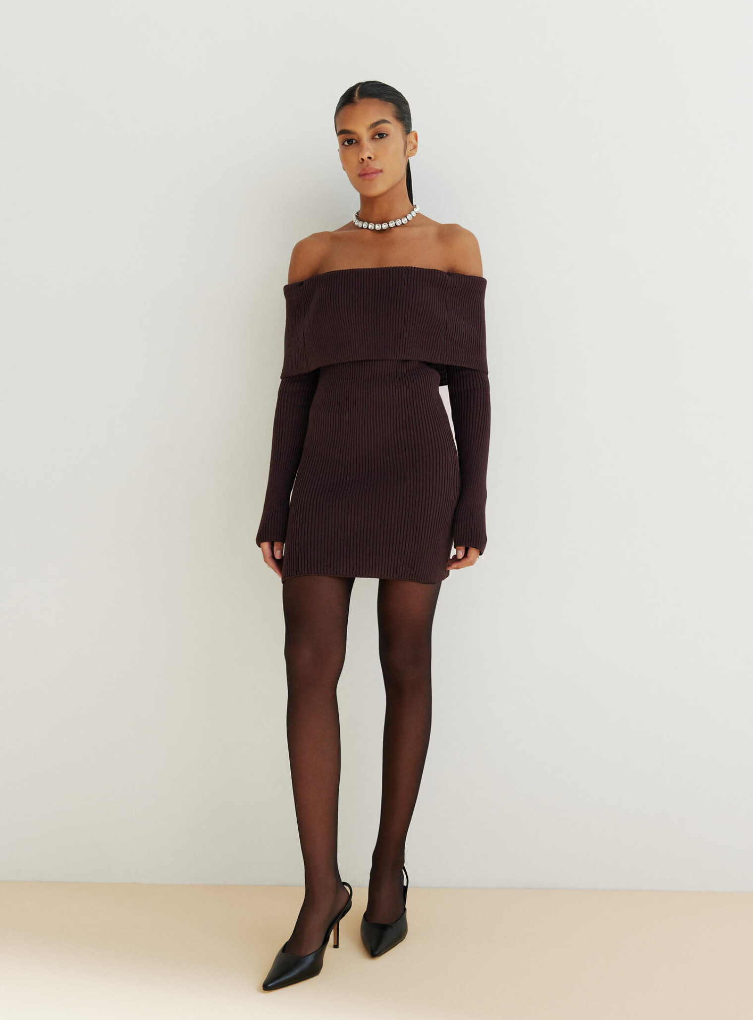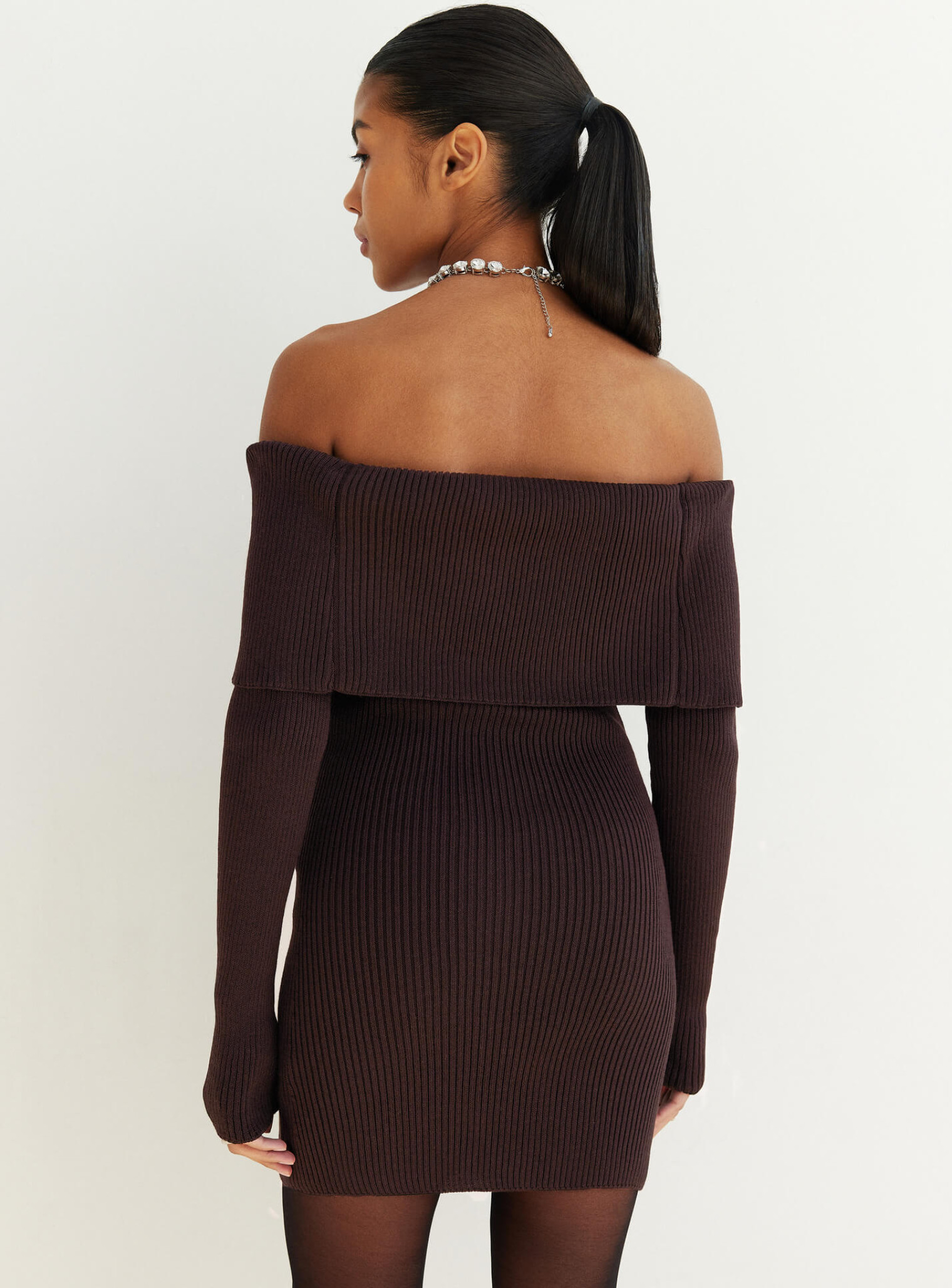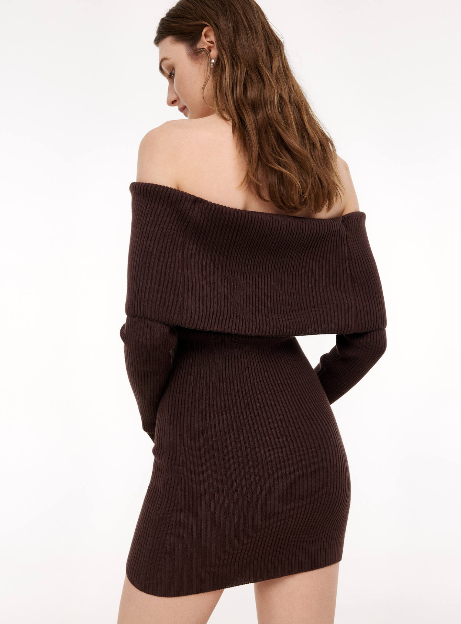 Трендовое платье с обнаженными плечами в длине мини, плавно очерчивающее линии фигуры. Элегантное платье красиво открывает декольте и позволяет стилизовать образ для особых событий.