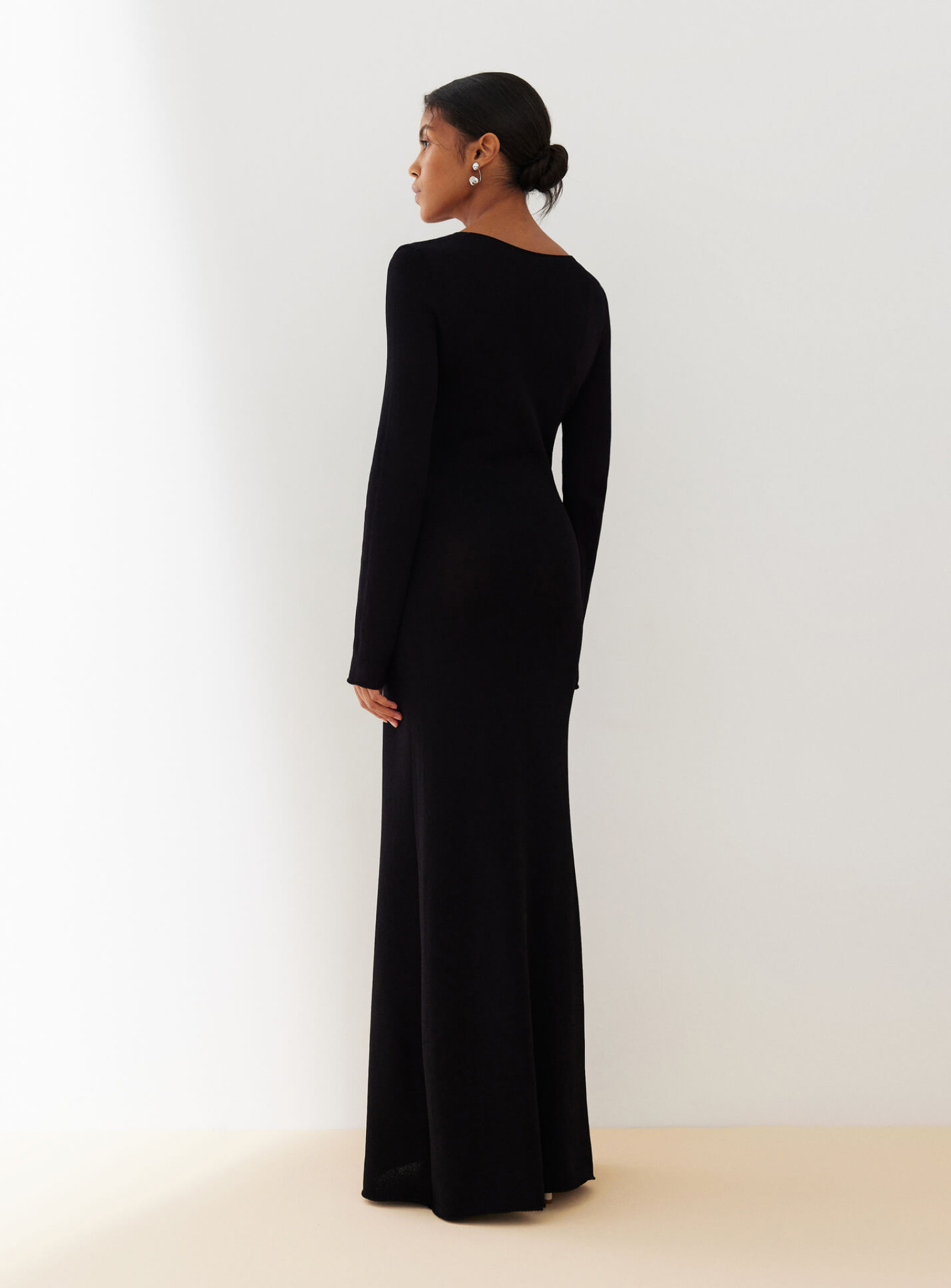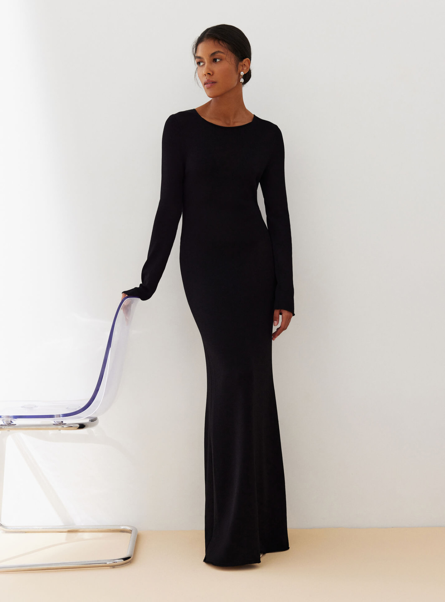 Изысканное бесшовное платье макси из деликатной вискозы, нежно спадающее по силуэту плавными линиями и подчеркивающее преимущества женской фигуры. Создано для ваших особых событий.