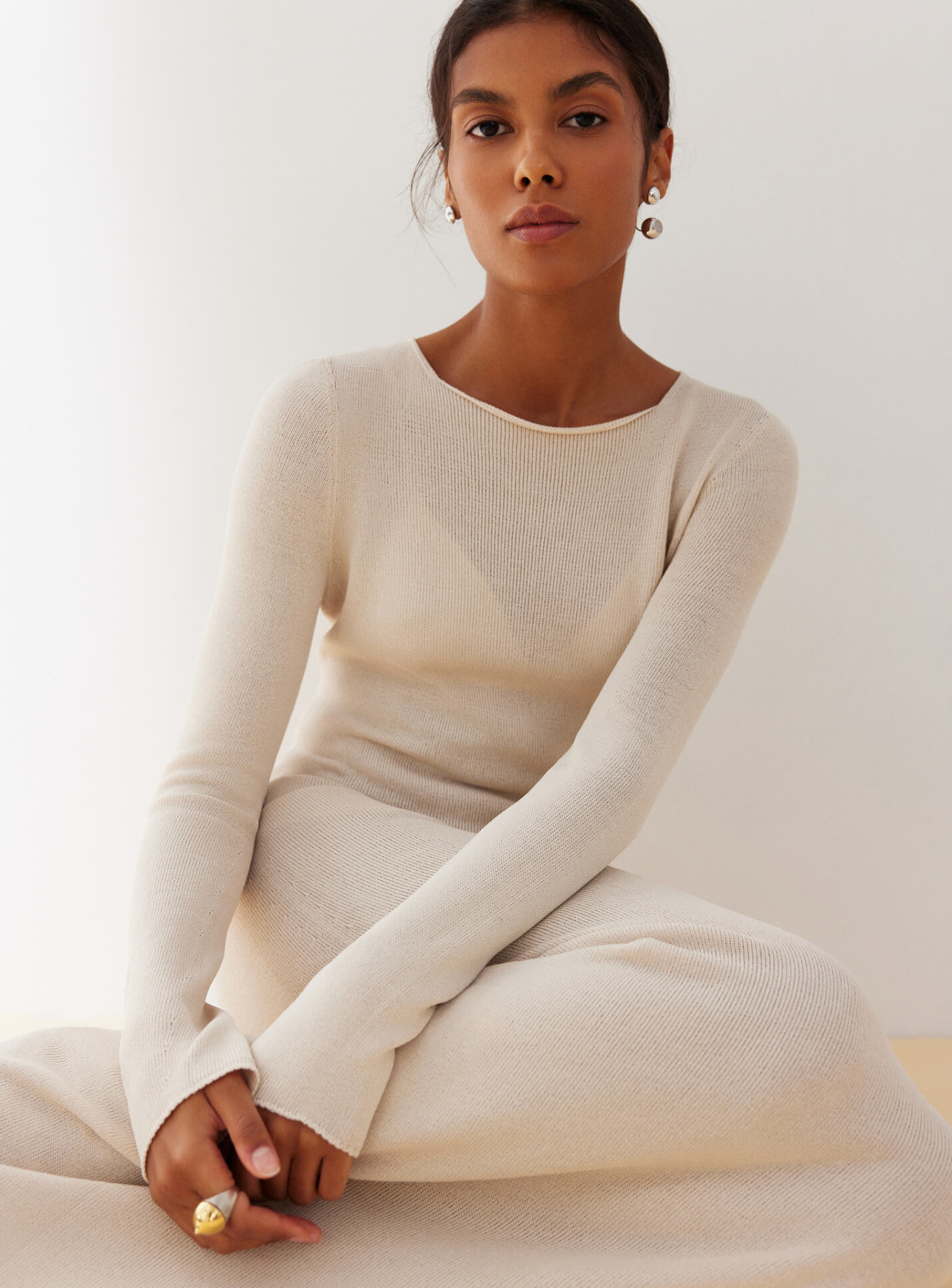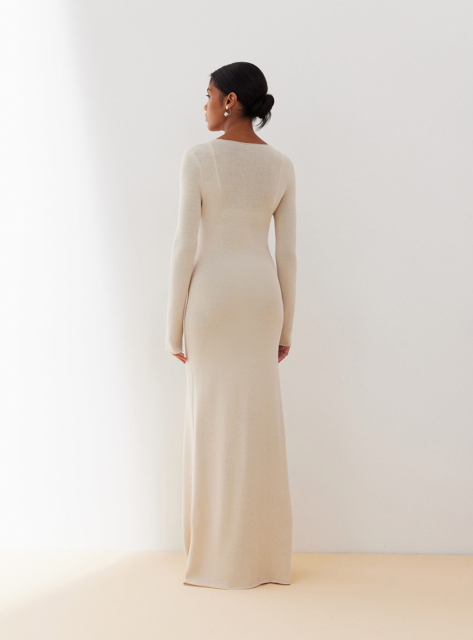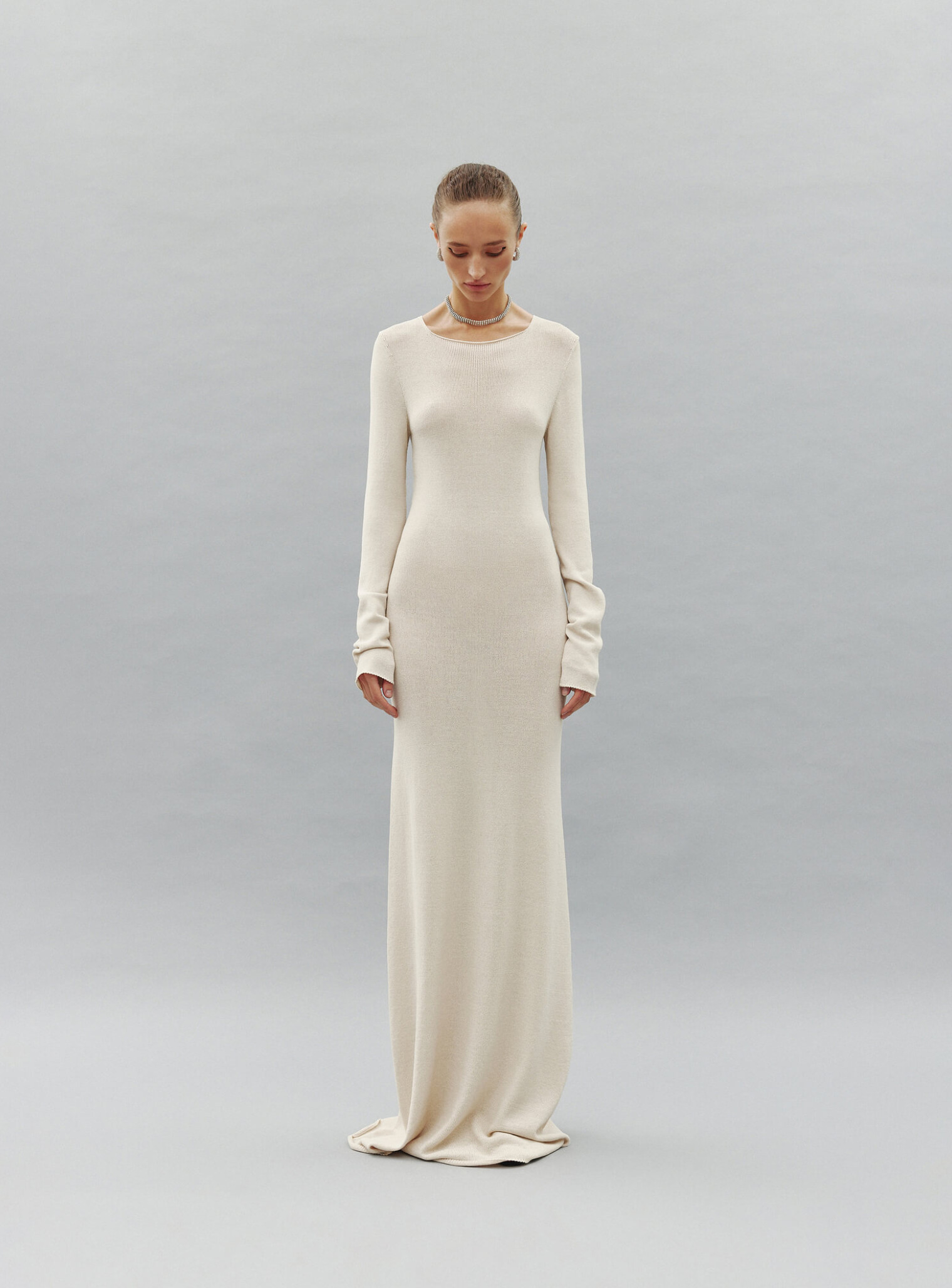 Изысканное бесшовное платье макси из деликатной вискозы, нежно спадающее по силуэту плавными линиями и подчеркивающее преимущества женской фигуры. Создано для ваших особых событий.